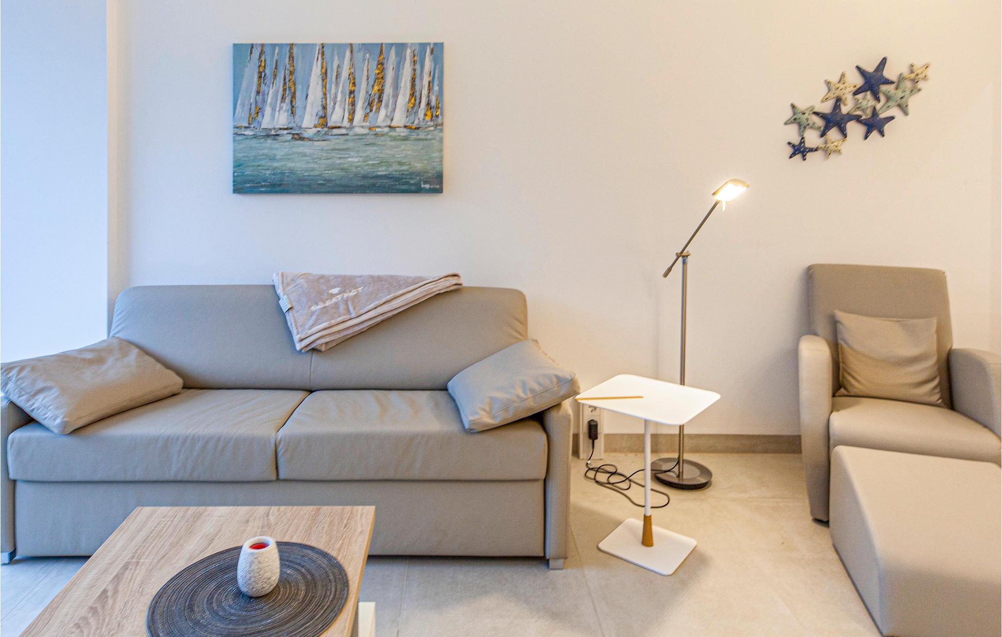 Wohnraum/Küche 37m2 - 2 Schlafmöglichkeiten. (Doppelbett(en)). 1 Schlafmöglichkeit. (Schlafsofa,Matratze,Sonstiges).