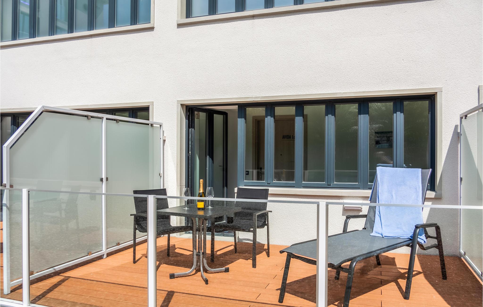Moderne Ferienwohnung in Prora mit Meerblick, Pool, Wellnessbereich und direktem Strandzugang auf Rügen.