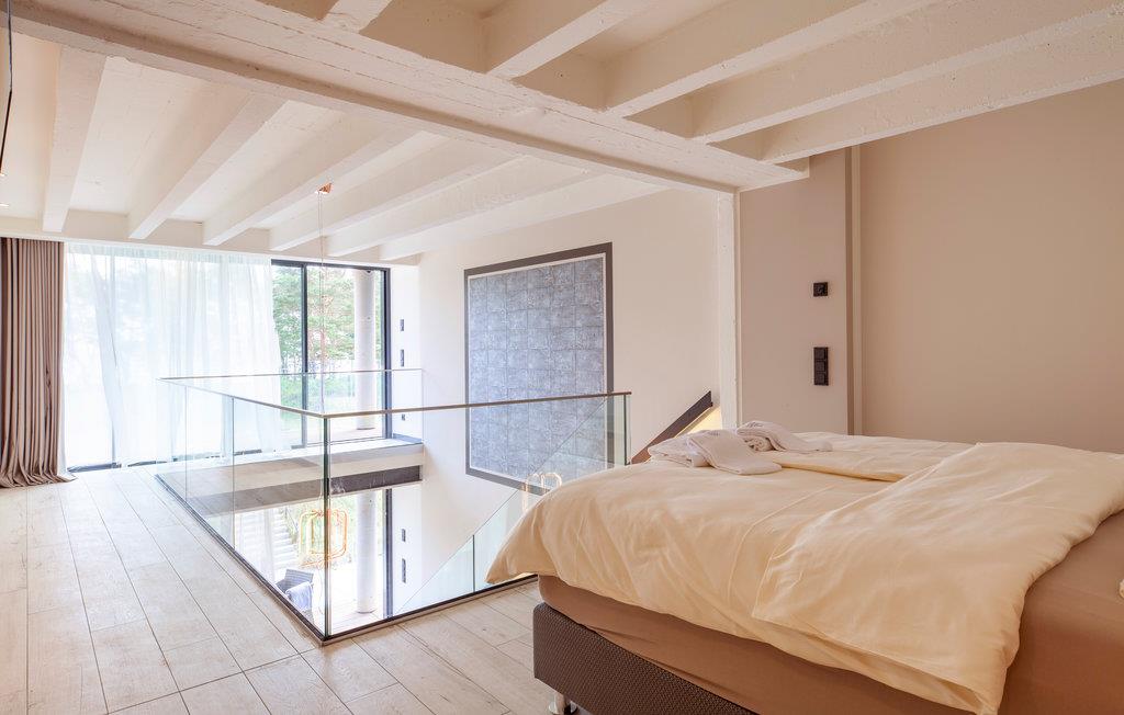 Das hochwertige "Avida Loft" überzeugt durch elegantes und außergewöhnliches Design auf zwei Ebenen. Durch die riesigen, elektrischen Panoramafenster sowie die Bauweise mit viel Glas ist die loftartige Wohnung sehr hell und lichtdurchflutet. Alle Bereiche sind miteinander verbunden, so wird ein offenes Raumgefühl geschaffen. Im Obergeschoss, der über eine Treppe zugänglich ist, befindet sich der offene Schlaf- und Ankleidebereich. Genießen Sie hier den Blick auf die Ostsee direkt vom Bett aus. Das hochwertige Boxspringbett mit sehr bequemen Matratzen lässt Sie herrlich ausgeruht den Tag beginnen. Ein weiterer Schlafplatz befindet sich auf dem Schlafsofa im Wohnbereich. Die kleine Pantry-Küche verfügt über einen Geschirrspüler und für Kaffeeliebhaber eine Tassimo-Kapselmaschine (Kapseln bitte selbst mitbringen).
