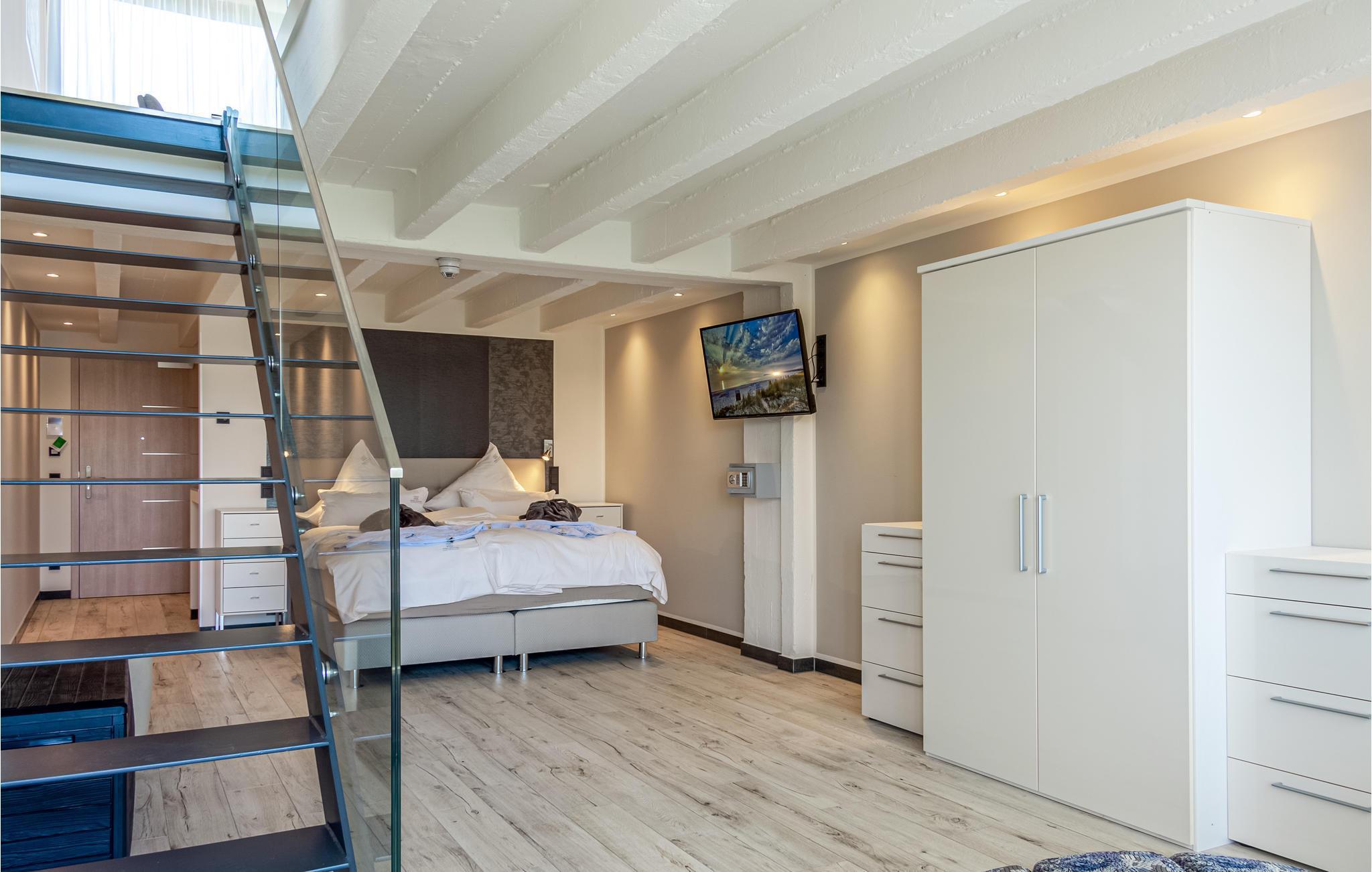 Das Penthouse befindet sich im historischen Seebad-Komplex Prora aus dem Jahr 1936. Es ist heute in einen modernen Erholungsort umgestaltet worden und lädt Sie zu einem wohltuenden Urlaub ein. Profitieren Sie vom Wellnessbereich mit Sauna und Indoor-Pool, den Sie in wenigen Minuten von Ihrer Wohnung mit dem Aufzug erreichen. Ein Fitnessstudio mit modernen Geräten sorgt dafür, dass Sie auch im Urlaub trainieren können. Dazu können Sie kostenlos an Fitness- und Yoga-Stunden teilnehmen. Gäste von Prora Solitaire haben die Möglichkeit, täglich das große Frühstücksbuffet gegen Bezahlung zu nutzen. Für Elektrofahrzeuge stehen Ihnen vier Ladestationen mit einer Ladeleistung von jeweils 22,5 kW zur Verfügung. Die kostenpflichtigen Ladestationen befinden sich im Parkhaus und sind ausschließlich für Hotelgäste zugänglich.