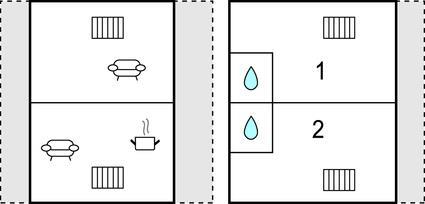 Badezimmer (nr. 1) - WC. Warmes und kaltes Wasser. Dusche
