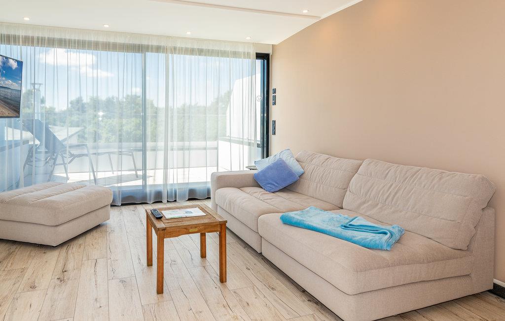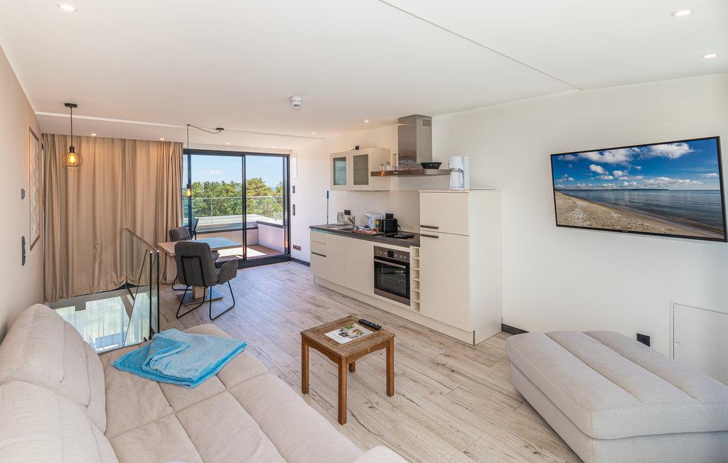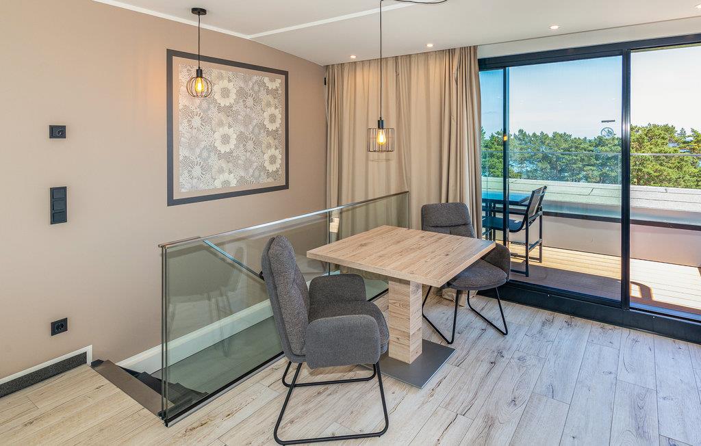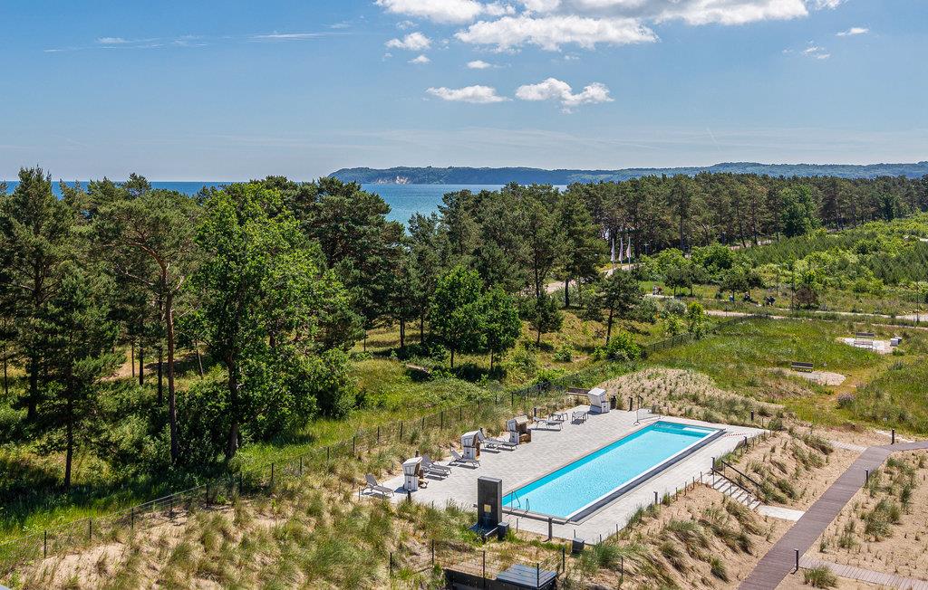 Luxuriöse Ferienwohnung mit Meerblick, Pool und Wellnessbereich auf Rügen, nur wenige Meter vom Sandstrand entfernt.