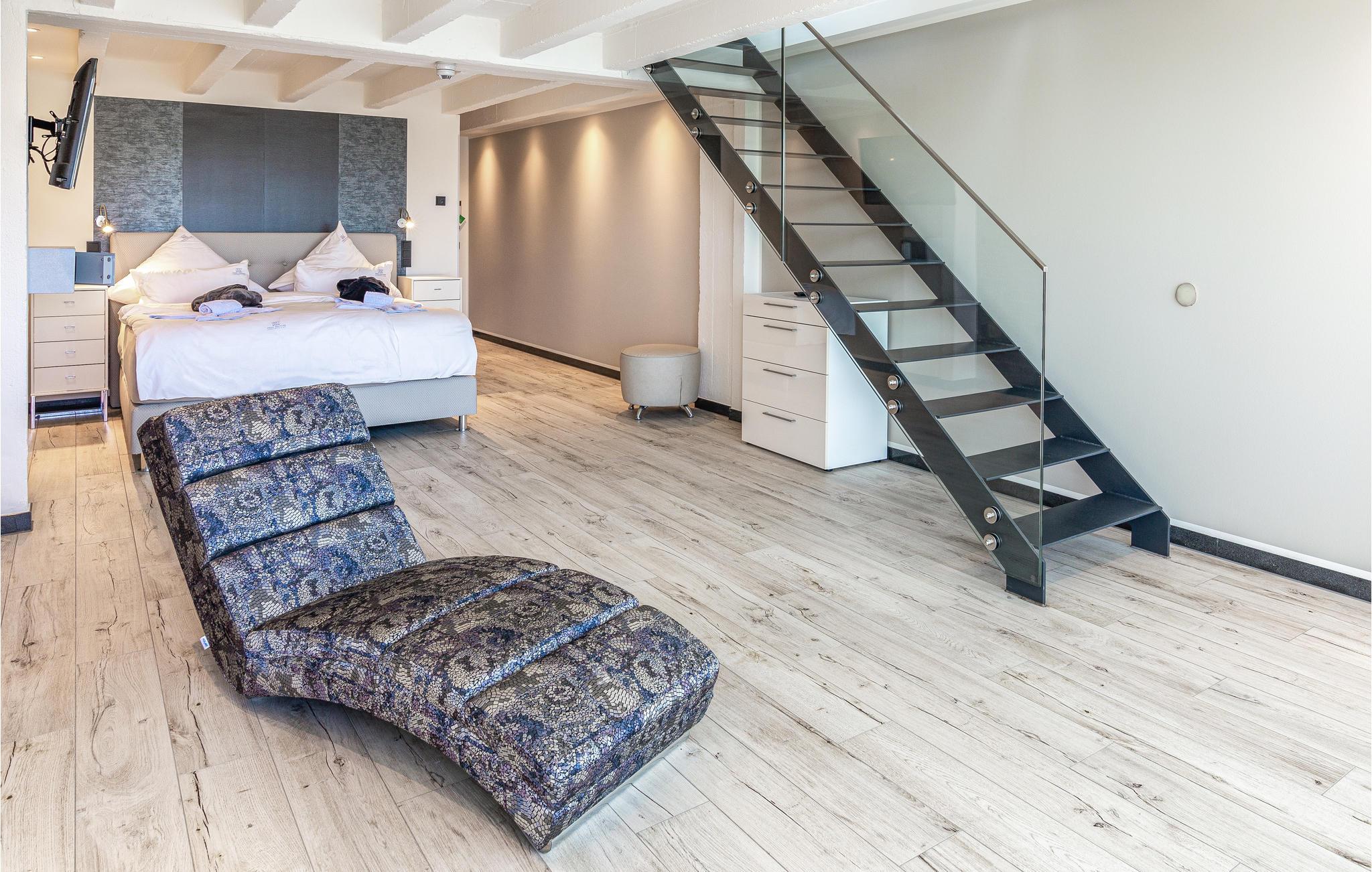 Moderne Ferienwohnung mit Meerblick, Pool, Wellnessbereich und Nähe zum Strand in Prora auf Rügen.