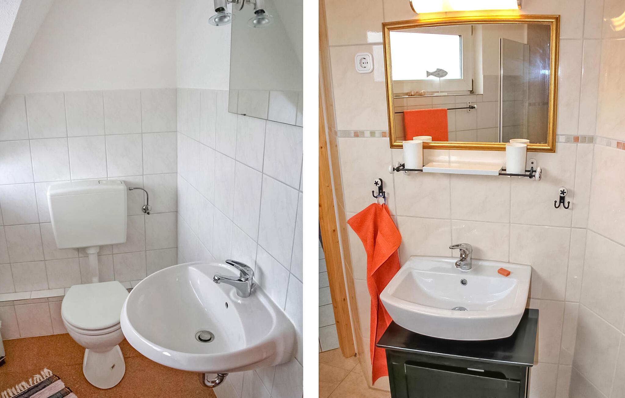 Badezimmer (nr. 1) - WC. Warmes und kaltes Wasser. Dusche