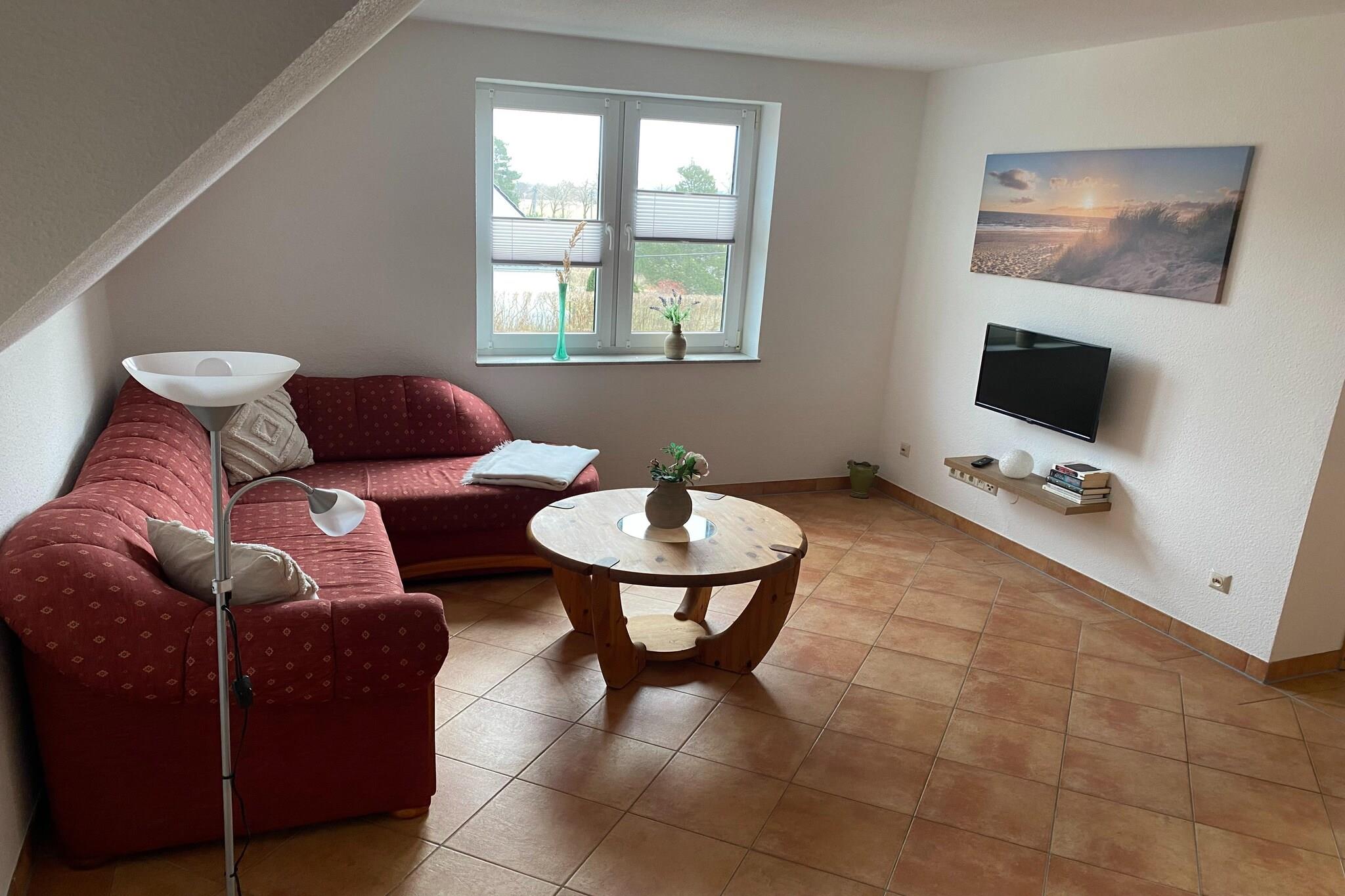 Charmante Wohnung nahe Bodstedter Bodden mit Garten, Terrasse und moderner Ausstattung für erholsame Ostseeferien.