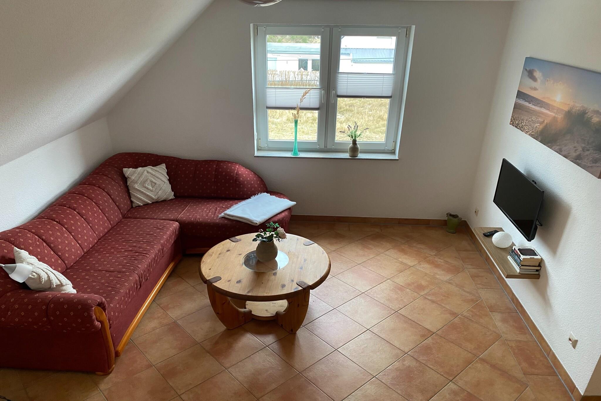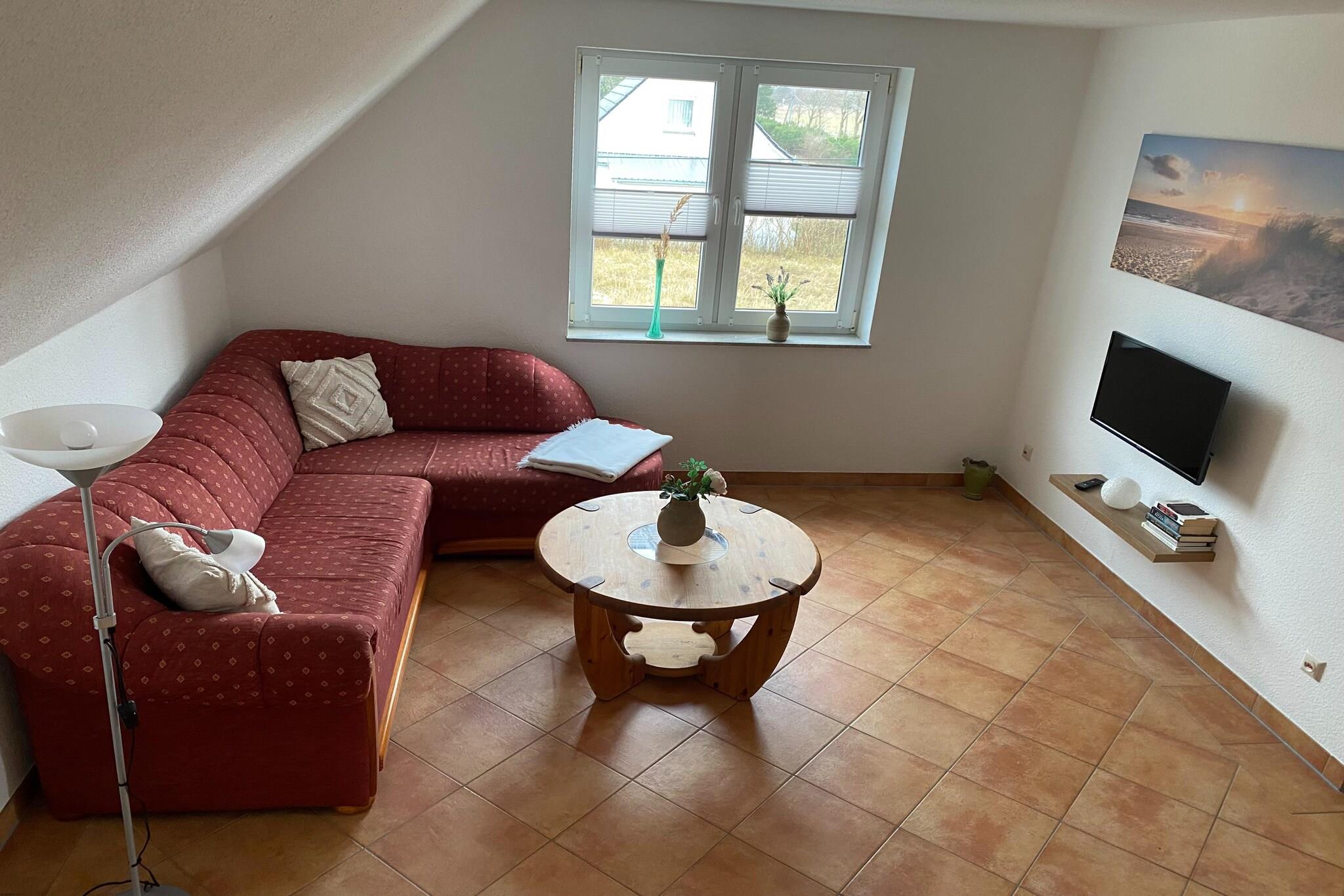 Nur 1,5 km vom malerischen Bodstedter Bodden und dem Sandstrand Pruchten entfernt, ist diese charmante zweistöckige Wohnung ideal für Paare oder kleine Familien, die Küstenruhe mit ländlichem Charme suchen. Die über eine Außentreppe erreichbare erste Etage bietet einen hellen Wohn-/Essbereich mit Sat-TV, Schlafsofa und Esstisch für entspannte Mahlzeiten. Die offene Küche ist komplett für Selbstversorger ausgestattet und verfügt über Kaffeemaschine, Backofen, Mikrowelle und Geschirrspüler. Das moderne Badezimmer bietet eine Dusche und alle wichtigen Utensilien. Für kleine Gäste steht ein Kinderbett zur Verfügung. Im Dachgeschoss bietet das gemütliche Doppelzimmer unter Dachschrägen einen ruhigen Rückzugsort. Im Außenbereich erwarten Sie eine private Terrasse, ein Garten mit Gartenmöbeln und ein Grill – ideal zum Entspannen nach Erkundungstouren in nahegelegenen Städten wie Barth (7 km) oder Zingst (9 km). Dank der Parkmöglichkeiten und der Nähe zu Bäckereien (1,7 km), Restaurants (1,8 km) und dem Flughafen Stralsund-Barth (9 km) ist dies ein entspannter Ausgangspunkt für Ihre Ostseeabenteuer.