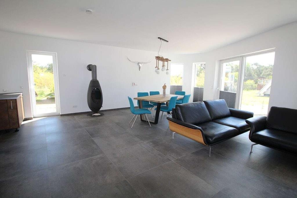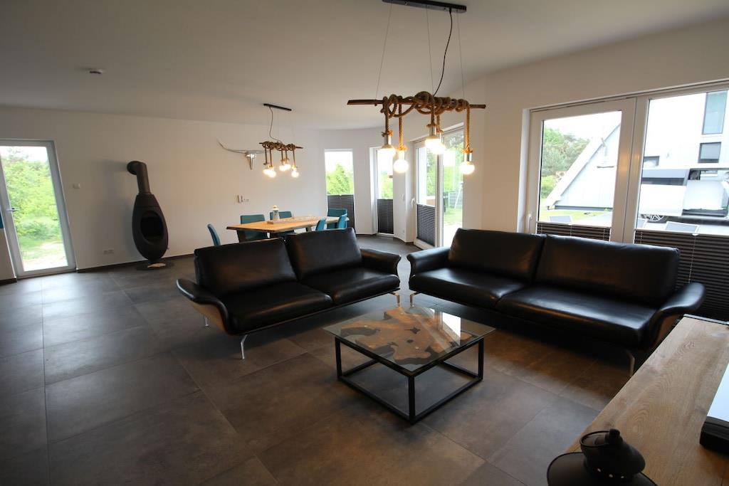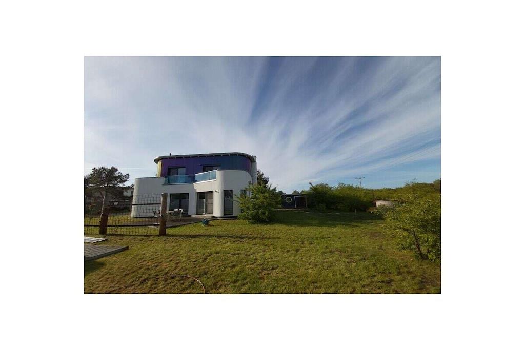 Neu ab Juni 2019! Auf einem über 1000 m² großen, naturbelassenen Grundstück befindet sich das Ferienhaus "Wellenbrecher". Die Bauform der Ferienunterkunft ist einem Wellenbrecher der Ostsee nachempfunden. Der "WELLENBRECHER" ist mit allen Annehmlichkeiten ausgestattet, die Ihren Urlaub einmalig und unvergesslich werden lassen. Dieses Fleckchen Erde ist ideal für Naturliebhaber, Aktive, Ruhesuchende und Genießer. Hier können Kinder noch toben und entdecken. Im Ferienhaus stehen Ihnen neben einer Sauna ein Hot Tube und 4 Fahrräder zur Verfügung.