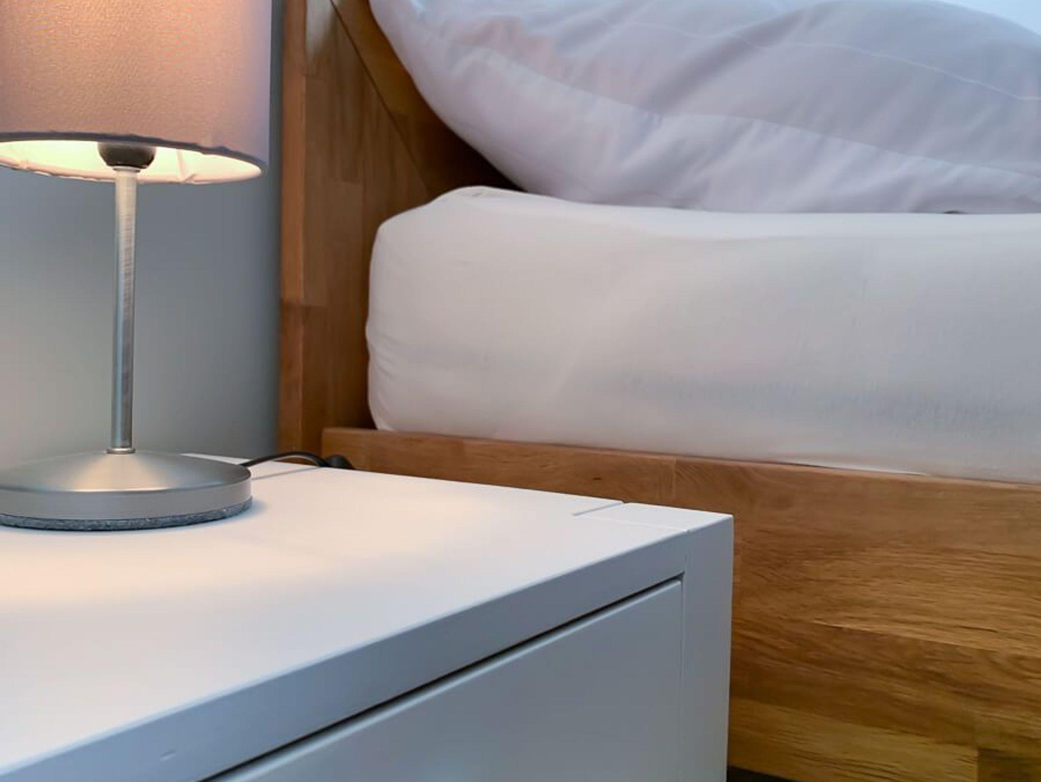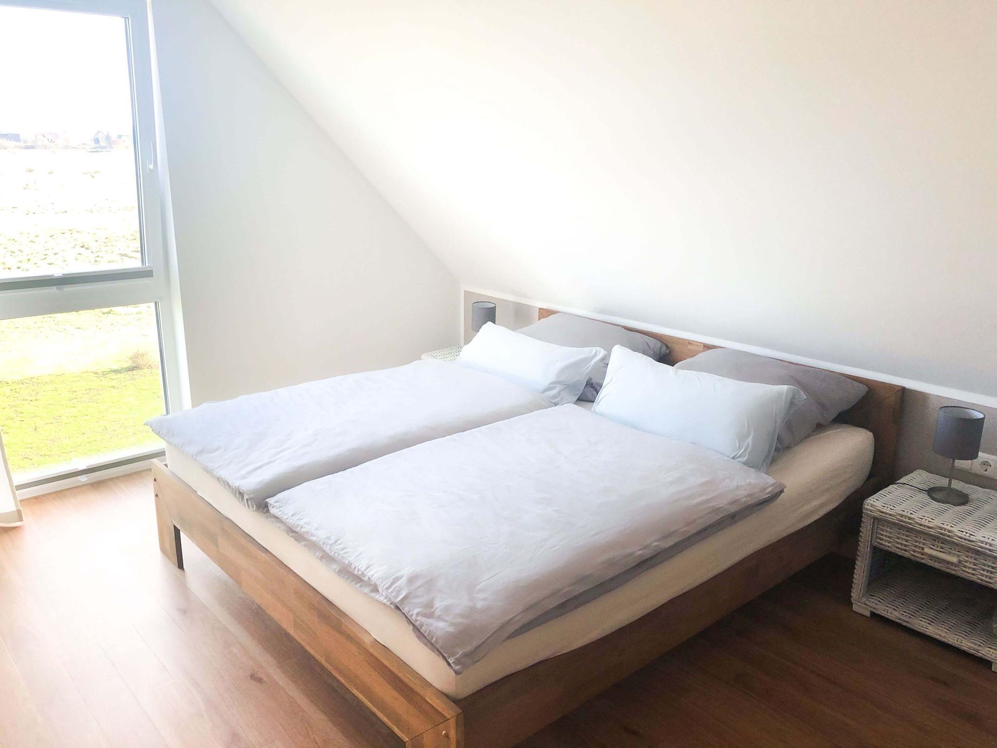 • Schlafkomfort: Im Obergeschoss finden Sie zwei Schlafzimmer mit 1,80 m breiten Doppelbetten. Die hochwertigen Matratzen verfügen über zwei wählbare Härtegrade ? kombiniert mit Verdunkelungsplissees und Fliegengittern garantieren wir Ihnen einen ungestörten Schlaf.