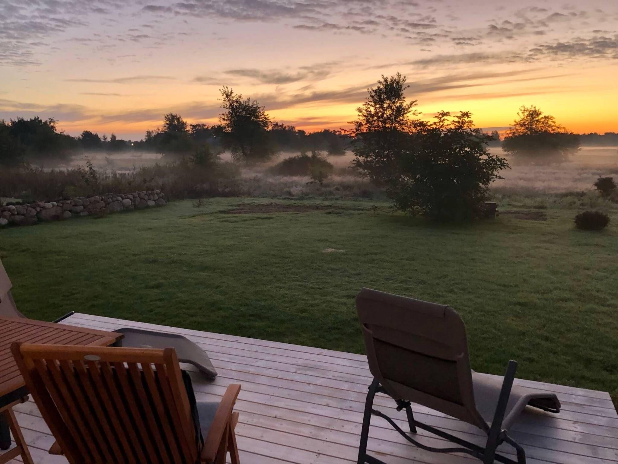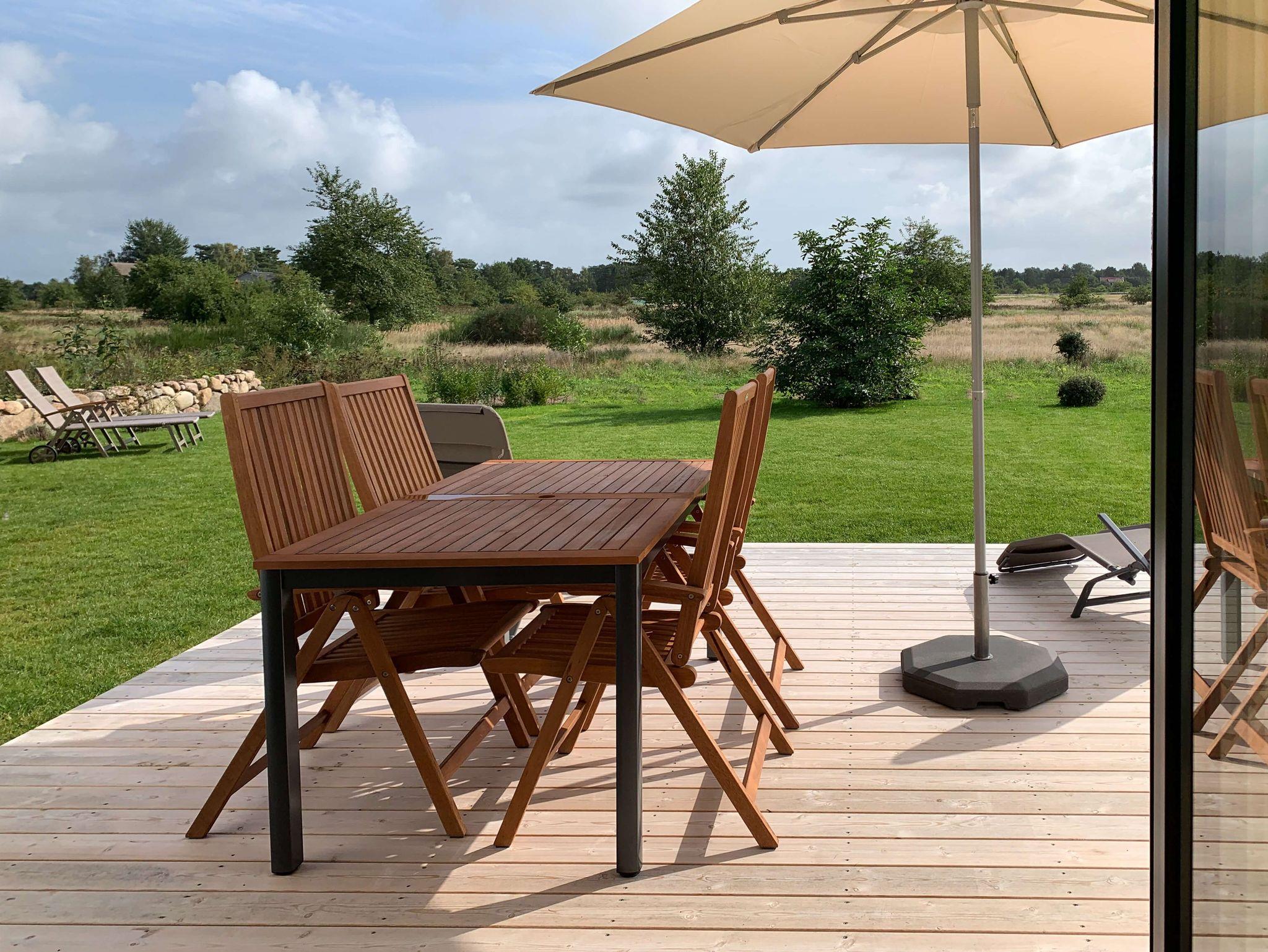 • Sonnenterrasse: Die große Holzterrasse ist mit komfortablen Gartenmöbeln und Sonnenliegen ausgestattet. Frühstücken Sie in der Morgensonne oder nutzen Sie den großen Rundgrill für gemütliche Barbecue-Abende.