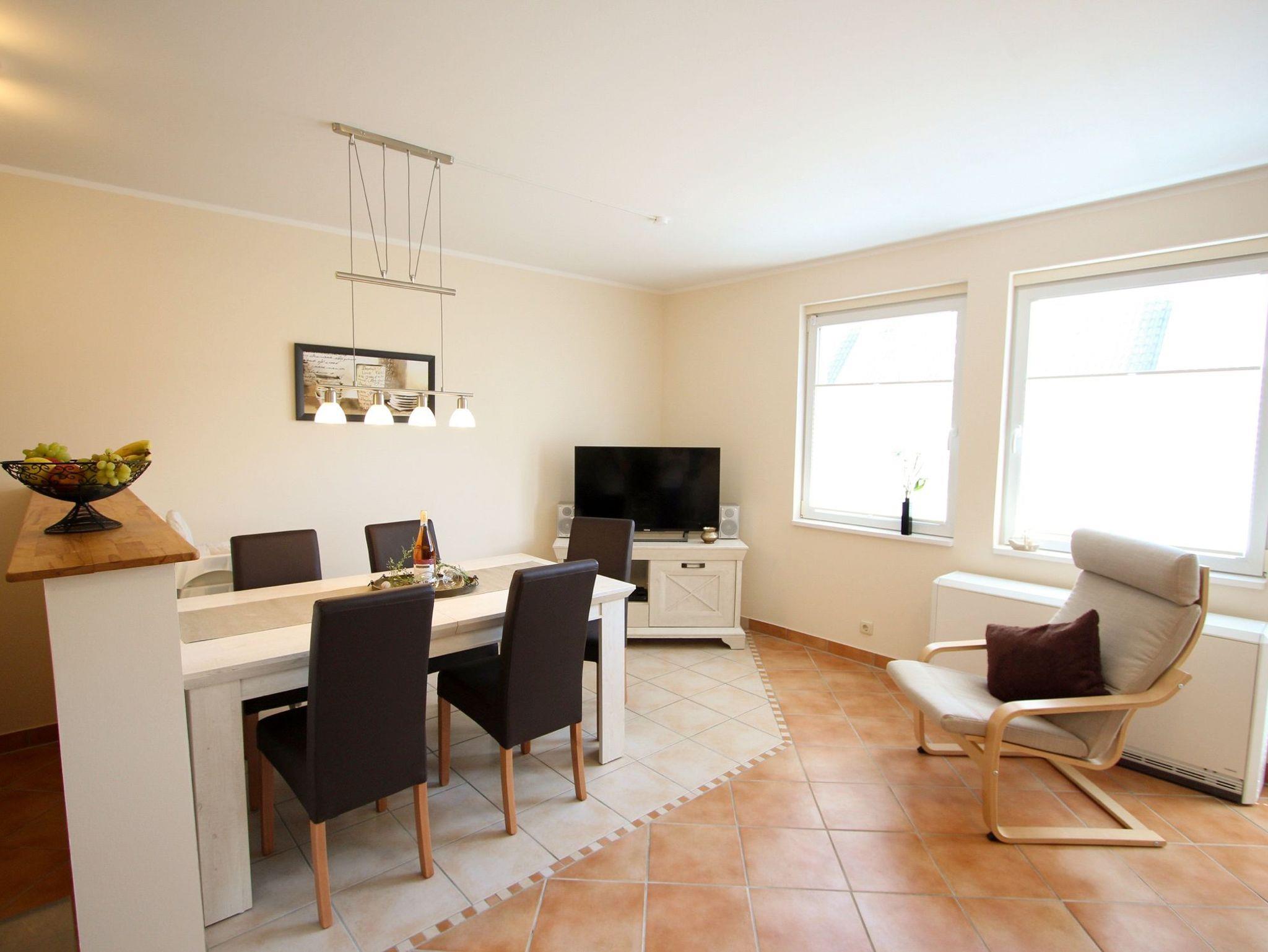 Die Ferienwohnung Steffchen EG ist Teil der idyllischen Ferienanlage Claus Störtebeker in Pruchten. Diese ruhige Siedlung bietet Erholung pur und ist ideal für Naturliebhaber und Ruhesuchende. Das Objekt besticht durch seine durchdachte Ausstattung, die sowohl Komfort als auch Funktionalität vereint. Neben einem Kamin für gemütliche Abende verfügt die Wohnung über eine moderne Küche mit Backofen, Ceran-Kochfeld, Geschirrspüler und weiteren Annehmlichkeiten. Ein besonderes Highlight ist der kleine Garten mit einer möblierten Terrasse, die zu entspannten Stunden im Freien einlädt. Ein Parkplatz ist direkt am Haus vorhanden. Familien mit Kindern, Hundebesitzer und Radfahrer finden hier die perfekte Unterkunft für einen erholsamen Urlaub. Die Nähe zum Bodden und zu zahlreichen Rad- und Wanderwegen ermöglicht abwechslungsreiche Aktivitäten in der Natur.