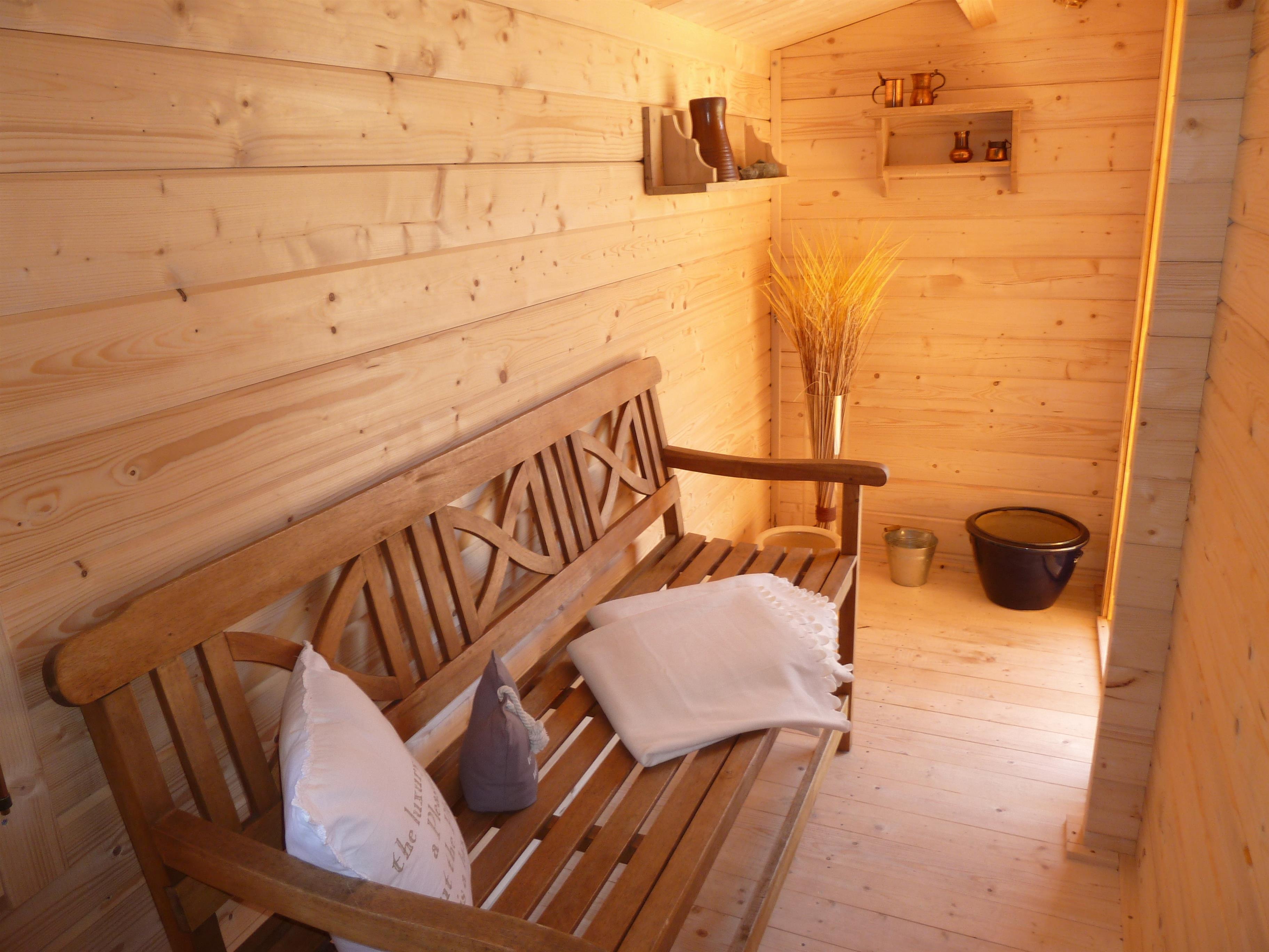 Ein sehr stilvoll eingerichteter Wohn- und Aufenthaltsbereich mit großem Esstisch und Satelliten-TV läd mit einer gemütlichen Sitzgruppe zum Genießen von Roman oder Film ein. Ganz neu haben wir für Sie ein tolles Saunahaus mit Ruhezone gebaut.