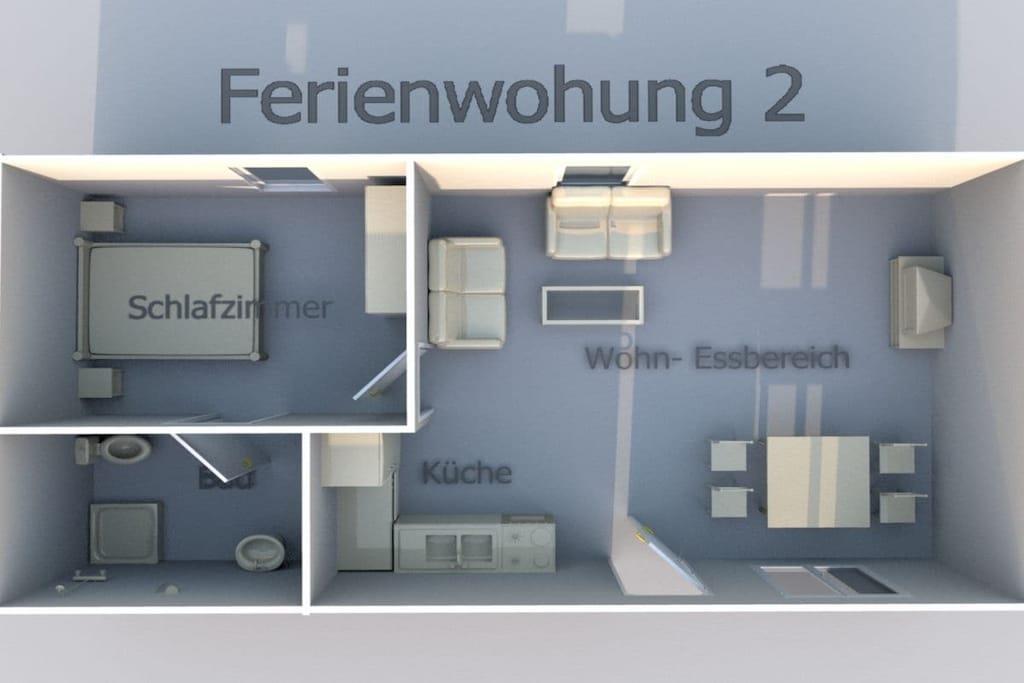 Gemütliche Ferienwohnung auf Usedom mit Schlafzimmer, Küche und Terrasse in idyllischer Lage.