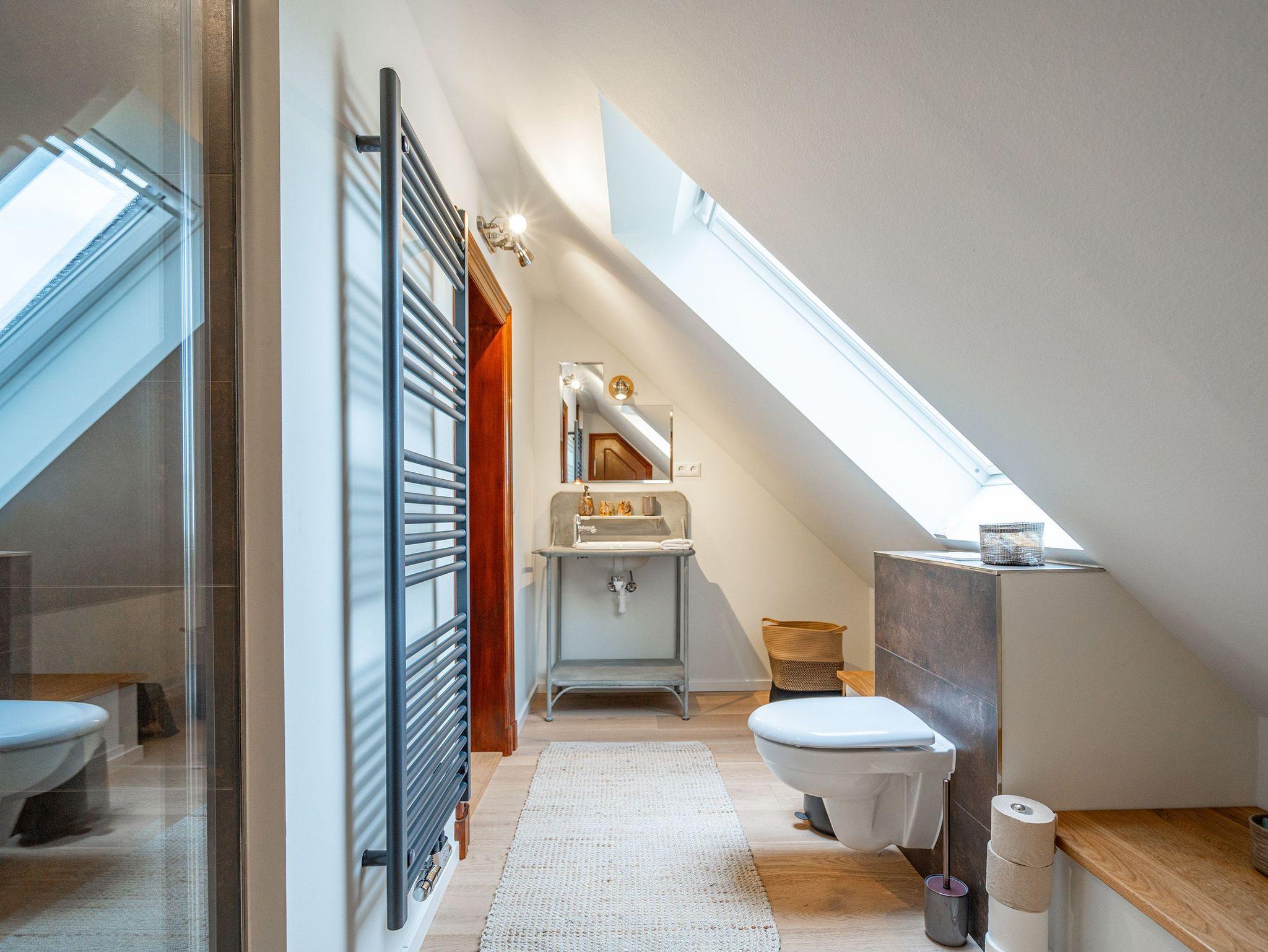 Mit viel Charme und Gemütlichkeit empfängt Sie das Appartement 01 im Alten Tagelöhner Haus in Pudagla. Über eine Treppe gelangen Sie in das Obergeschoss des 1915 erbauten Hauses, wo sich das 75 Quadratmeter große Appartement befindet. Hinter Ihrem Flur mit Garderobe finden Sie den offenen Wohn-Essbereich. Alte Holzbalken, Dachschrägen und freigelegte Mauerwerke sorgen direkt für ein heimeliges Gefühl. Ein Esstisch mit Marmorplatte und Platz für bis zu 5 Personen sowie liebevolle Details aus einer einst vergangenen Zeit, wie ein alter Kronleuchter, sind die perfekte Ergänzung für das Appartement im Landhausstil. Hier darf ein Holzkamin auf gar keinen Fall fehlen, vor dem Sie es sich an Ihren Abenden gemütlich machen können. Zwei Sofas und ein Sessel mit Hocker sowie ein 55-Zoll Flat-TV und ein Radio mit Bluetooth laden zudem zum entspannten Verweilen ein. Die voll ausgestattete Landhausküche mit Cerankochfeld, Backofen, Kühlschrank mit Gefrierfach sowie diverse Kleinküchengeräte lässt keine Wünsche beim Zubereiten Ihrer Speisen offen. Bis zu vier Personen und zwei Kleinkinder (im Kinderreisebett bis 3 Jahre) finden in den beiden Schlafzimmern mit Doppelbetten (1,60m x 2,00m) Platz und erholsamen Schlaf. Flat-TVs und ausreichend Schrankraum für Ihre Urlaubsgarderobe runden die Schlafbereiche ab. Eine morgendliche Regendusche können Sie im innenliegenden Badezimmer mit Waschtisch und WC genießen, welches einen direkten Zugang von einem Schlafzimmer aus hat. Ein Highlight ist der Zugang zum Schmollensee, den Sie auch mit einem bereitgestellten Kanu für bis zu 3 Personen erkunden können. Von Oktober bis April erhaschen Sie zudem von Ihrer Küche und Ihrem Badezimmer aus einen Blick auf den naturbelassenen See. Auch auf der überdachten und 12 Quadratmeter großen Südwest-Terrasse können Sie Ihre Zeit verbringen. Ein Grill steht Ihnen ebenfalls zur freien Verfügung. Das umzäunte Gelände eignet sich ideal für Familien mit Kindern. Bei Ihrer Anreise steht Ihnen ein PKW-Stellplatz sowie Fahrradstellplätze am Haus zur Verfügung. Außerdem sind die Betten bereits bezogen und Handtücher liegen für Sie bereit. Ab Juli 2025 steht Ihnen hinter dem Haus ein eigener Tennisplatz (Kunstrasen mit Quarzsand) zur Verfügung ? ideal für alle, die auch im Urlaub aktiv bleiben möchten. Der Platz kann wochenweise dazugebucht werden.