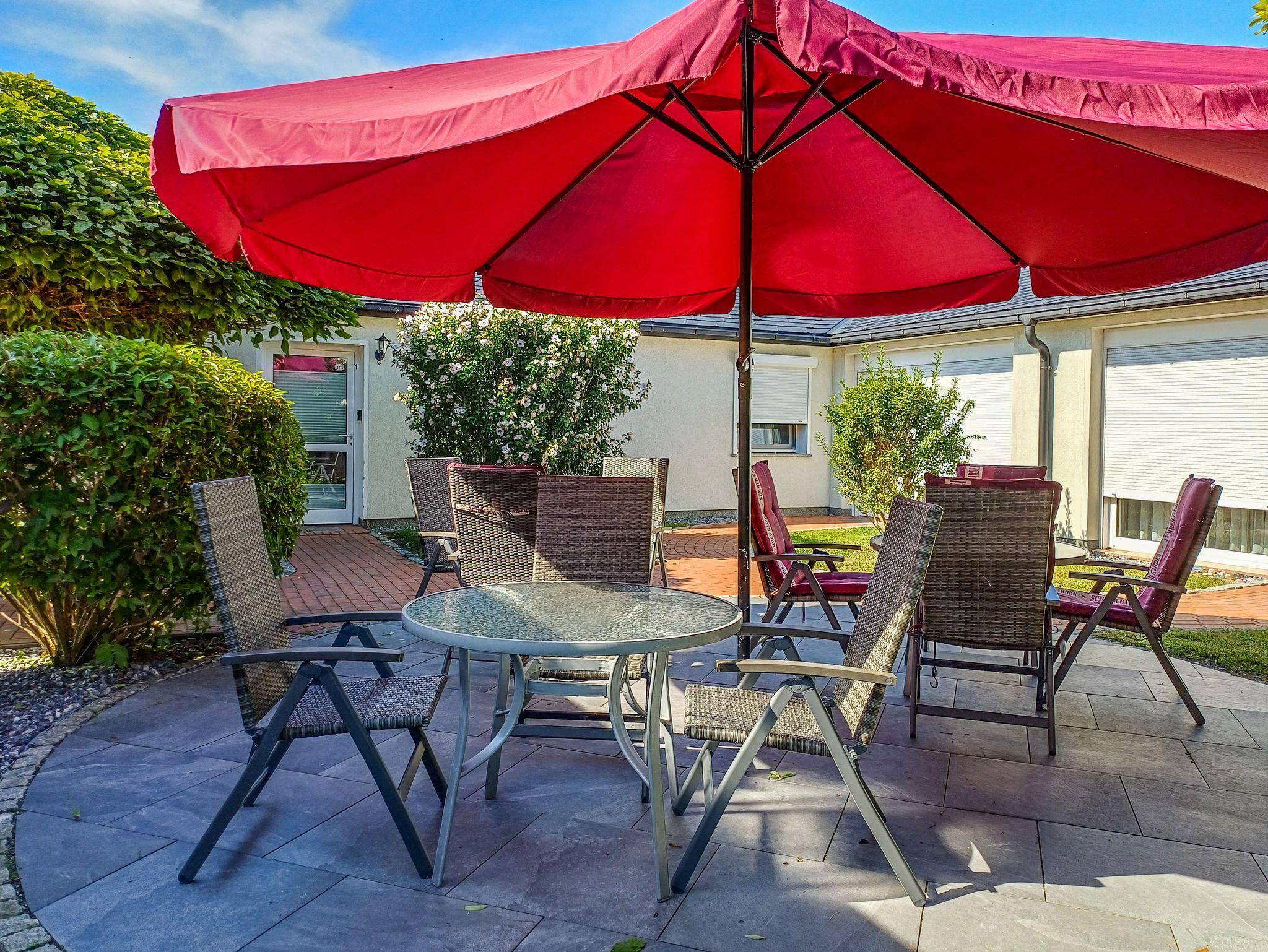 Sonnenschirm ausgestattet und lädt zu einem gemütlichen Frühstück in der Sonne oder einem entspannten Abend im Freien ein.