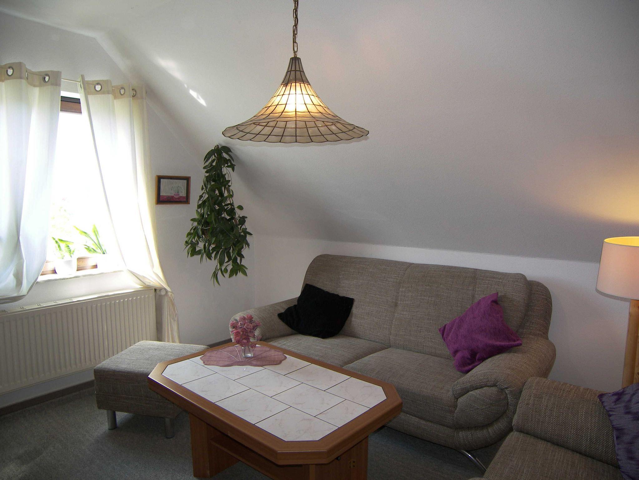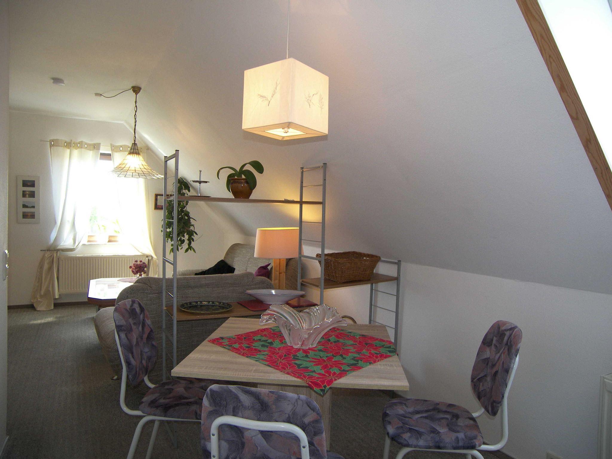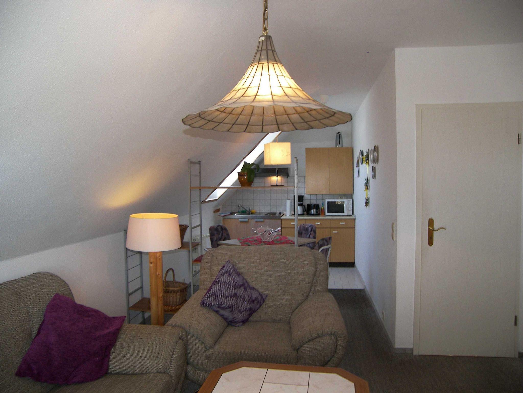 Die ca. 40m² große Nichtraucher-Ferienwohnung befindet sich in der 1. Etage eines Wohnhauses und bietet Platz für 2 Personen. Sie verfügt über ein separates Schlafzimmer mit Doppelbett sowie ein Badezimmer mit Dusche, WC und Föhn.