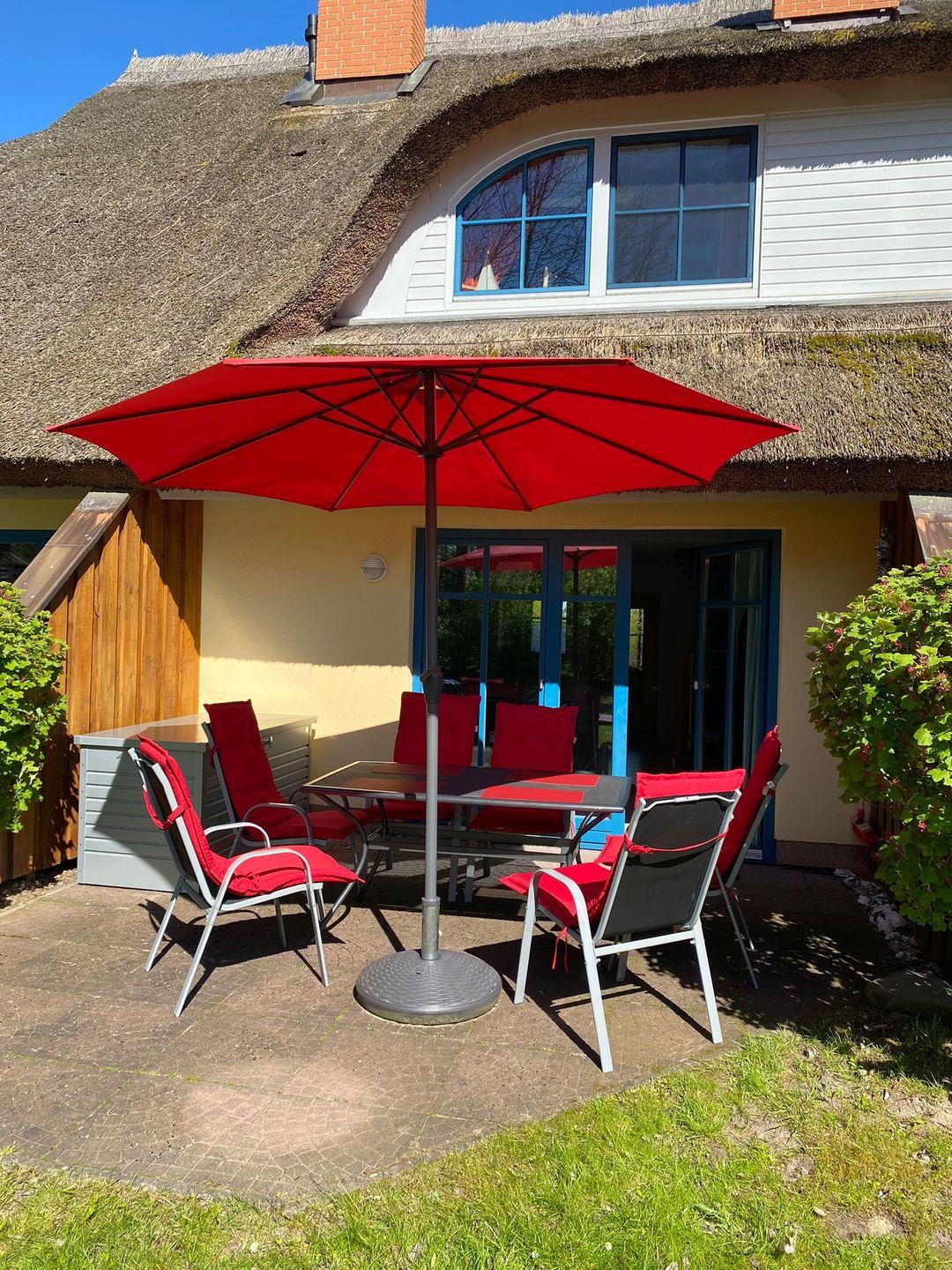 Haus Holunder 1: Charmantes Reihenmittelhaus unter Reet im idyllischen Süden Rügens mit Kamin und sonniger Terrasse.