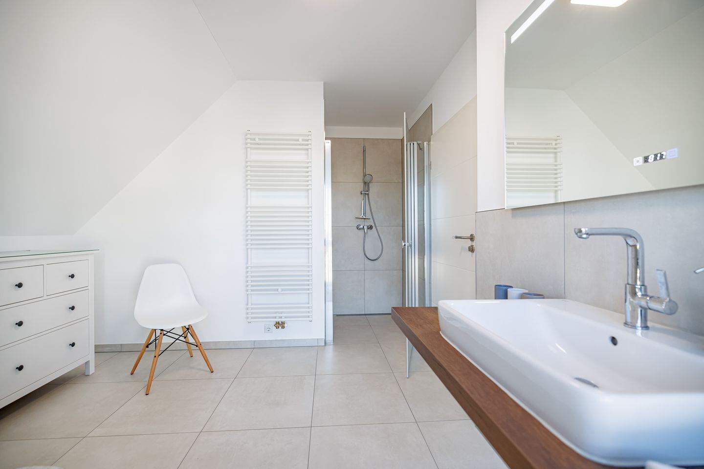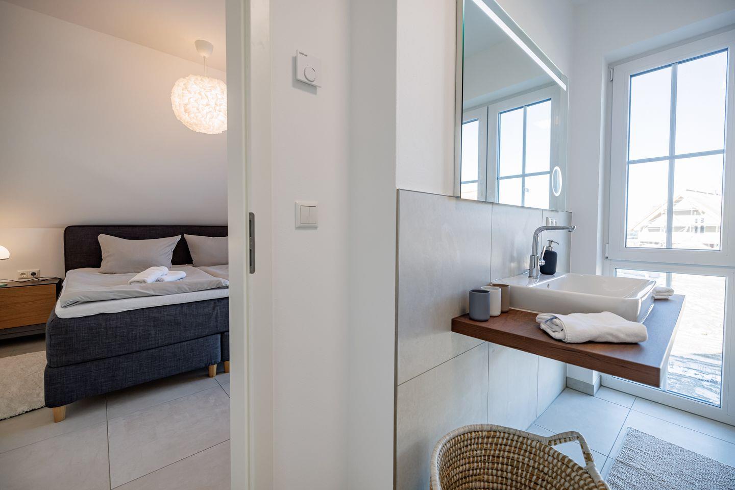 – das größere mit Doppelbett und en Suite Badezimmer samt bodengleicher Dusche