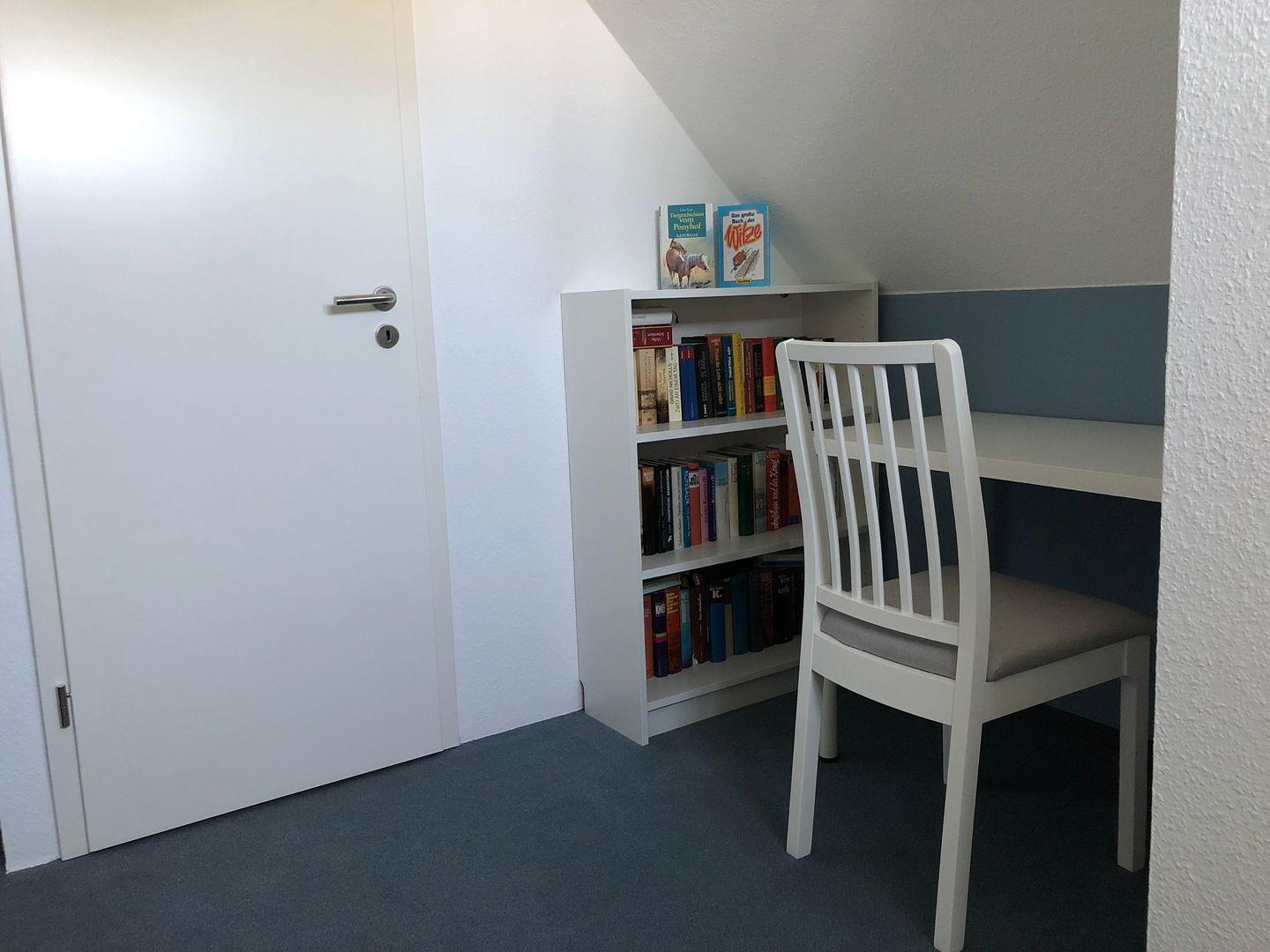 In der ersten Etage laden zwei komfortable Schlafzimmer mit Doppelbetten sowie ein Badezimmer mit Badewanne und eigener Sauna zum Entspannen ein. Im Dachgeschoss befindet sich ein offenes Schlafzimmer mit zwei Einzelbetten und ein kleiner Arbeitsplatz – ideal für alle, die im Urlaub auch mal kurz den Laptop öffnen möchten.