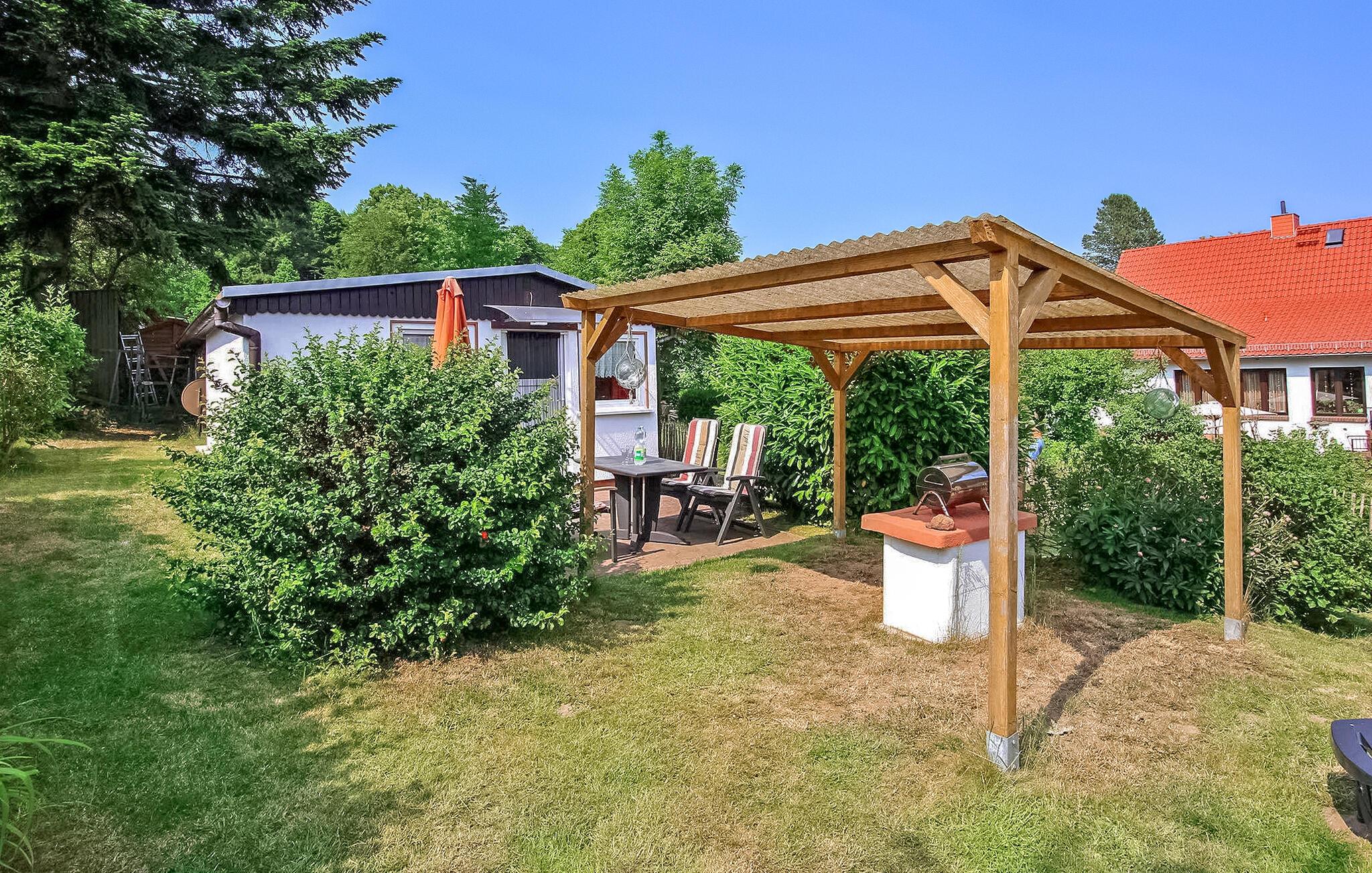 Das naturnahe Ferienhaus liegt separat auf dem rund 1.200 Quadratmeter großen Wohngrundstück des Eigentümers in einer ruhigen Wohngegend am Ortsrand. Ausgestattet mit Kombi. Wohn-/Schlafraum (Doppelbett, Gästebett, Essecke, Sat-TV, Radio), Kochnische (E-Herd, Mikrowelle, Kühlschrank, Kaffeemaschine), Dusche/WC mit Fußbodenheizung. Ebenfalls vorhanden sind WLAN, Terrasse, Grill, 2 Fahrräder zur kostenlosen Nutzung und Parkplatz. Im Gesamtpreis sind Bettwäsche, Handtücher, Wasser und Endreinigung enthalten. Vor Ort zu zahlen: Stromkosten nach Verbrauch und Kurtaxe. Haustiere: Auf diesem Grundstück ist ein Hund erlaubt (der Eigentümer hat selbst eine Dackelhündin. Das Grundstück ist umzäunt).