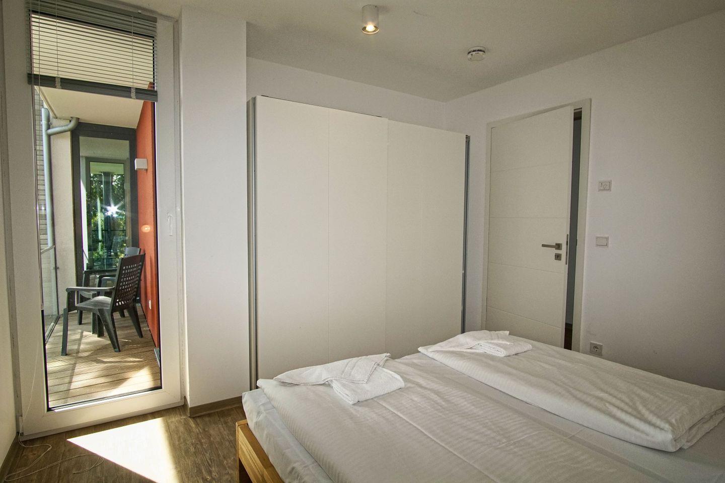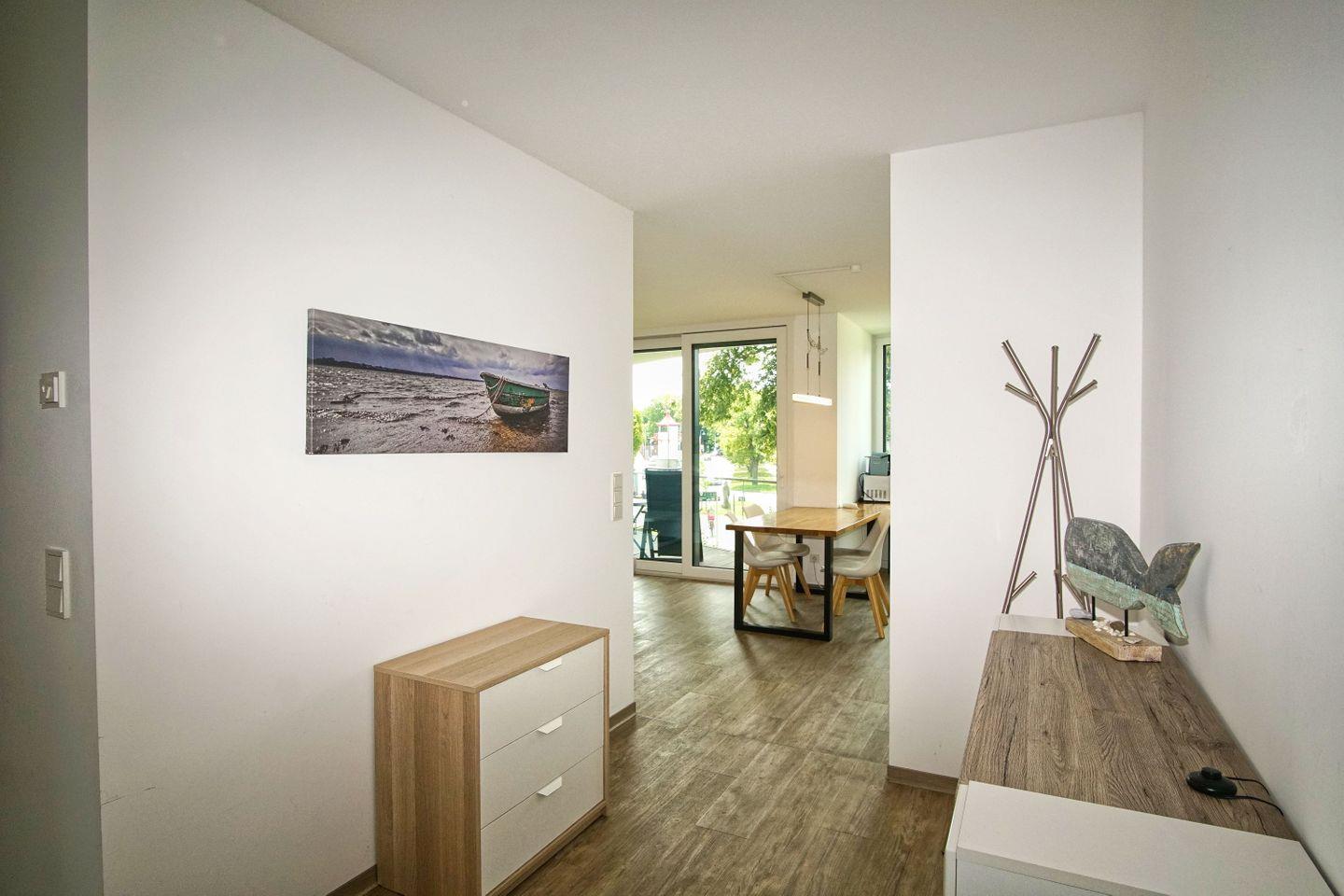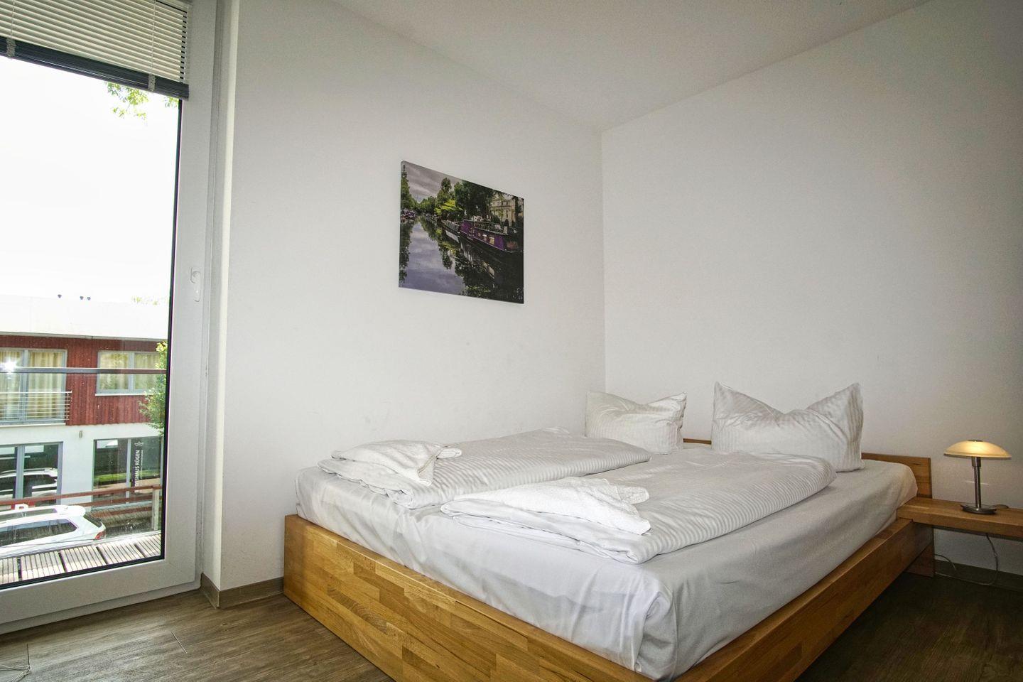 Genießen Sie eine moderne Ferienwohnung mit Balkon nahe dem Hafen von Lauterbach auf Rügen.
