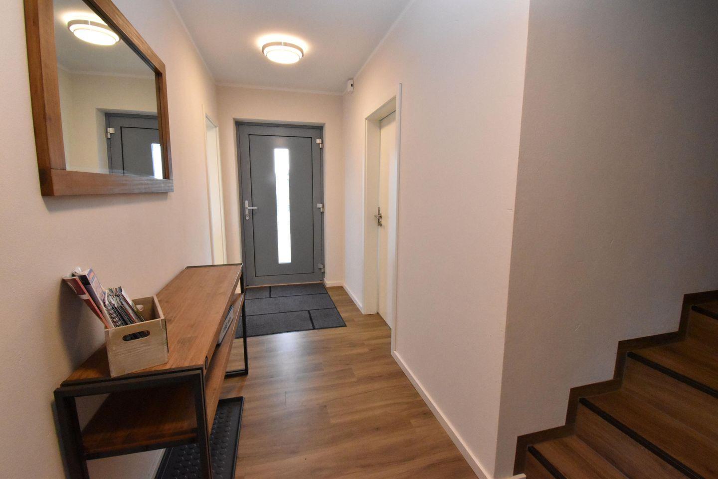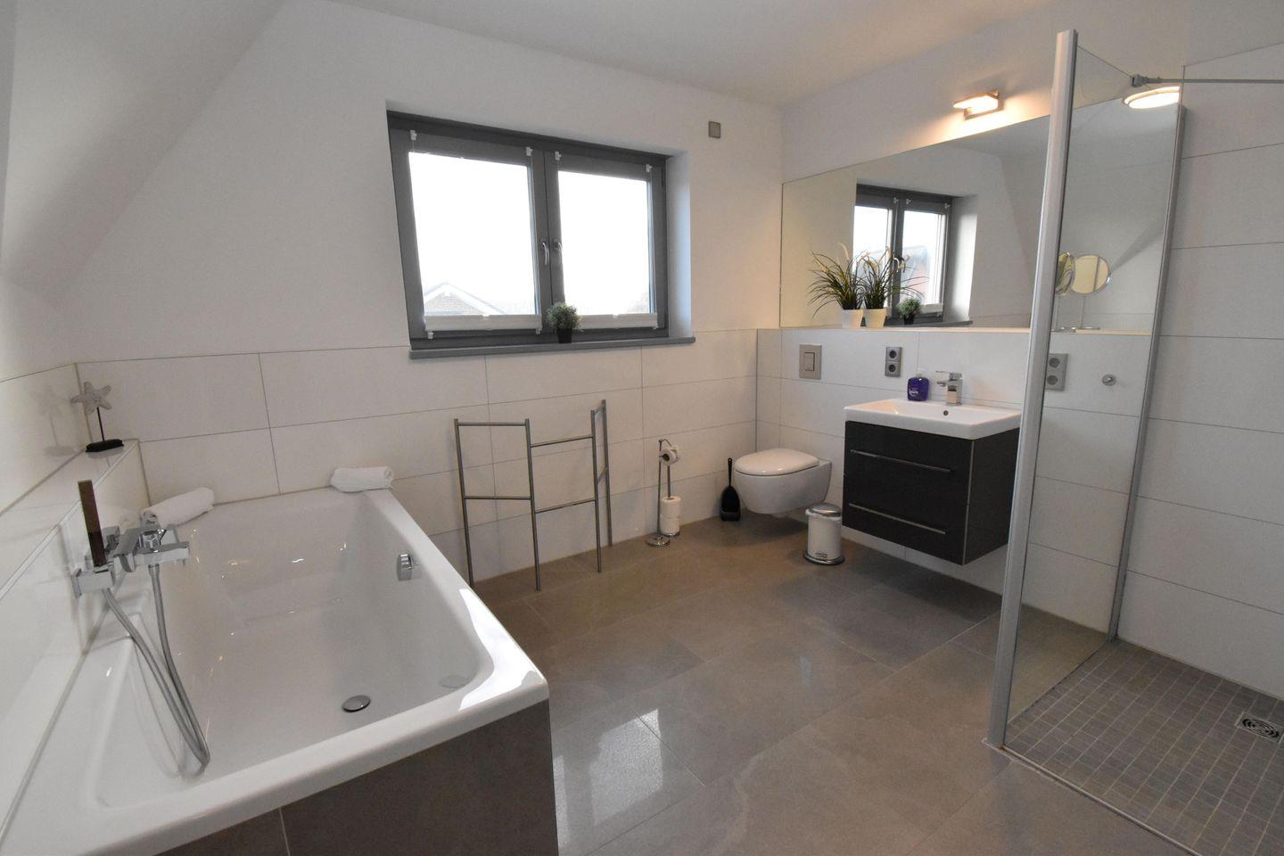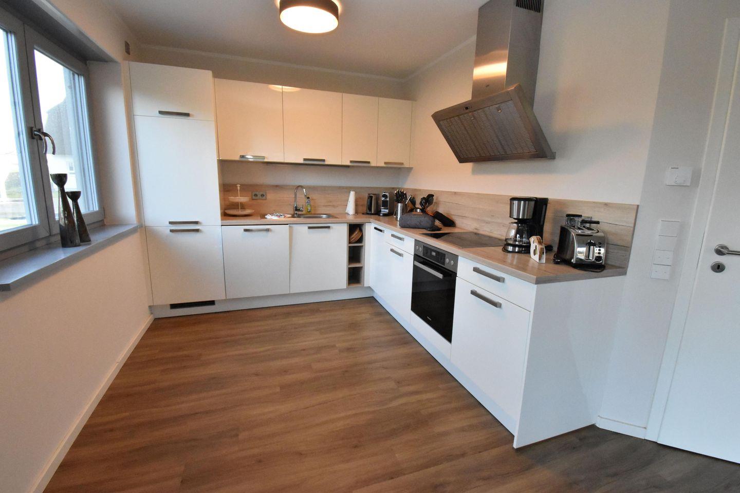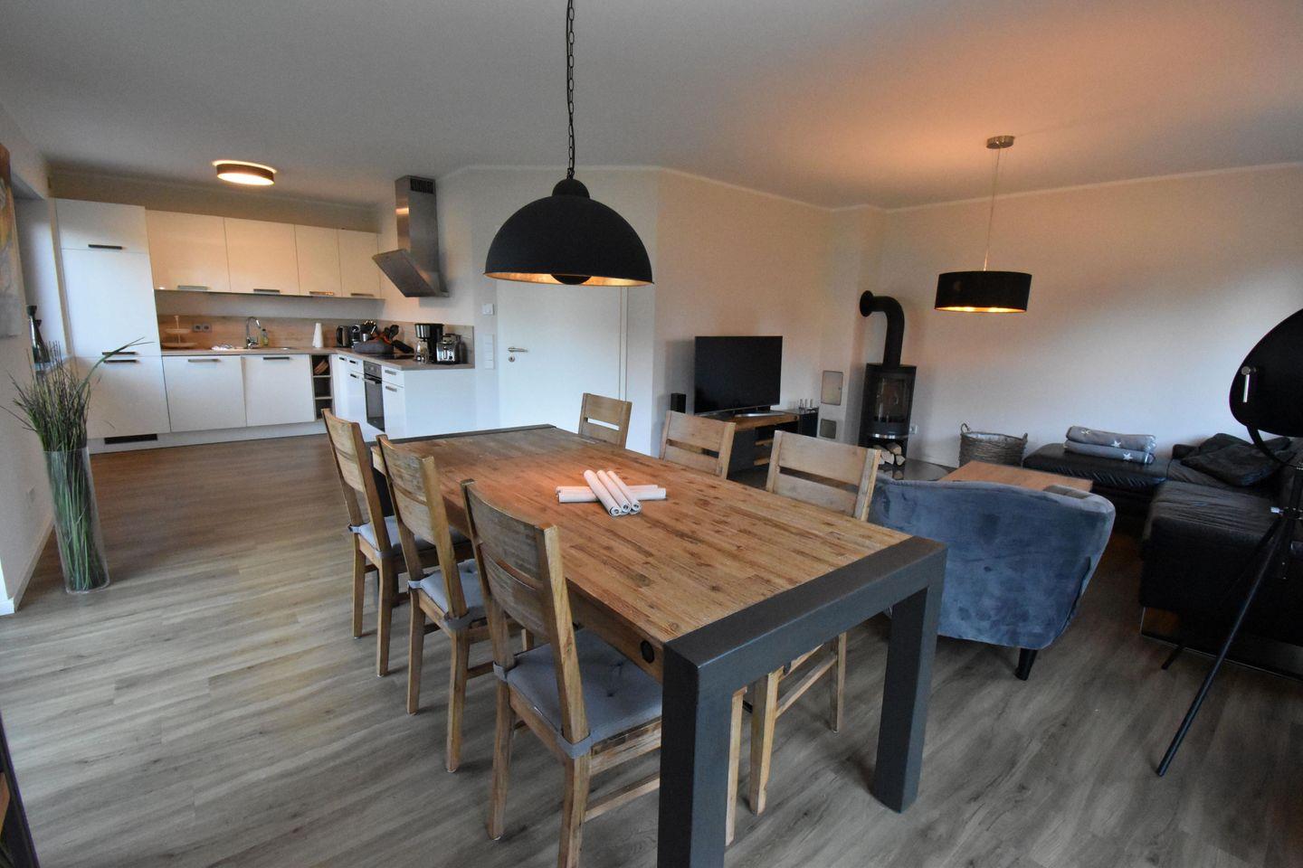 Im Erdgeschoss finden Sie den großen Wohn- und Essbereich mit Kaminofen und offener, sehr gut ausgestatteter Küche. Ein Duschbad und der HWR mit Waschmaschine befinden sich ebenfalls im Erdgeschoss.