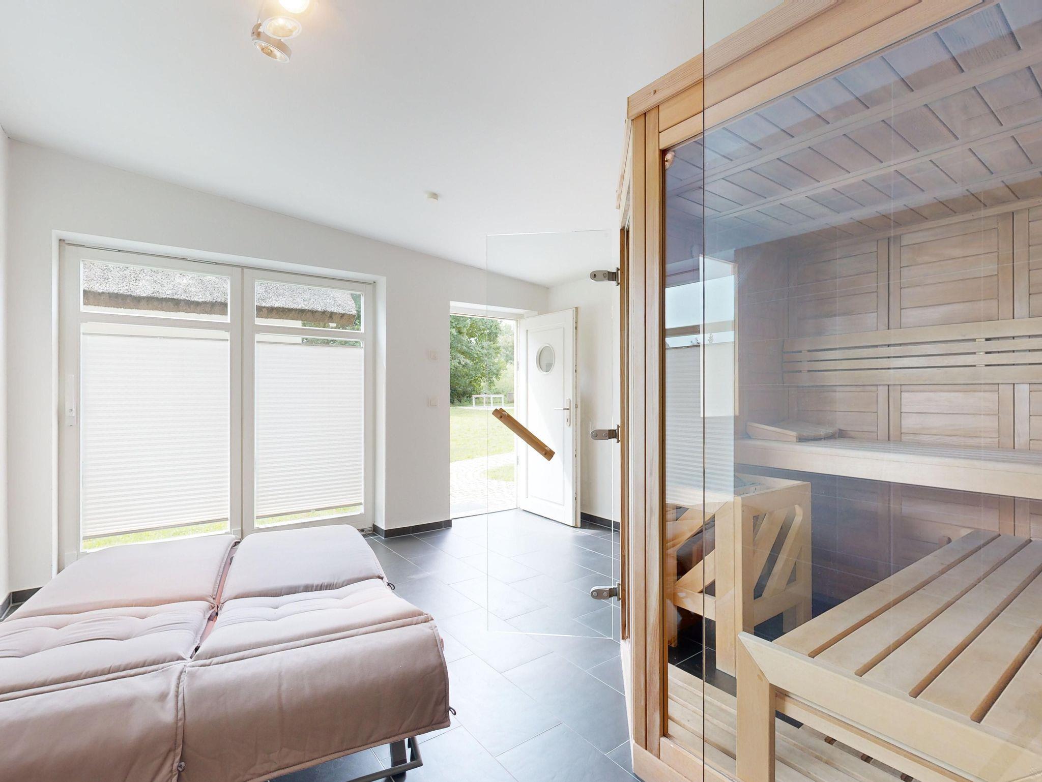 Exklusives, reetgedecktes 5-Sterne-Ferienhaus mit Meerblick und Sauna in ruhiger Lage bei Groß Stresow.