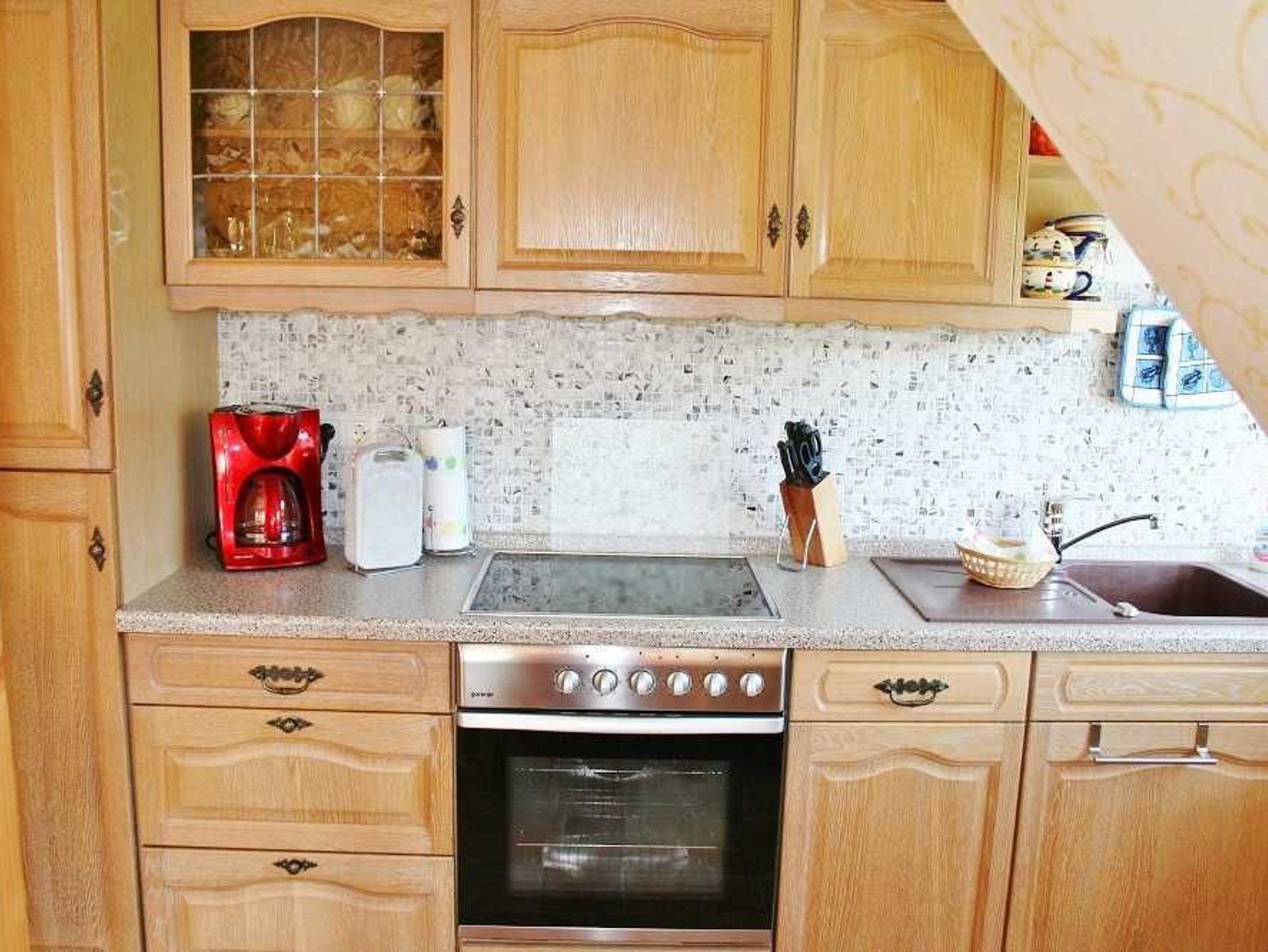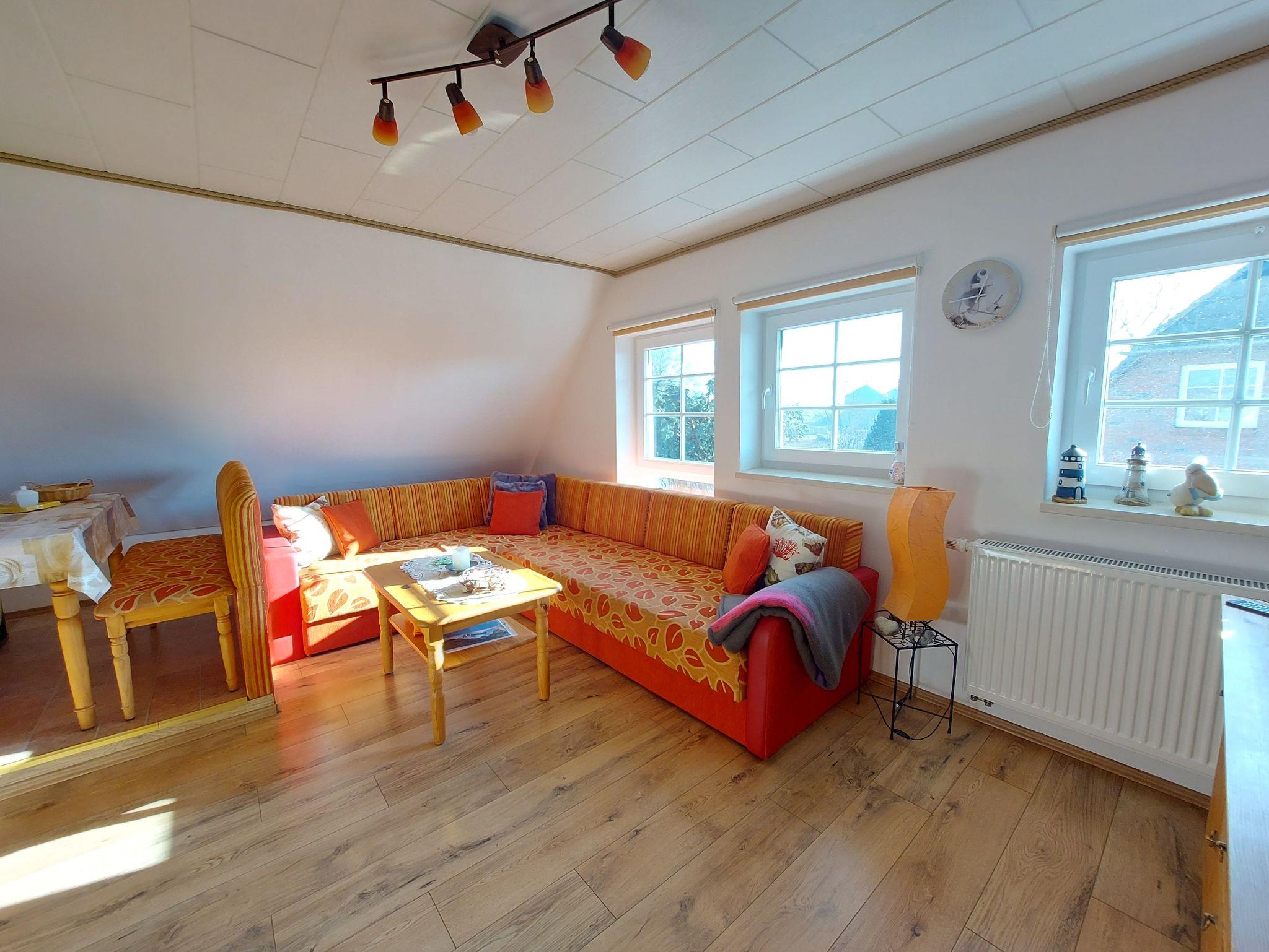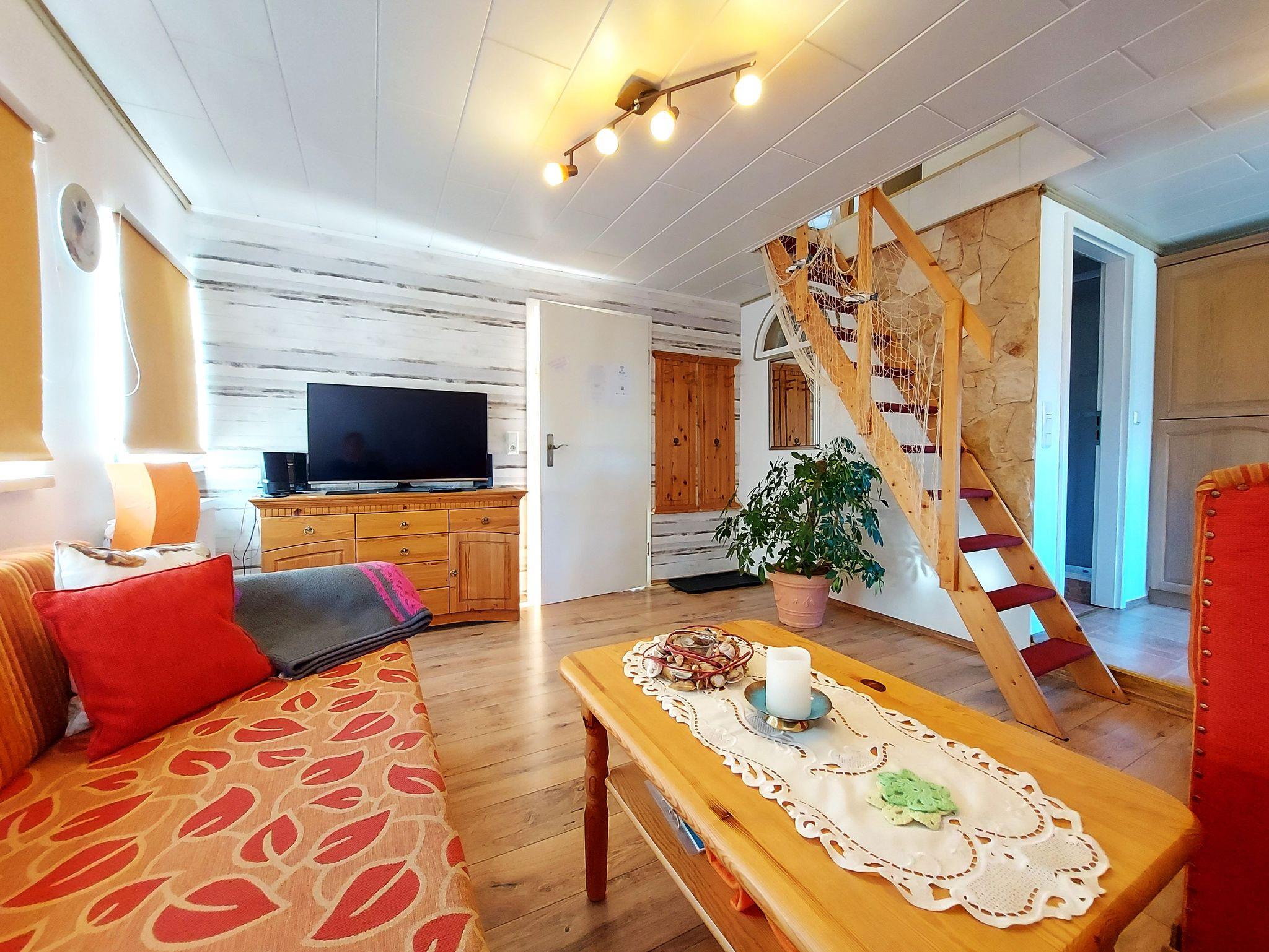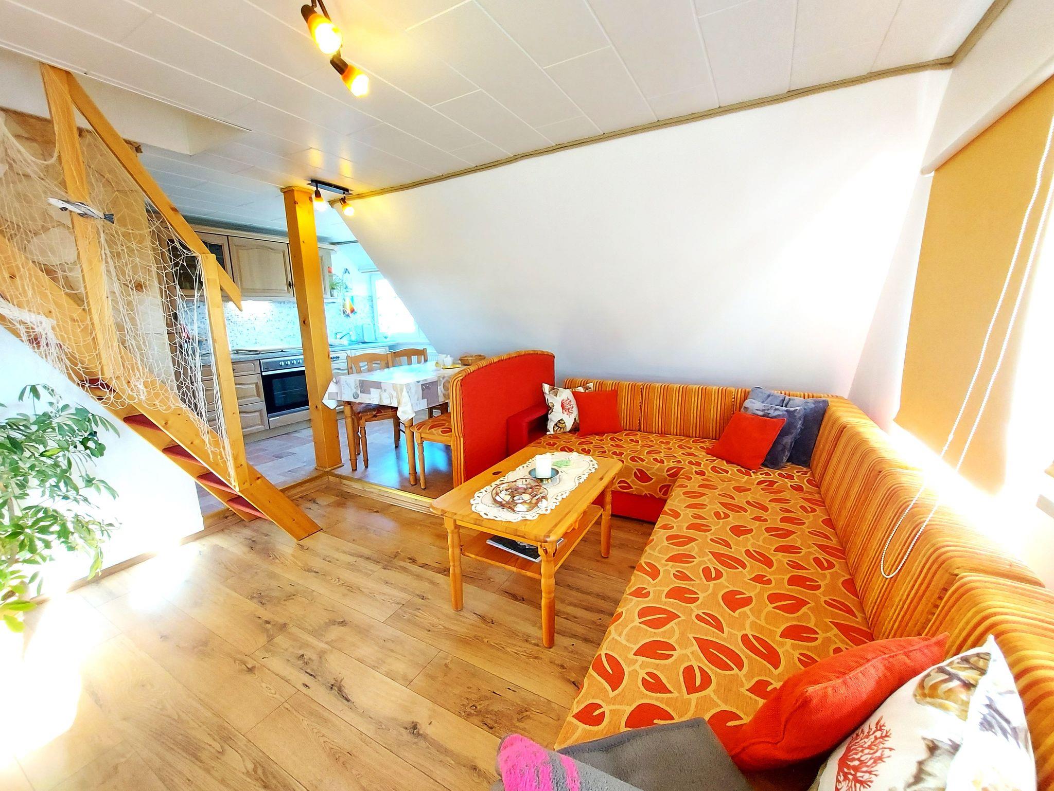 Ferienwohnung Putbus OT Kasnevitz. Im Dachgeschoss unseres Reetgedeckten Landhauses erstreckt sich diese schicke Wohnung über 2 Etagen.Das Haus liegt in einem schönen Dorf 3km von der Rosenstadt Putbus entfernt. Sie besteht aus dem Eingangsbereich mit Garderobe,einem grossen Wohn-Schlafraum ,schicke Einbauküche mit allem Komfort(4 Platten Ceranfeld,Backofen mit Umluft,Kühl-Gefrierkombi,Geschirrspüler,Kaffeemaschine,Toaster,Wasserkocher,Mikrowelle) und ein Esstisch mit 4 Sitzplätzen. Von der Küche haben sie einen herrlichen Ausblick auf den Garten, Der Wohn-Schlafbereich hat ein Doppelbett, auf dieser Etage erwartet sie ein sehr schickes Natursteinbad mit Dusche. Über eine Holztreppe gelangen sie ins Obergeschoss wo sich ein Schlafbereich mit 2 Einzelbetten und ein WC-Bad mit Waschbecken befindet. Im Garten haben sie eigene Sitzecken mit hochwertigen Holzmöbeln und Sonnenliegen.