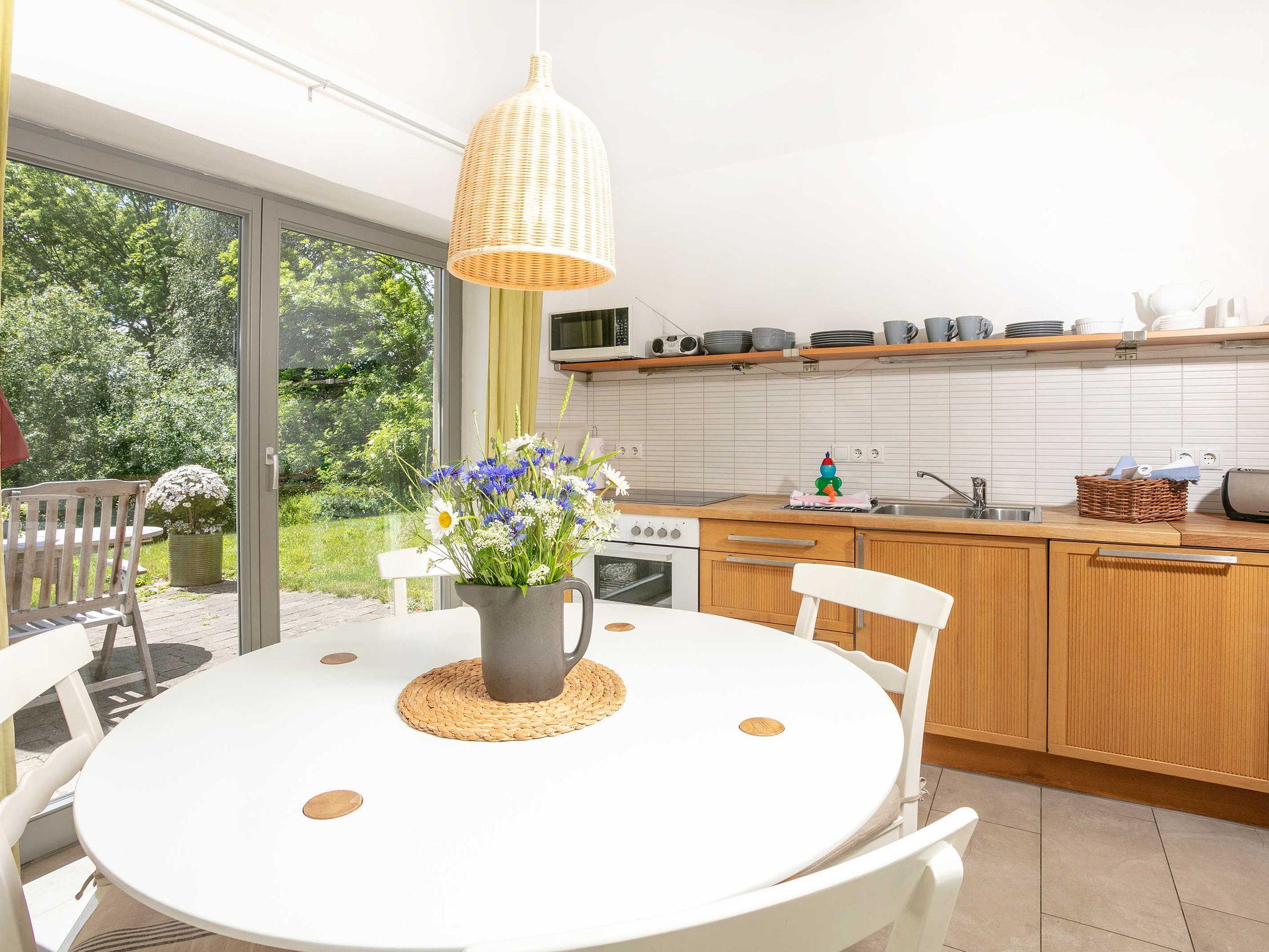 Gemütliche Ferienwohnung Morgentau im reetgedeckten Sonnenhaus mit Terrasse in ruhiger Lage bei Putbus.