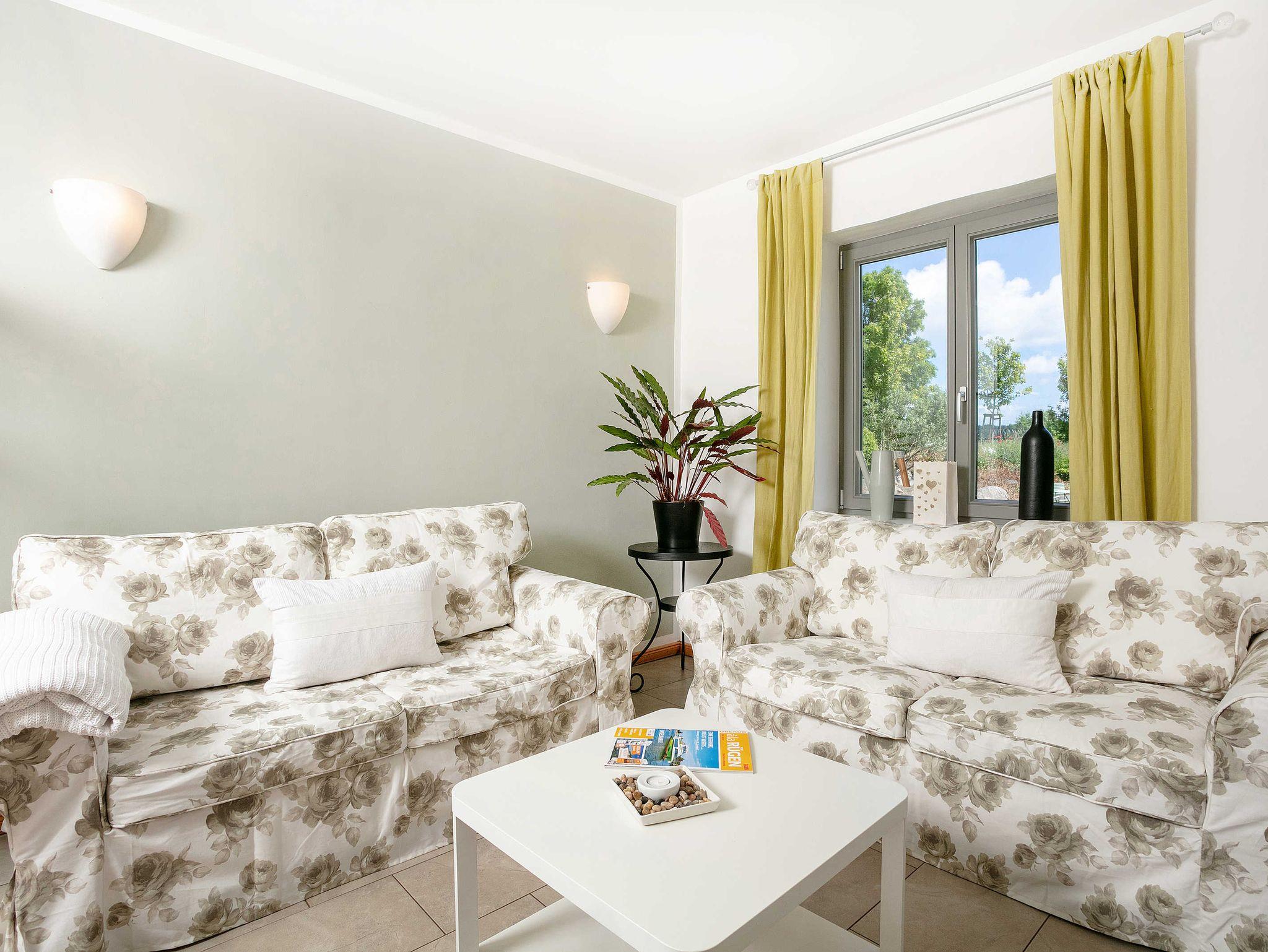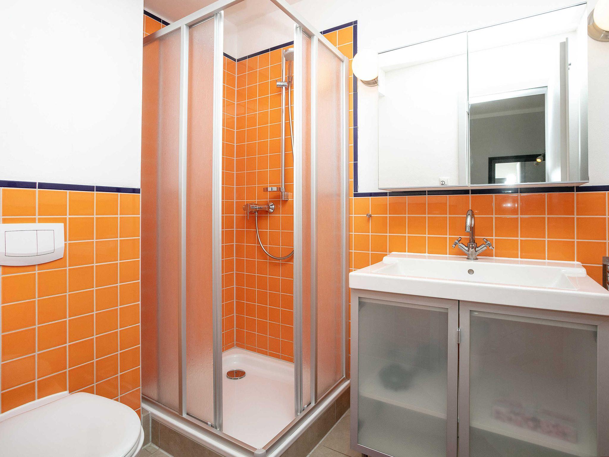 Separater Eingang, kleiner Flur, Wohn-/Eßzimmer mit gemütlicher Sitzecke, SAT-TV, integrierter Küchenzeile mit diverser Ausstattung inkl. Geschirrspüler, 2 Bäder mit Dusche/WC/Waschbecken, 2 Schlafzimmer mit Doppelbett, Fußbodenheizung.