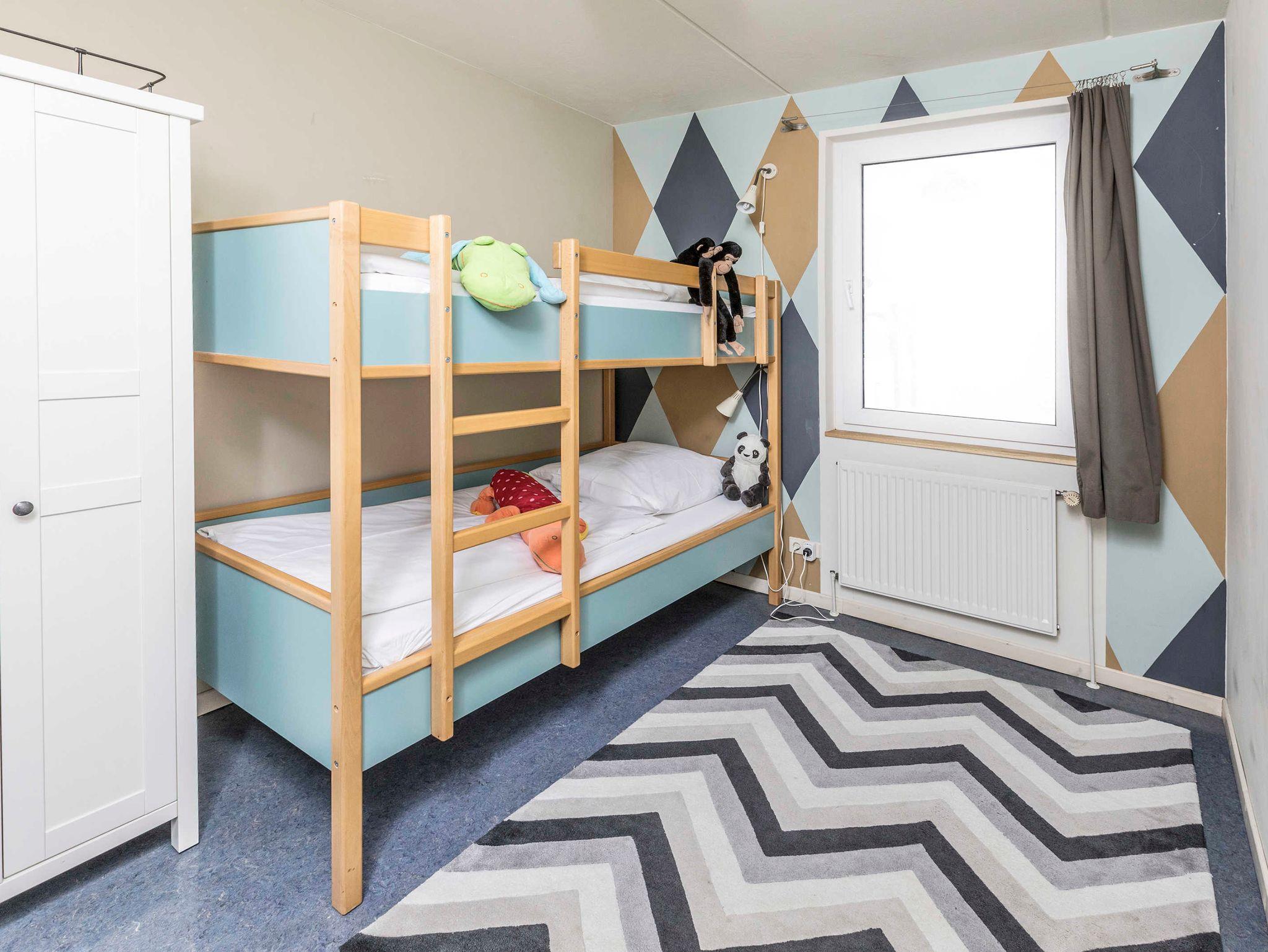 Ein Schlafraum mit Doppelbett, ein Kinderzimmer mit Etagenbett und ein Wohnraum mit Aufbettung für zwei Personen (Schlafcouch), SAT-TV, Musikanlage, Küchenzeile, Bad mit Dusche und WC, Terrasse oder Balkon.