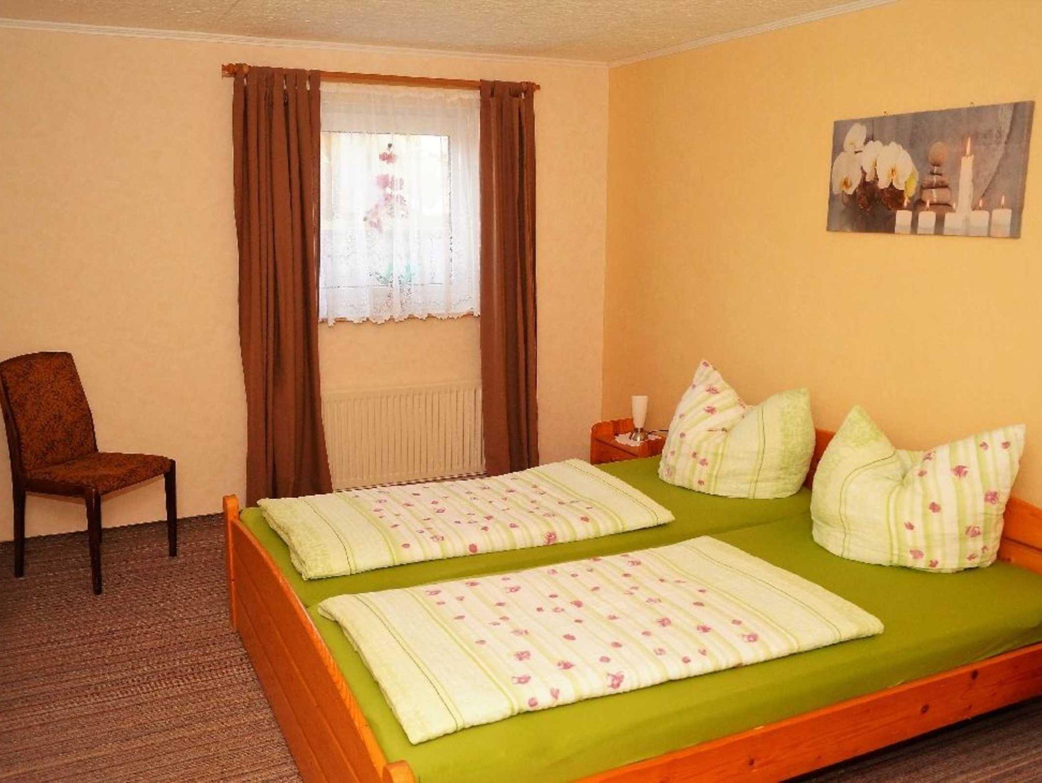 Unsere 70 m² große Ferienwohnung für 2-5 Personen im Souterrain hat einen Wohnraum mit TV/Fernseher, Radio/Hifi, Sitzecke und einer Aufbettungsmöglichkeit auf einem Schlafsofa, einen Schlafraum mit Doppelbett und einem Schlafraum mit zwei Einzelbetten. Ein Baby-Bett, und ein Kinder-Hochstuhl stehen zur Verfügung. Die Küche ist komplett ausgestattet mit einem Kühlschrank mit Gefrierfach, Kaffeemaschine, Toaster, Geschirr/Besteck . Das Bad hat Dusche und WC und auf der Terasse können sie Gartenmöbel und auch einen Grill benutzen. Bettwäsche und Geschirrtücher sind inklusive. Lauterbach ist Kurabgabepflichtig.