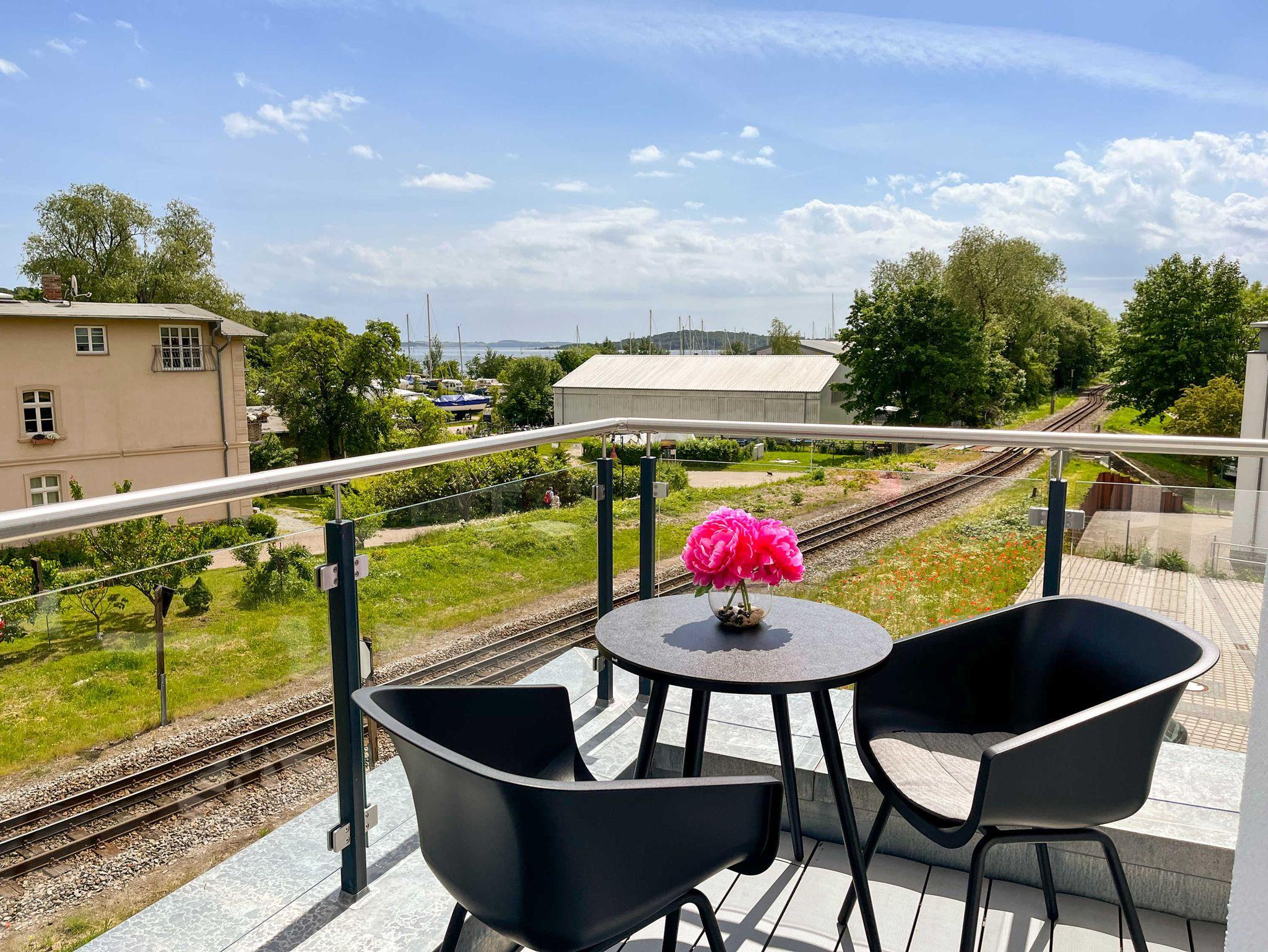 Modernes Penthouse mit Kamin und großer Dachterrasse, direkt am Yachthafen von Lauterbach auf Rügen.