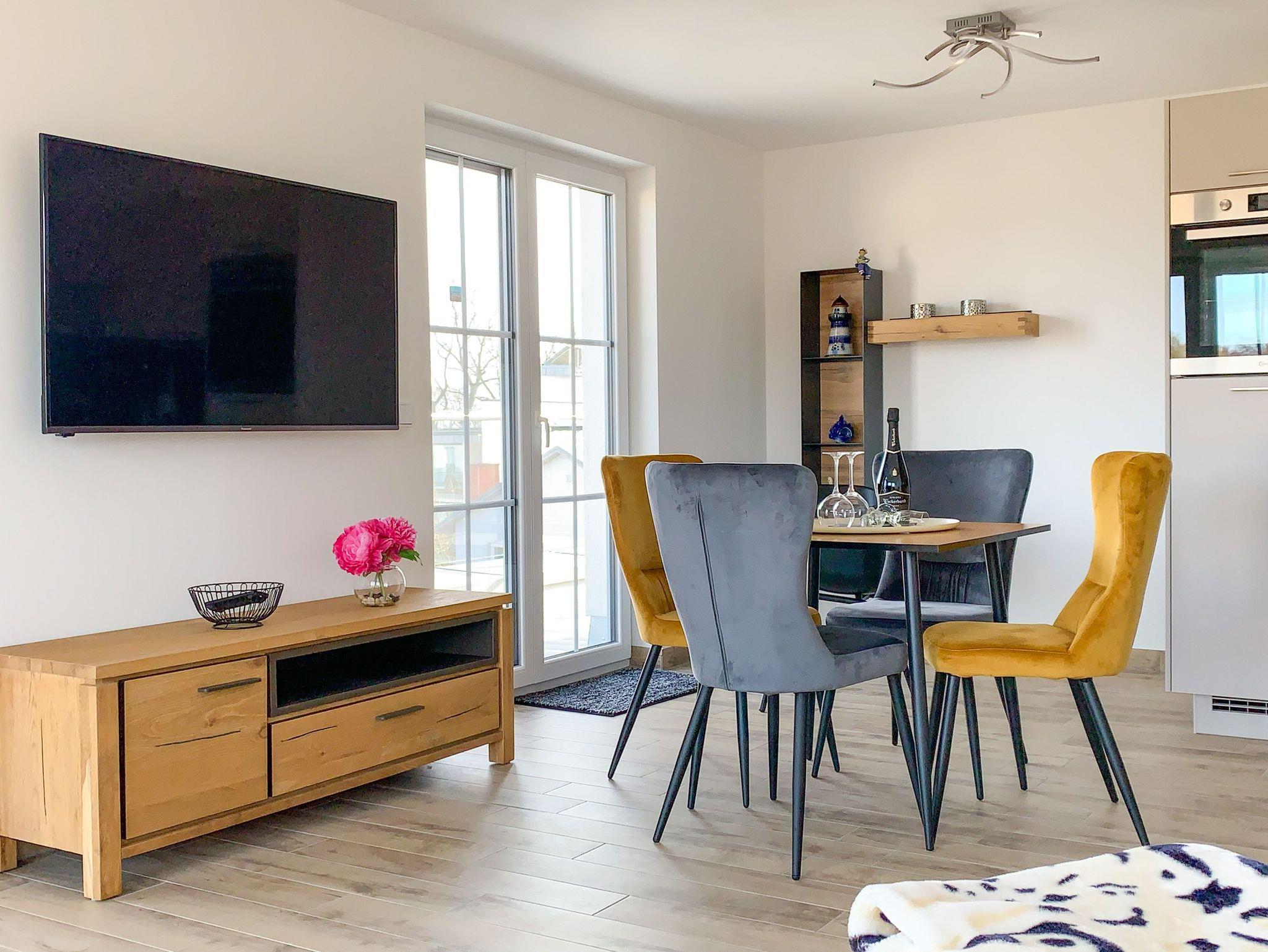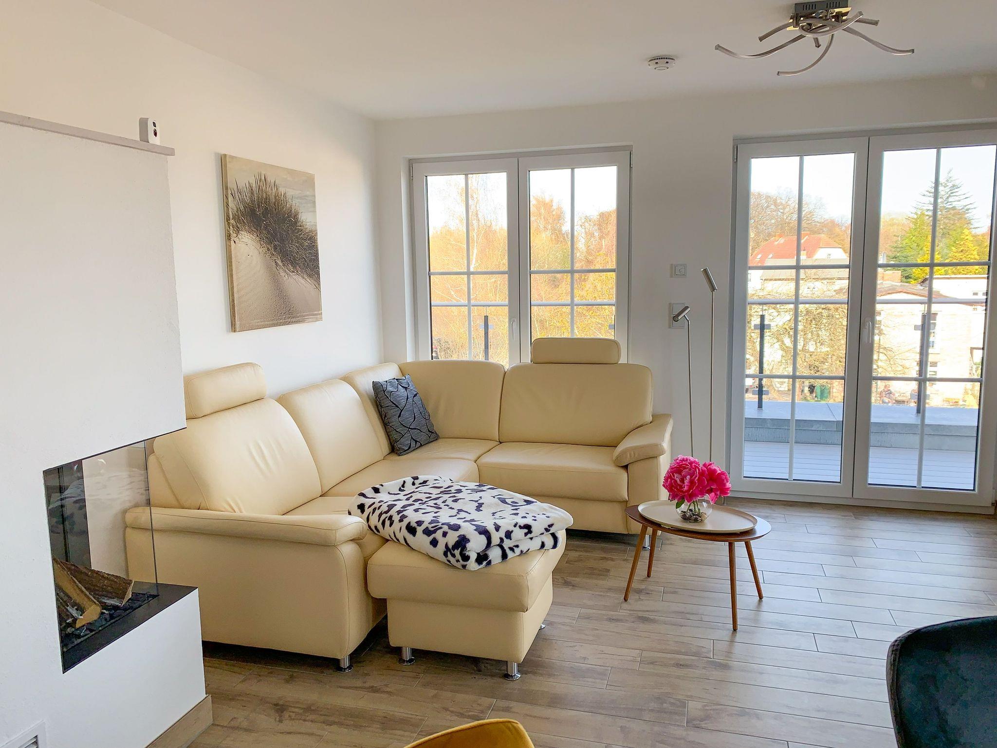Modernes Penthouse in Lauterbach mit Kamin und großem Meerblick auf Yachthafen und Bodden.