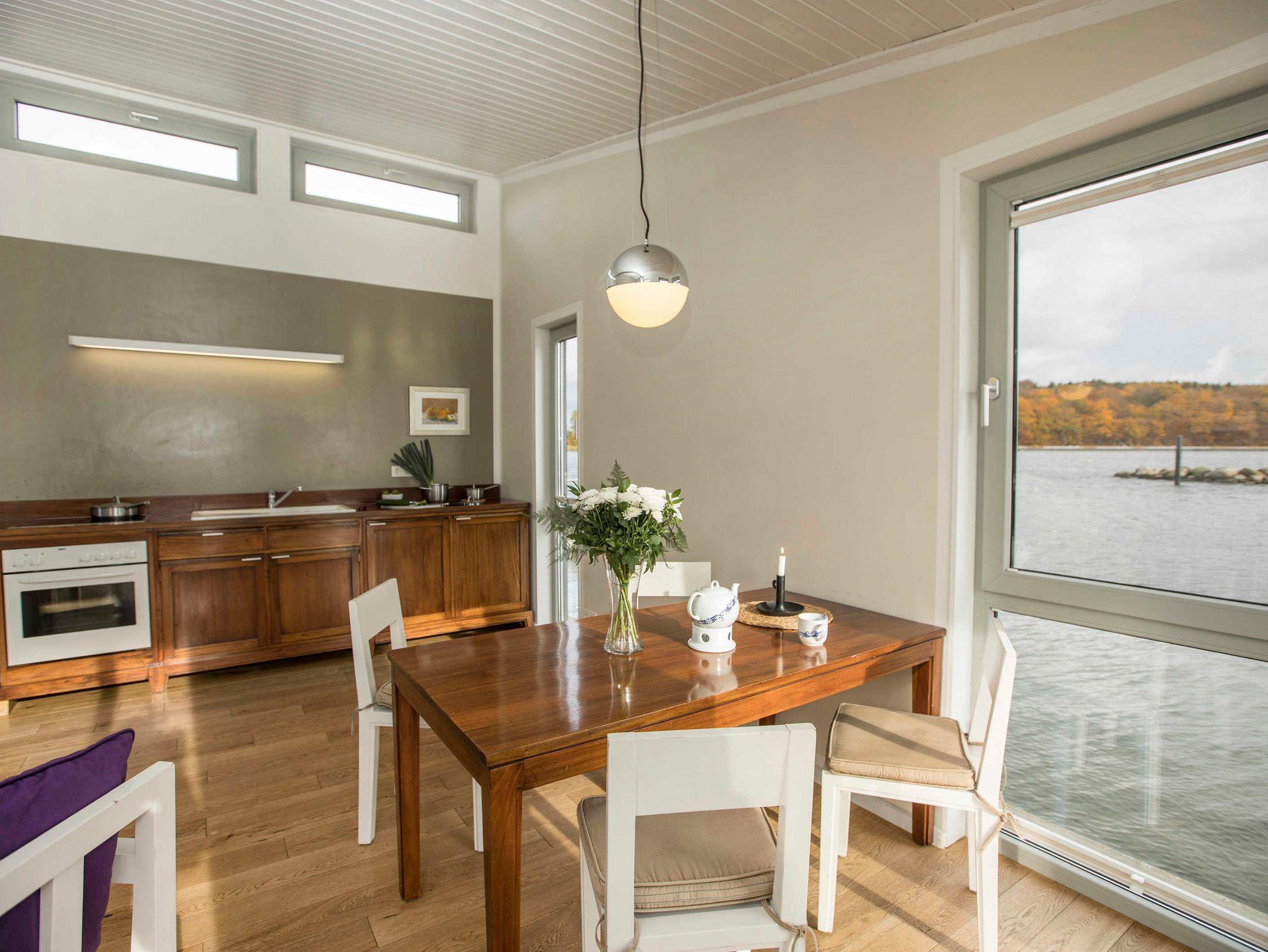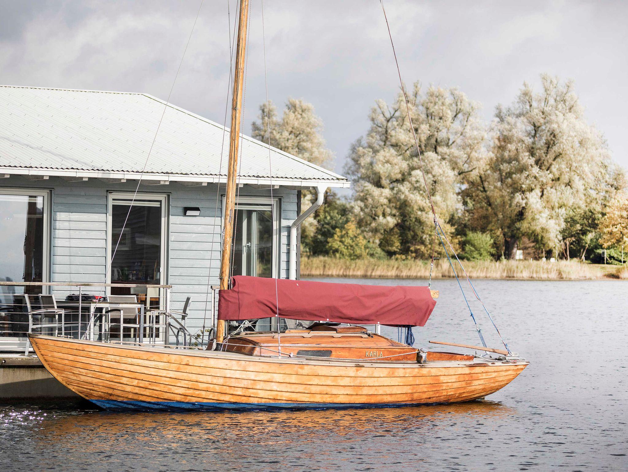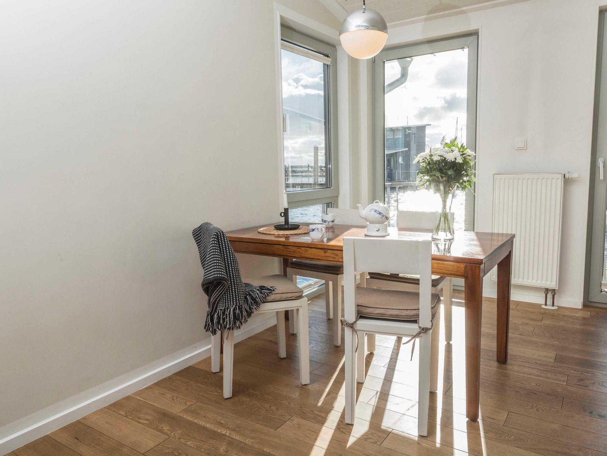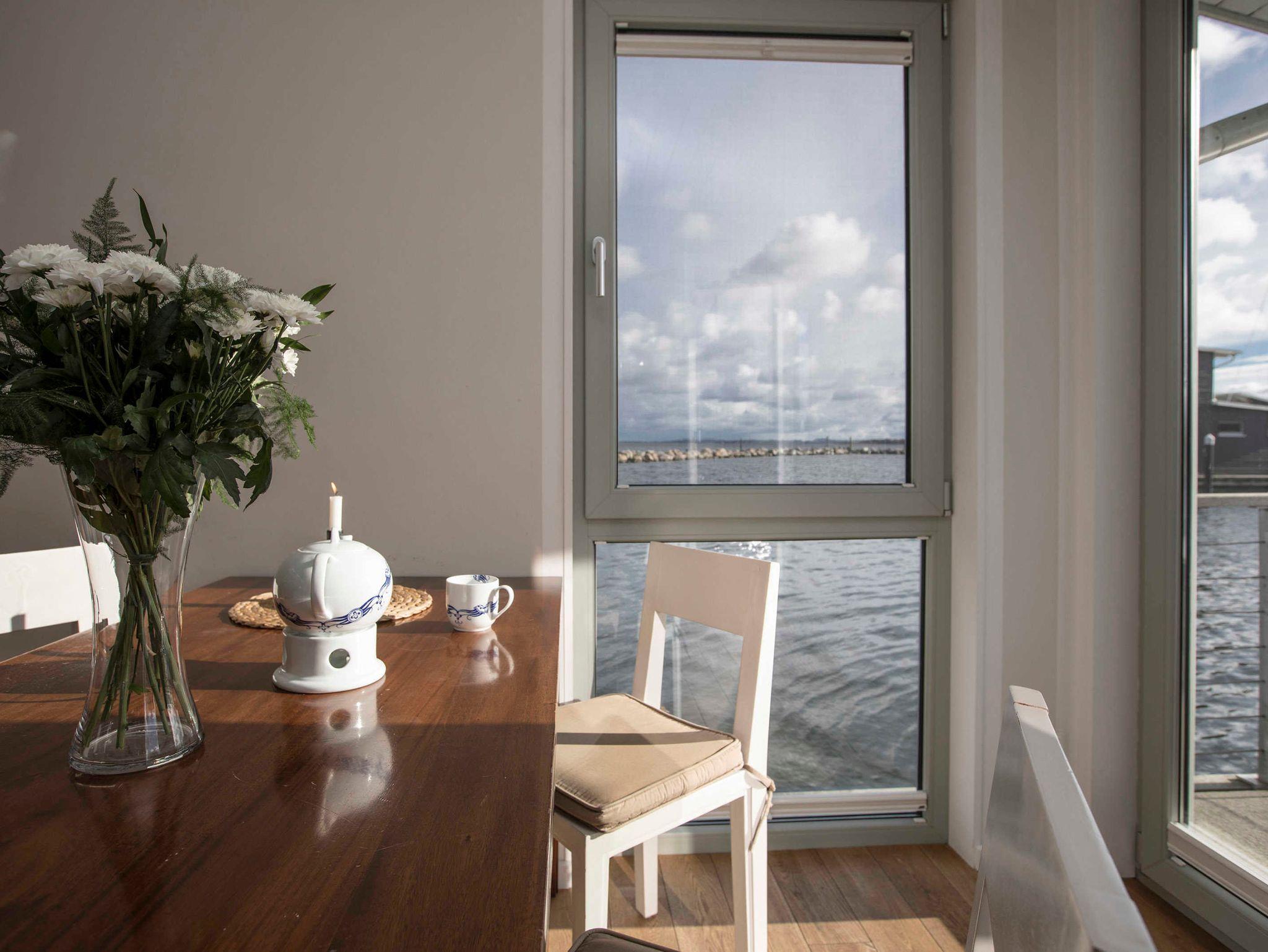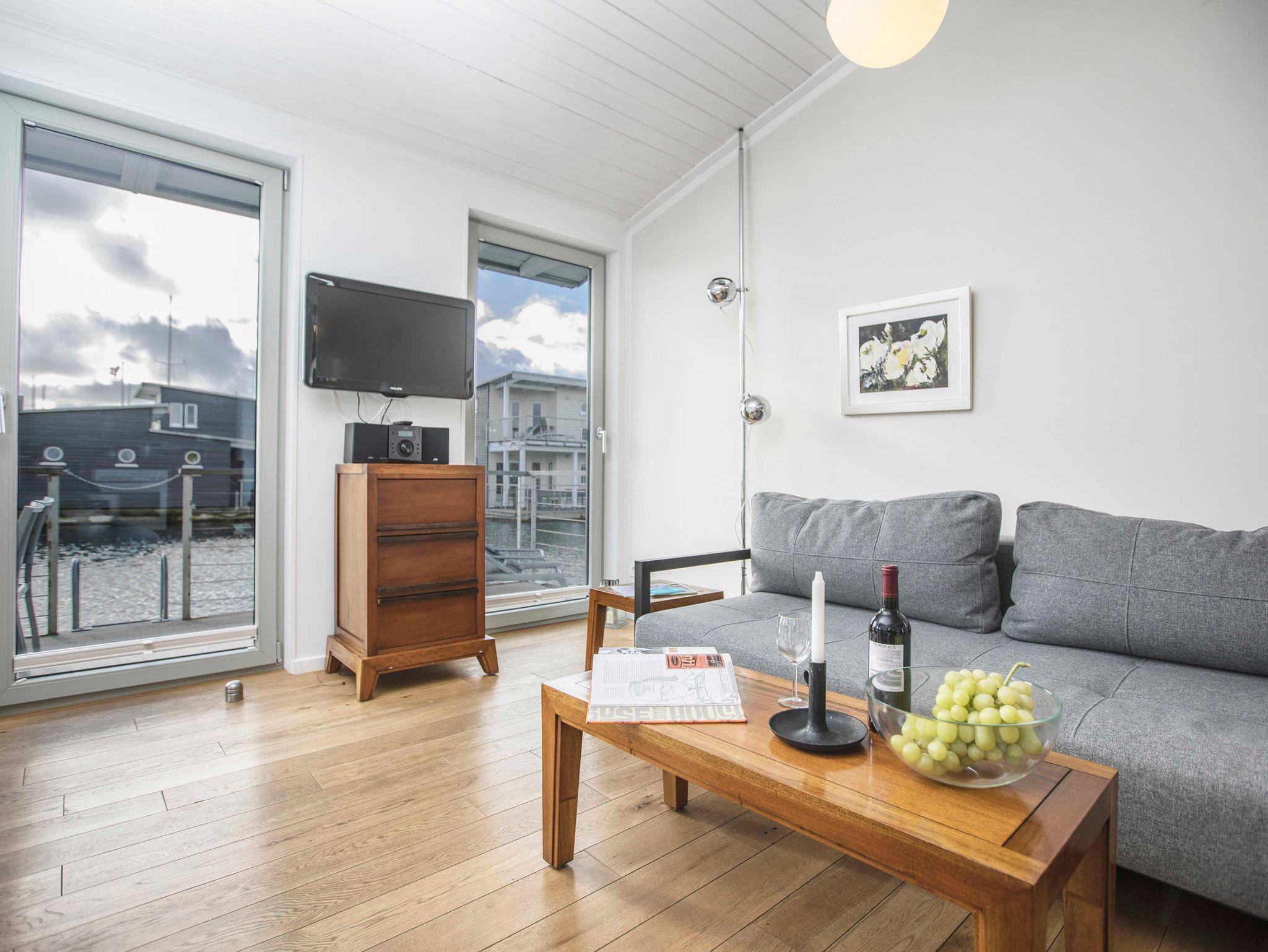 Schwimmendes Ferienhaus in Lauterbach mit Terrasse, Bootsliegeplatz und familienfreundlichen Angeboten.