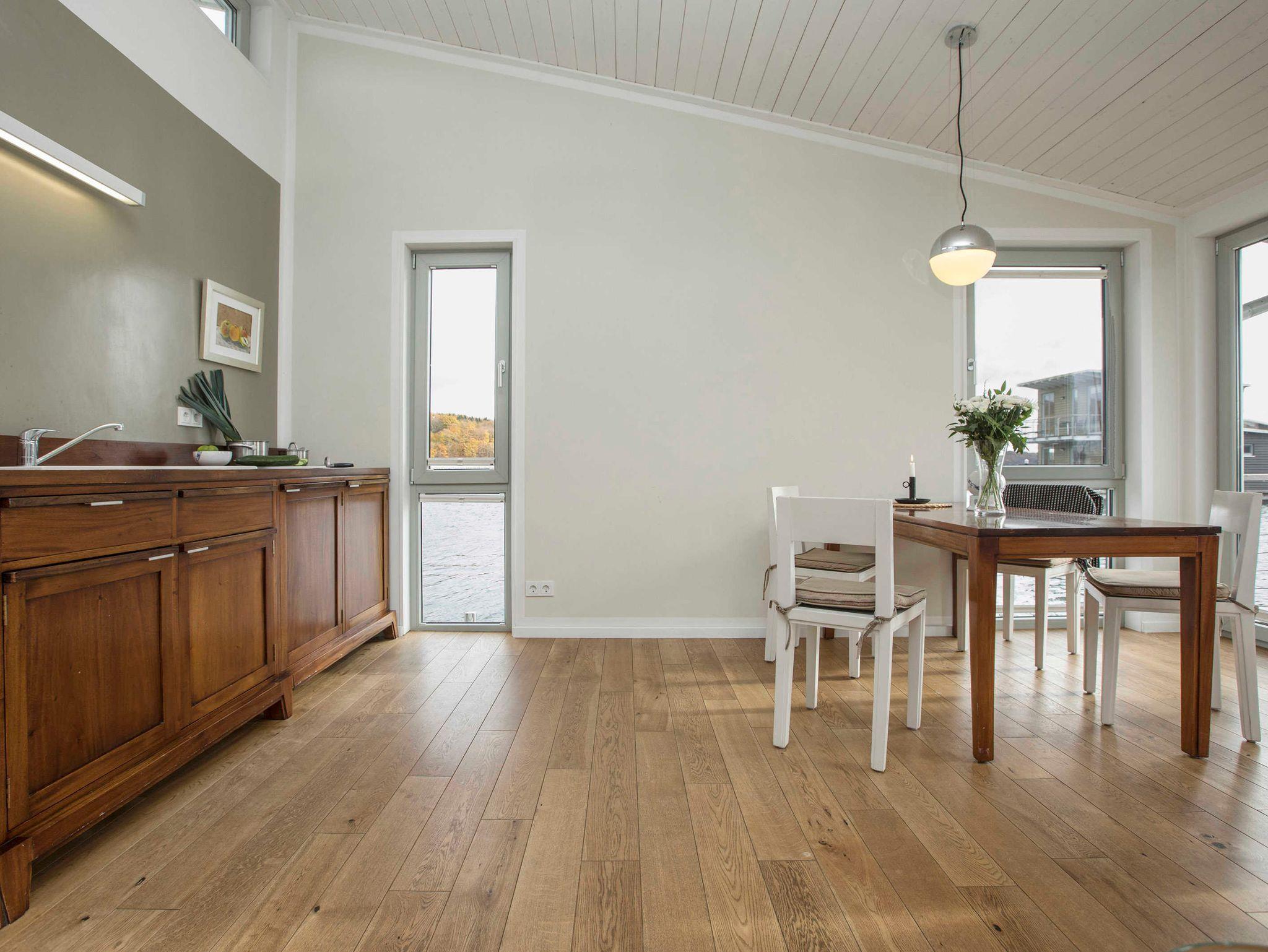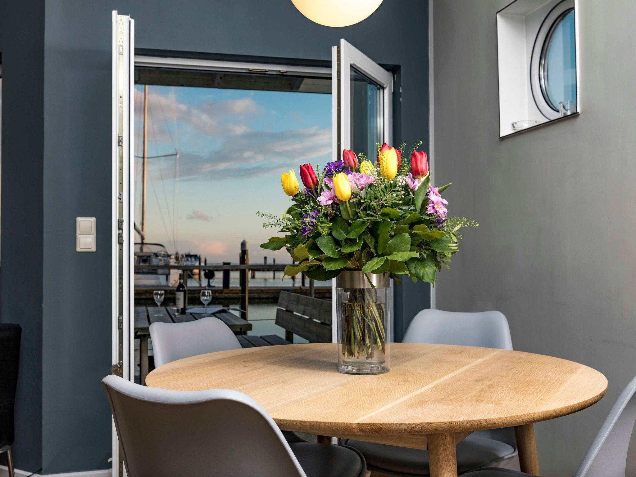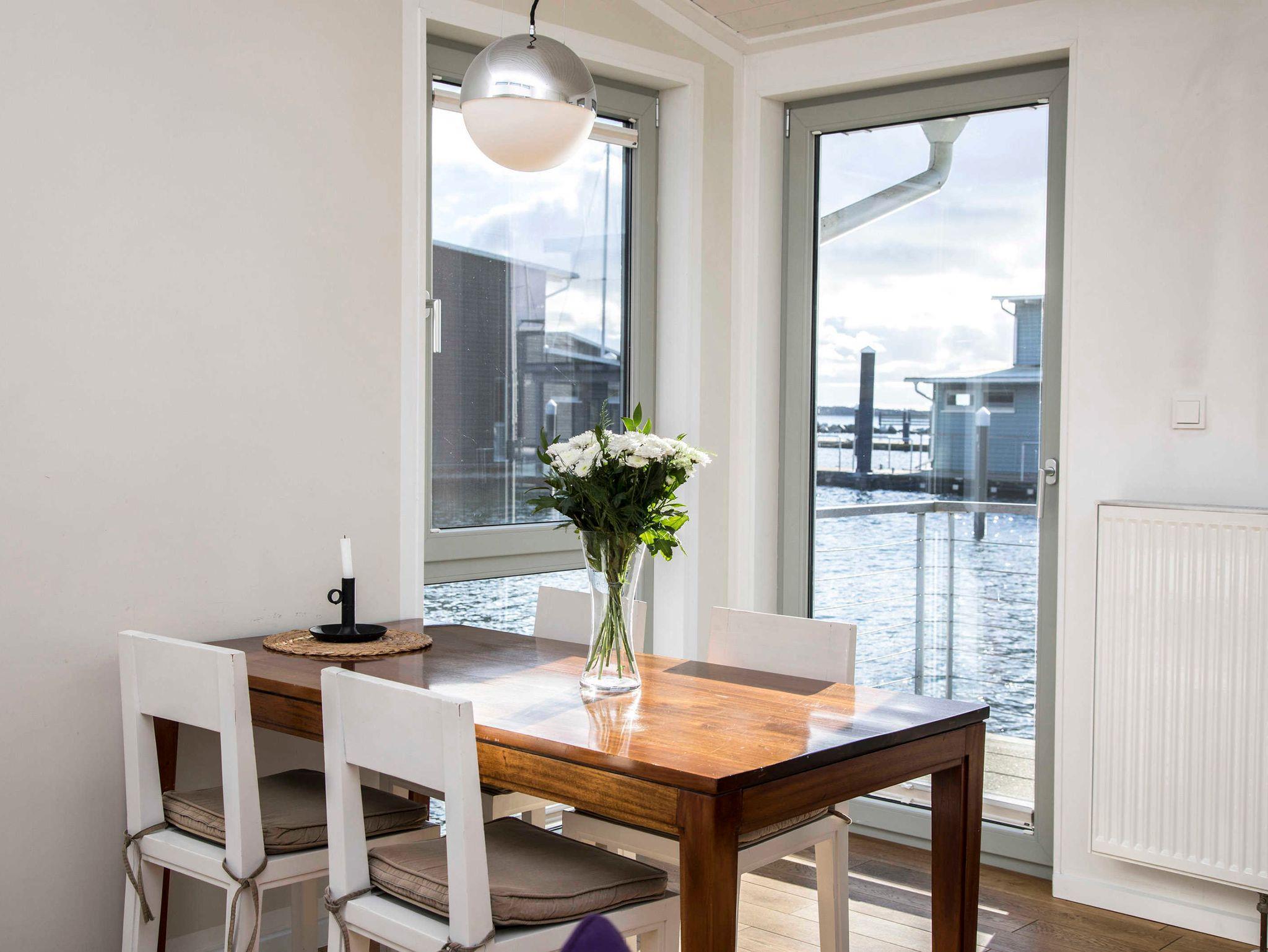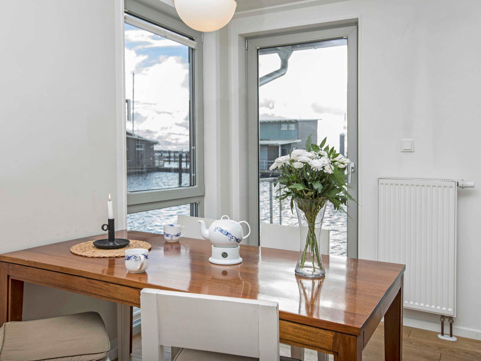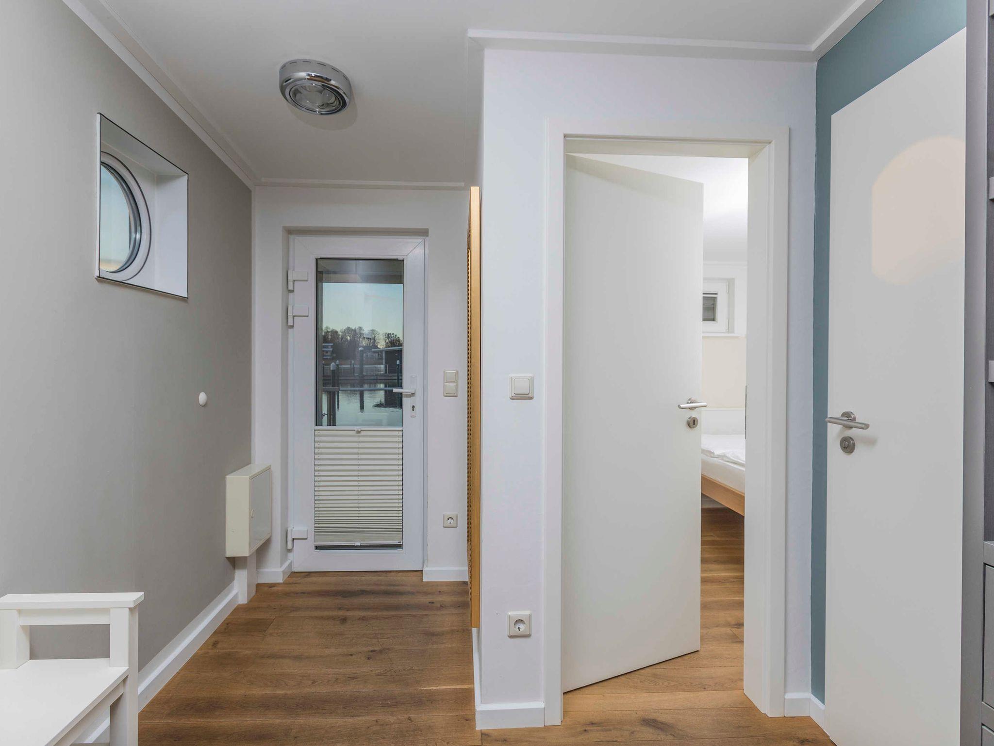 Schwimmendes Ferienhaus in Lauterbach mit Terrasse, Bootsliegeplatz und familienfreundlichen Angeboten.