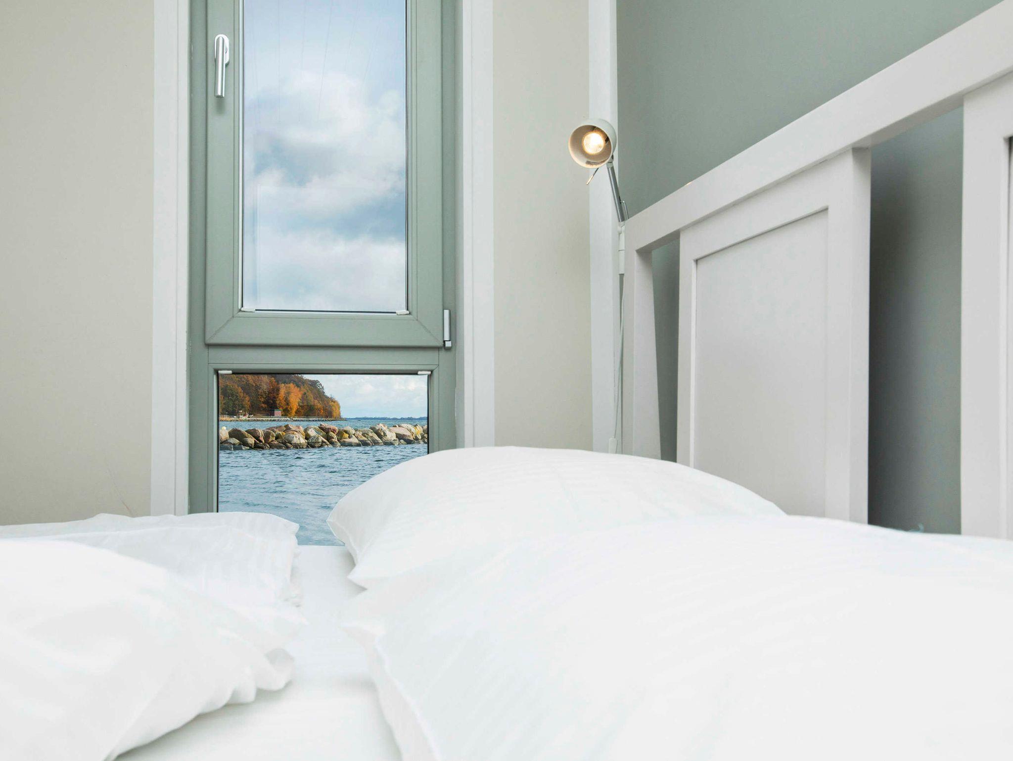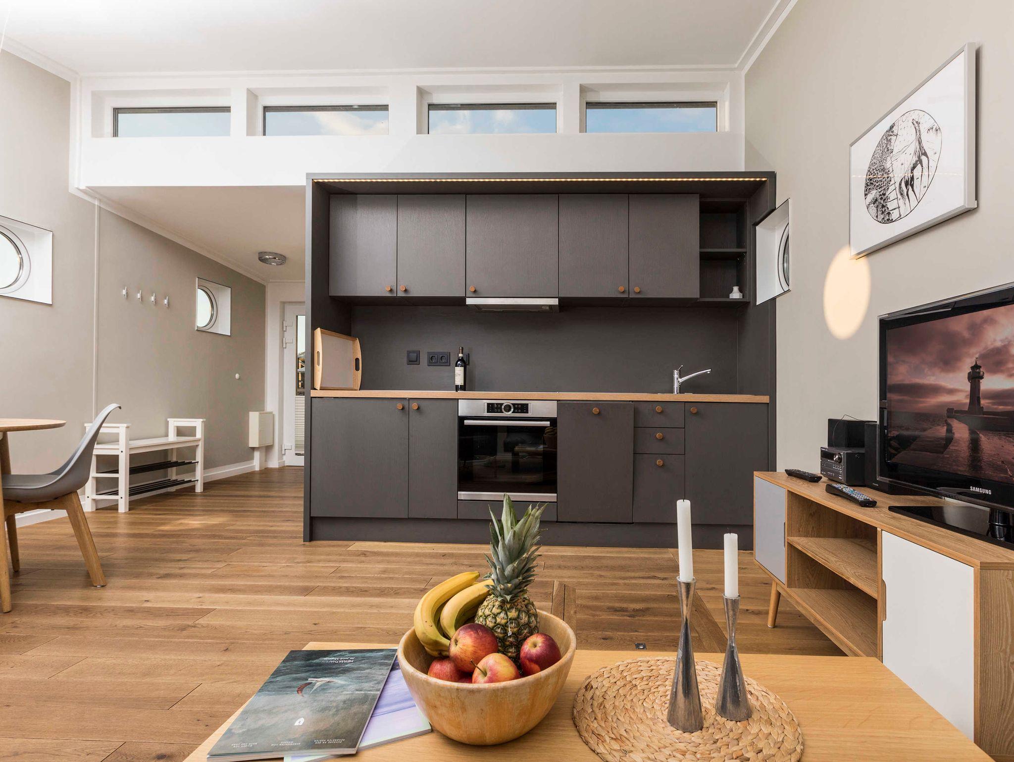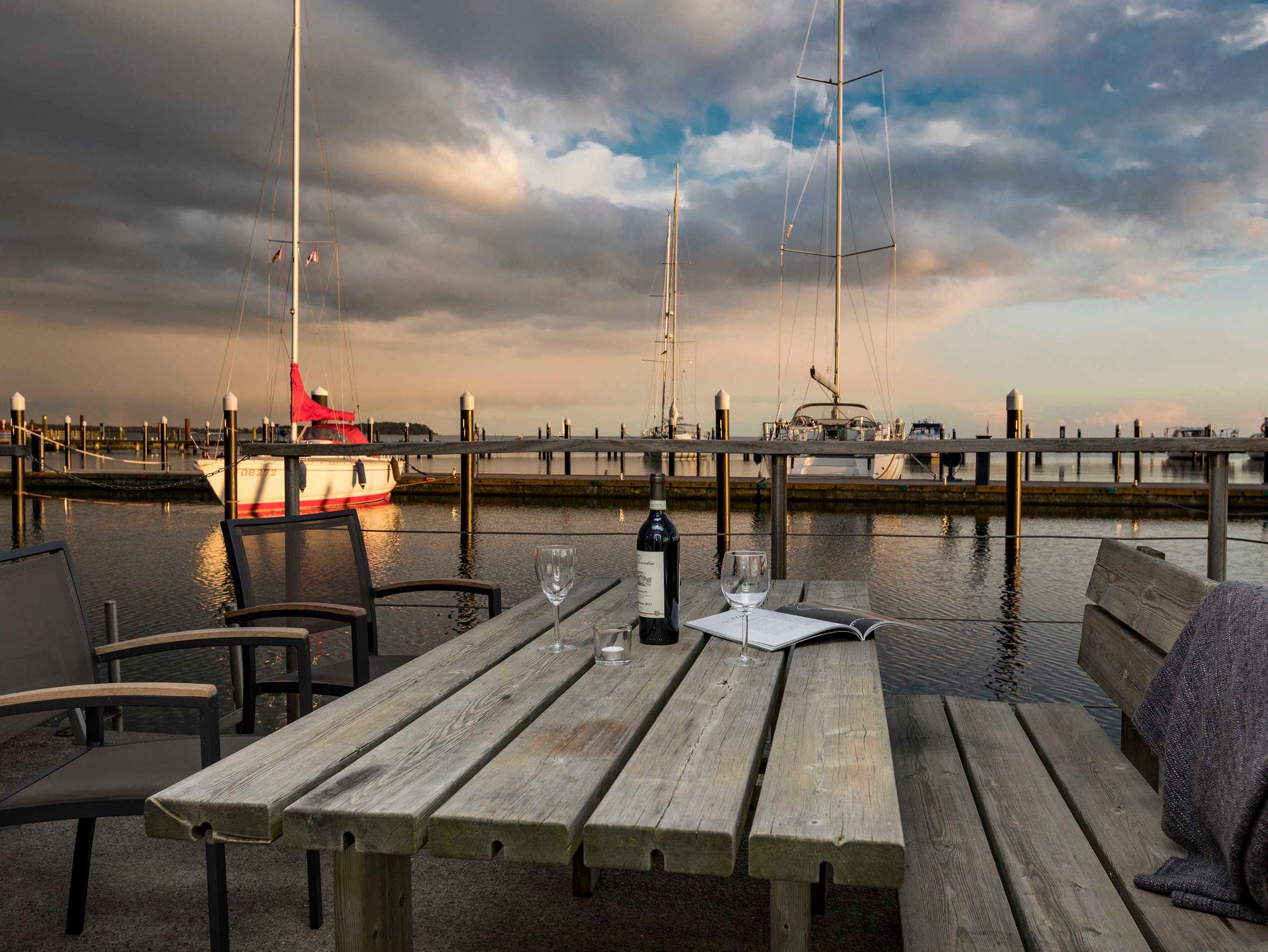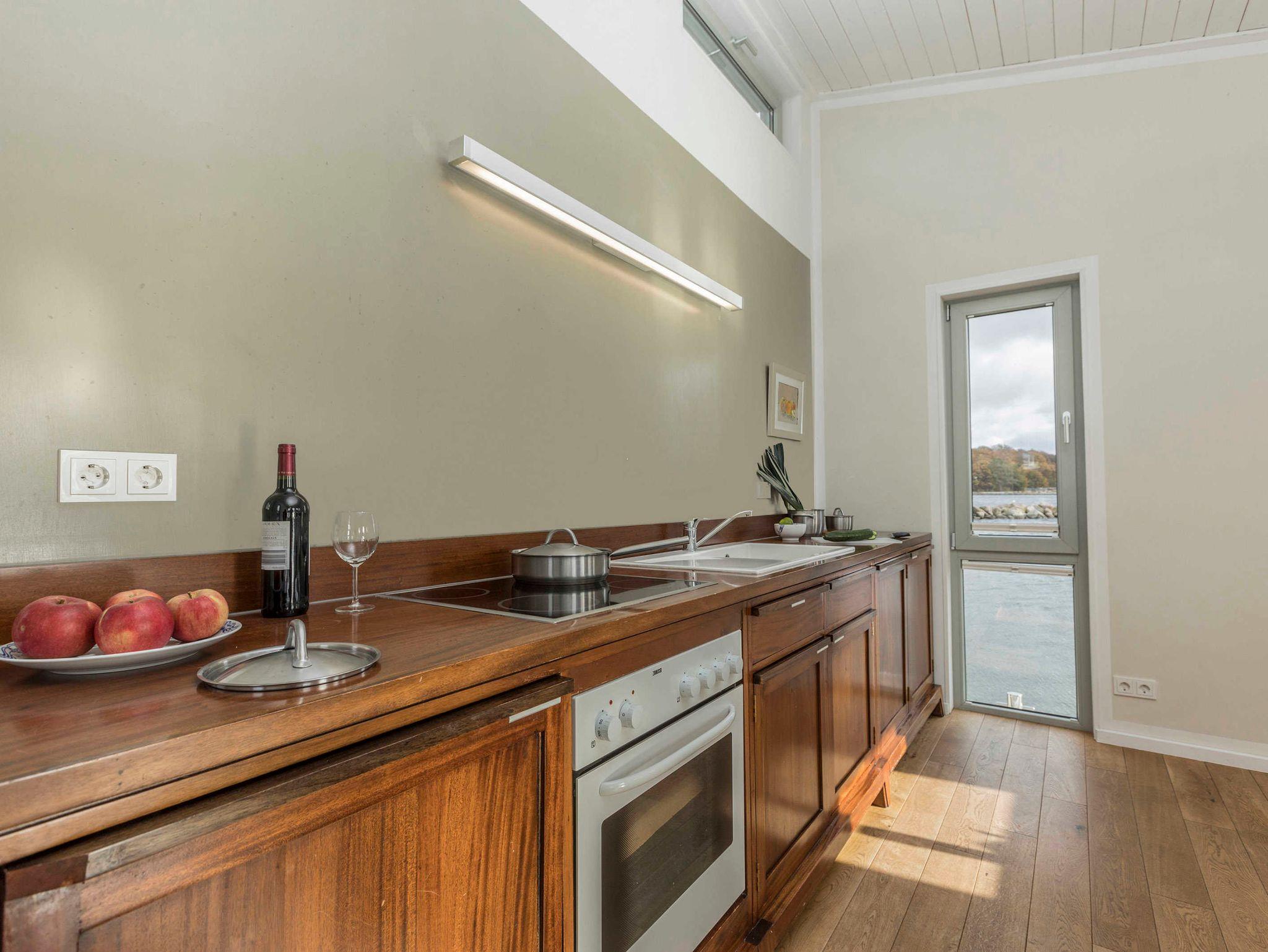 Ein Schlafraum mit Doppelbett, ein Wohnraum mit Aufbettung für zwei Personen (Schlafcouch). SAT-TV, Musikanlage, Küchenzeile, Dusche, WC, möblierte Terrasse, Bootsliegeplatz inkl.