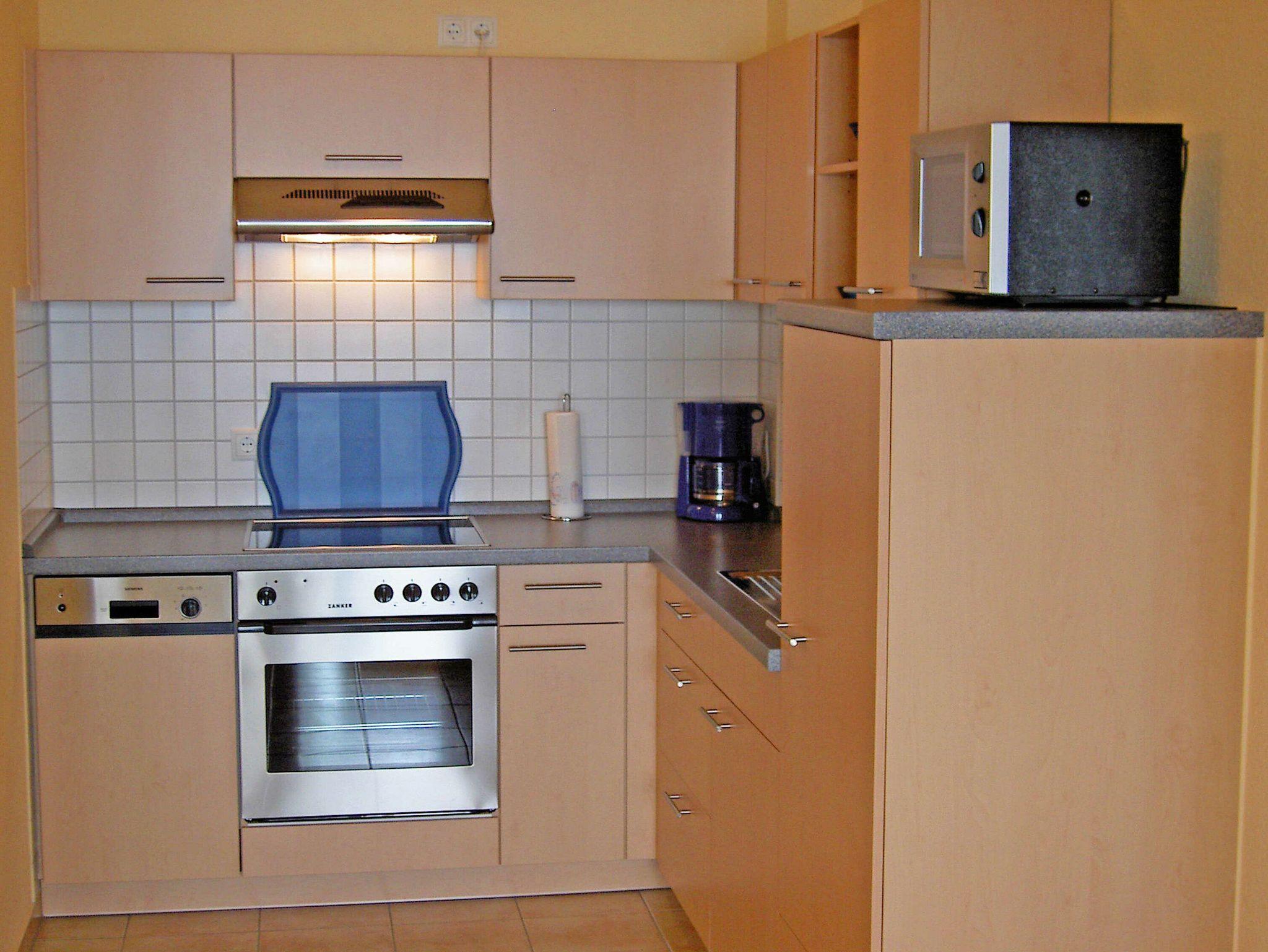 Die Wohnung 05 ist ein 2-Raum-Appartement mit rund 50 m² Wohnfläche und einem großen Balkon mit direktem Boddenblick. Die für bis zu 4 Feriengäste buchbare Nichtraucherwohnung verfügt über ein Wohnzimmer mit einer Schlafcouch für zwei Personen, eine sehr gut ausgestattete Küchenzeile mit Backofen, Mikrowelle und Geschirrspüler, ein Duschbad und ein Schlafzimmer mit einem Doppelbett. Zur technischen Ausstattung zählen ein Fernseher, ein DVD-Player und eine Stereoanlage mit CD-Player.