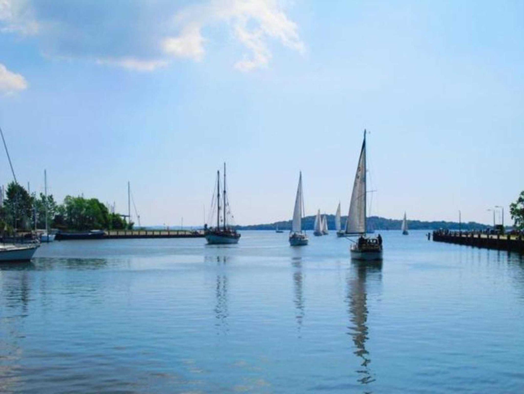 Gemütliches Apartment am Hafen von Lauterbach mit zwei Dachterrassen und modernen Annehmlichkeiten.