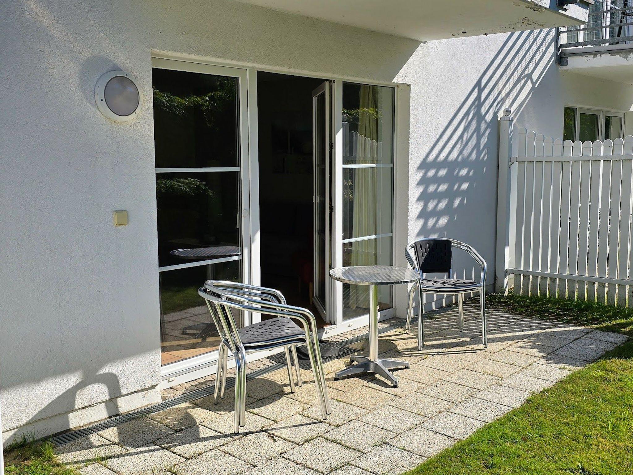 2 Raum Apartement mit Terrasse , 1,80m x 2 Doppelbett im Schlafzimmer und Schlafcouch im Wohnzimmer sowie einer gut ausgestatteten Küchenzeile mit Geschirrspüler und Backofen . Esstisch für 4 Personen. Kaffemaschine und Toaster sind vorhanden. Erstausstattung Bettwäsche und Handtücher vorhanden. Kinderbett und Hochstuhl für die Kleinsten bitte vorbestellen . Für Ihr Auto ist ein Garagenplatz vorgesehen. Max. Höhe 1,50m.