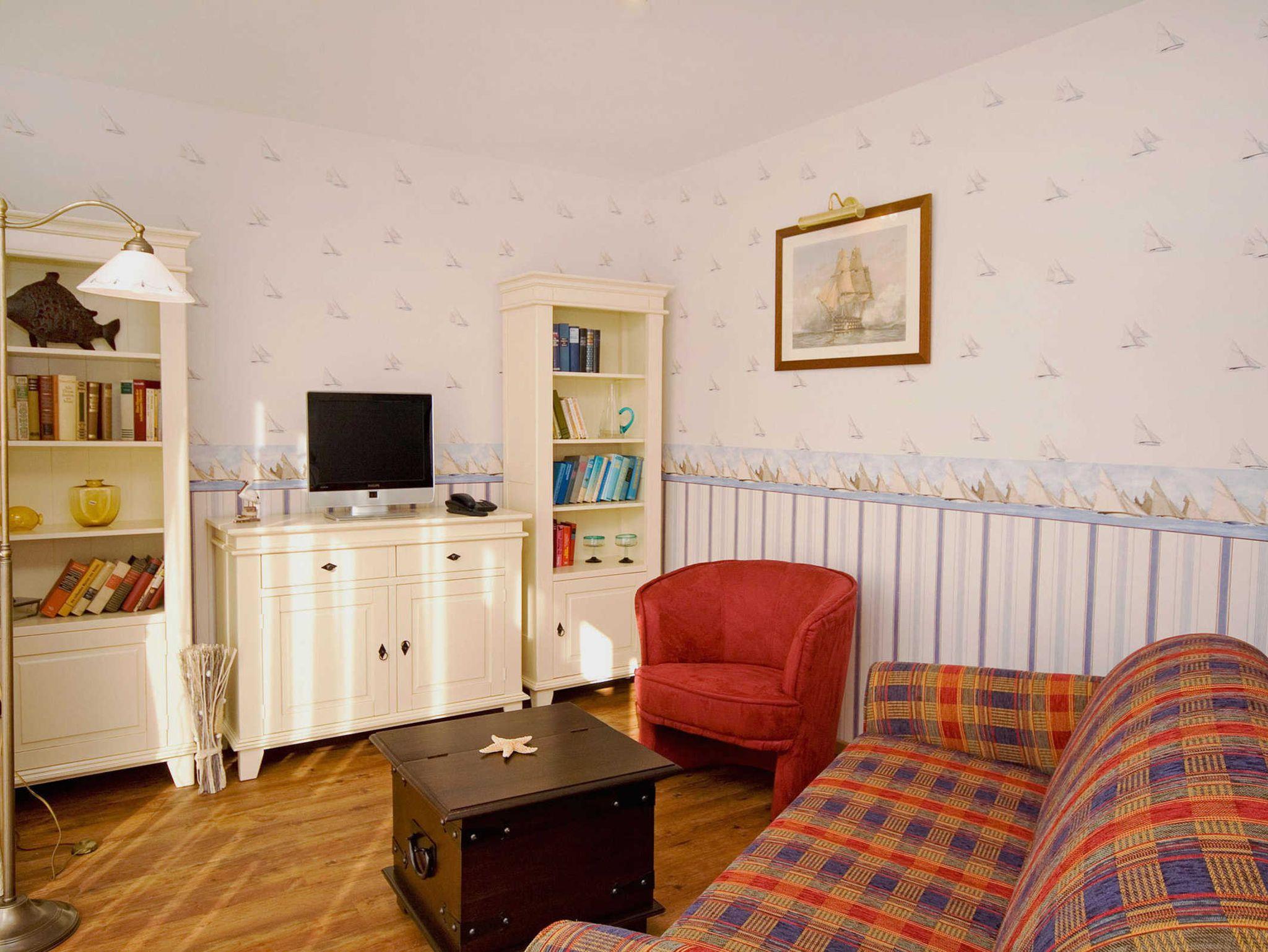 Erleben Sie maritimes Flair und Komfort in einer Kapitänssuite mit Terrasse nahe dem Bodden auf Rügen.