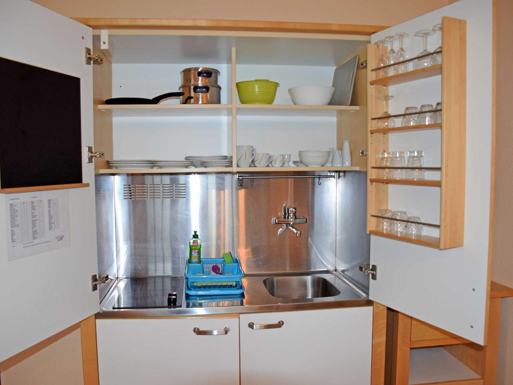 Sie haben hier die Möglichkeit den Sonnenaufgang jeden Morgen zu erleben. Im Wohn-/Schlafraum befinden sich eine Sitzgelegenheit mit Tisch und ein modernes Flachbild-TV-Gerät sowie ein bequemes Doppelbett mit Nachttischen und Leselampen. Hier steht auch Esstisch mit Sitzgelegenheiten. Die moderne Küchenzeile ist mit einem Herd, Mikrowelle, Wasserkocher, Kaffeemaschine, Toaster und Kühlschrank komplett ausgestattet. Ein kleines Kinderreisebett und ein Hochstuhl können auf Wunsch kostenlos bereit gestellt werden. Bei Ihrer Anreise sind die Betten bereits mit Bettwäsche aufbezogen, Handtücher können gegen eine Gebühr zugebucht werden. Das Bad ist mit Dusche, Handtuchwärmer, WC und Waschtisch ausgestattet und verfügt über Tageslicht. Zum dieser Ferienwohnung gehört eine Gemeinschaftsterrasse mit Gartenmöbeln und Grillmöglichkeit.