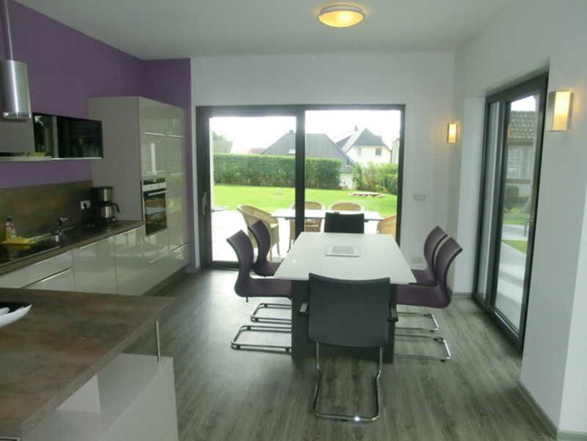 Im Eingangsbereich befindet sich die Garderobe sowie ein Gäste -WC.Zur linken Hand haben Sie den großen Wohn-Küchenbereich.Der Küchenbereich ist komplett ausgestattet. Der Esstisch mit sechs Stühlen lädt zu gemütlichen Frühstück ein oder Sie genießen es auf der teilweise überdachten Terrasse in gemütlichen Korbmöbeln. Ein Elektrogrill gehört zur Ausstattung.