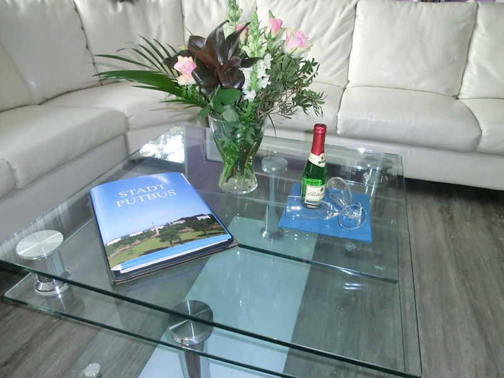 Der Wohnbereich mit einem großen Ecksofa und einem 127 Zoll Flachbildschirm mit DVD, Schreibsekretär und Bücherwand ist nur ein Highlight dieser Wohnung. Sie nutzen WLAN in der Wohnung kostenfrei.