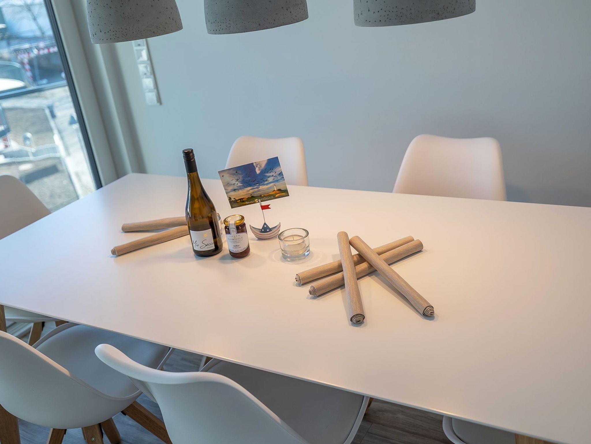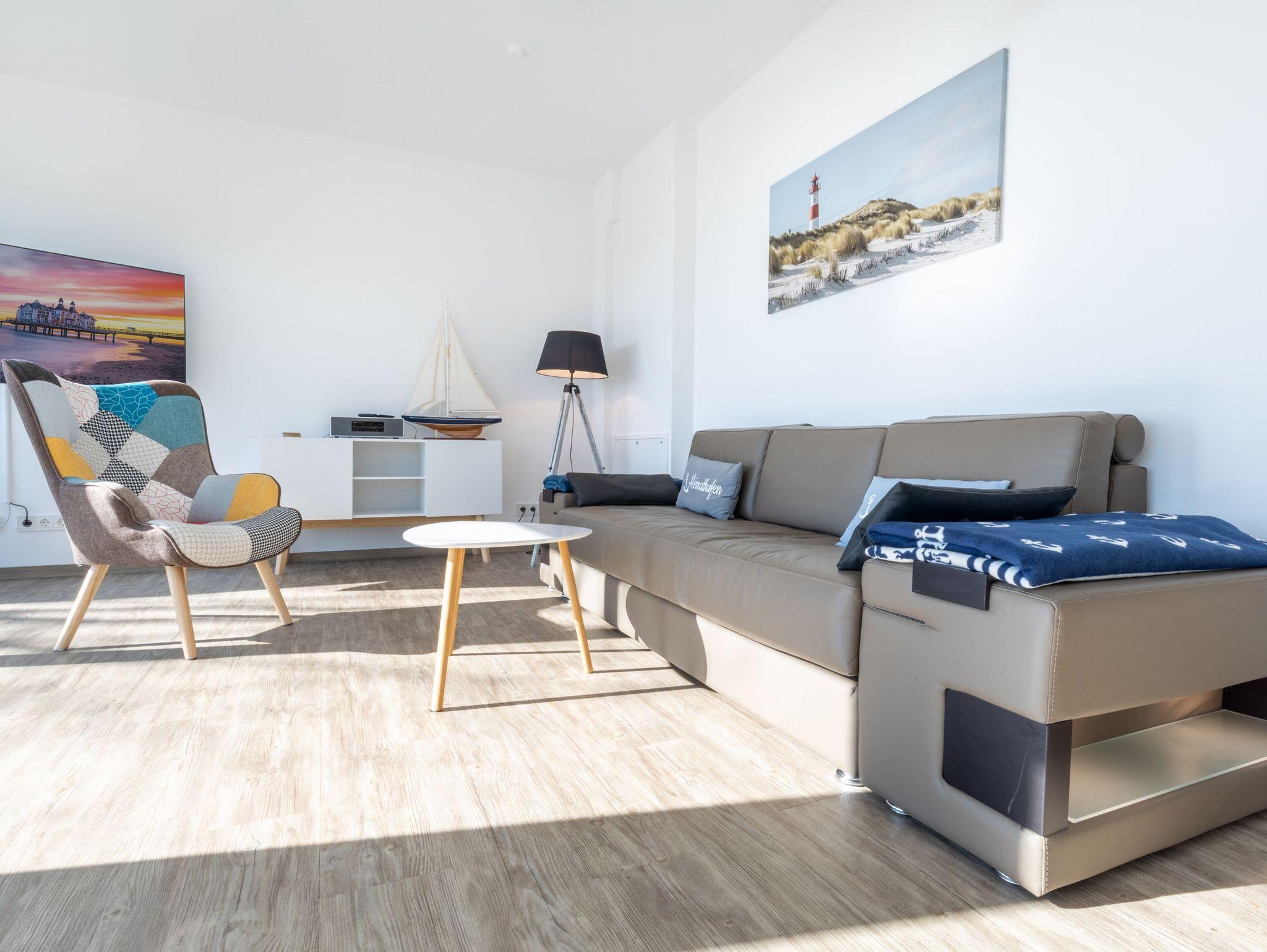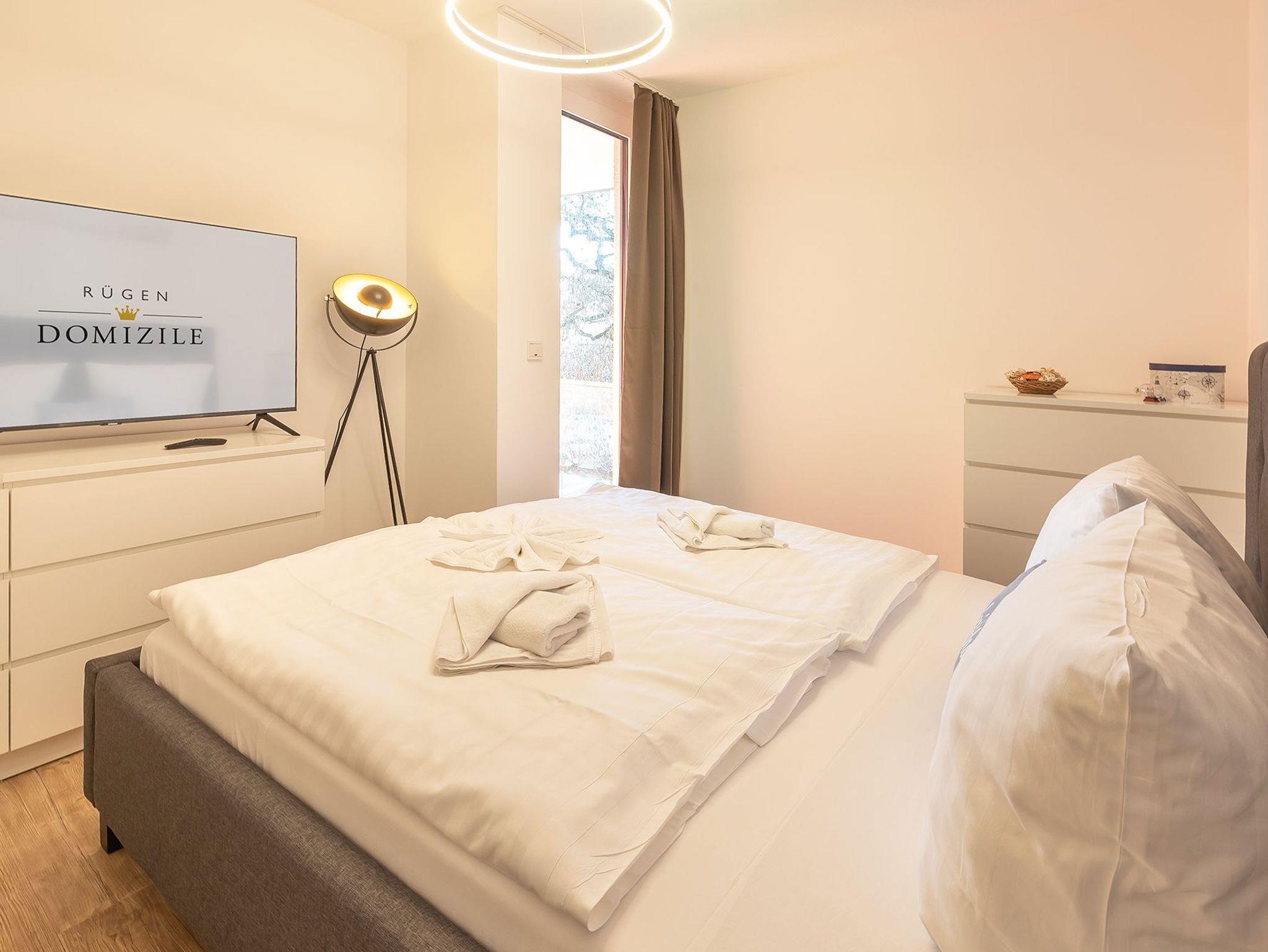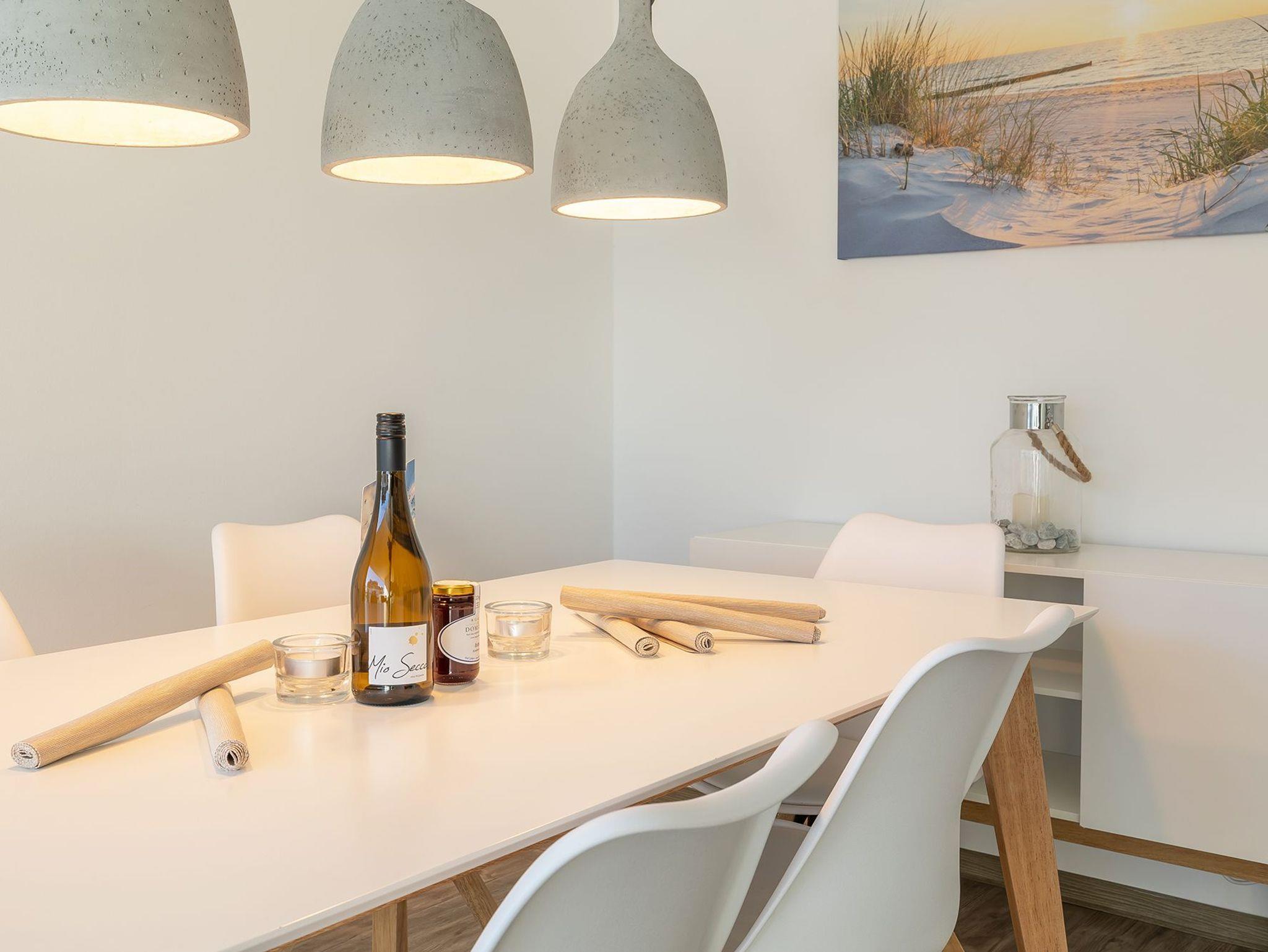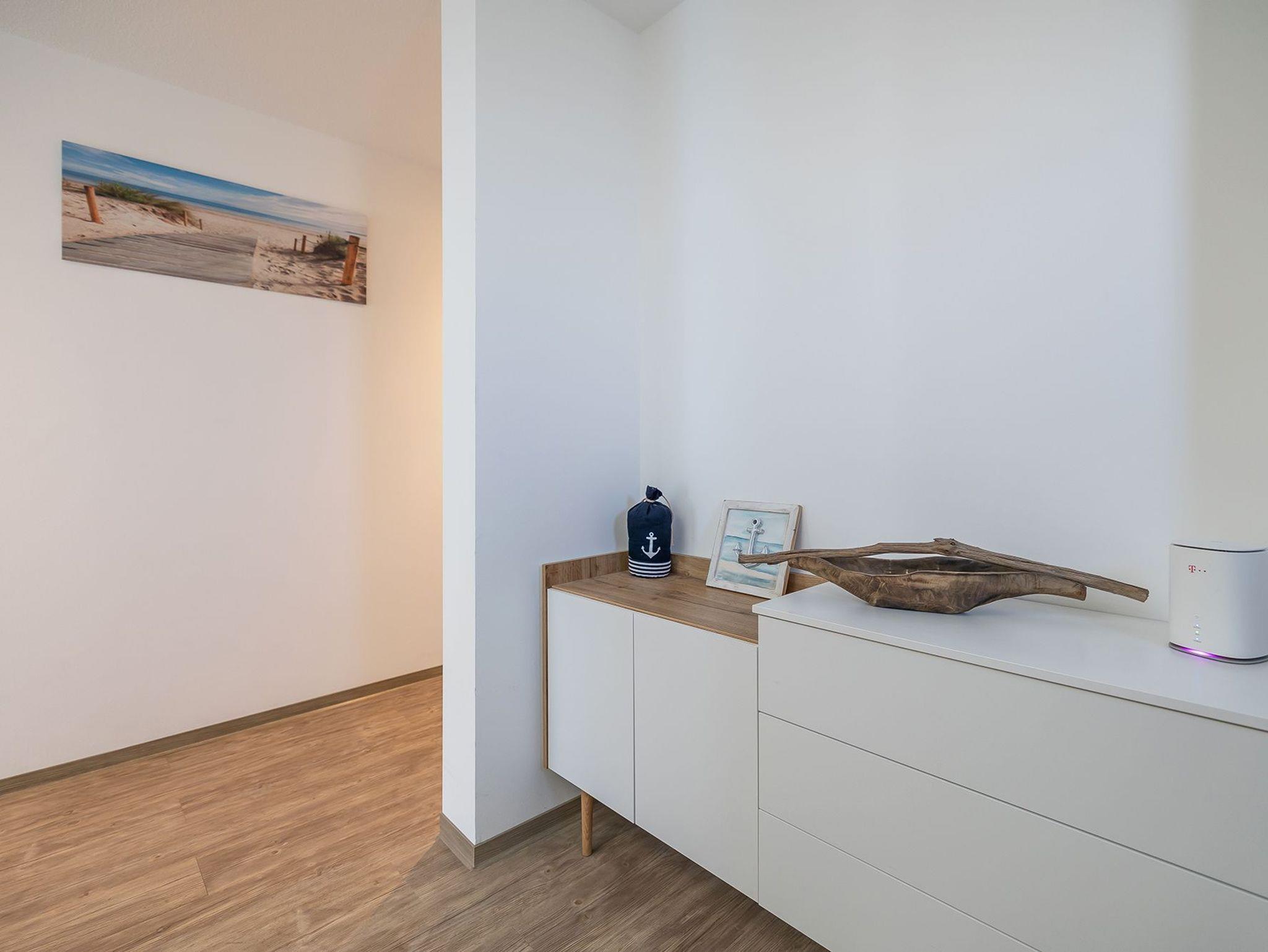 Bequem per Lift erreichen Sie den Eingang Ihres 123qm großen Domizil in der 3.Etage. In der Ferienwohnung angekommen, fühlen Sie sich direkt Willkommen. Helle, lichtdurchflutete Räume, moderne Bauart und gradliniges Design, wirken edel und angenehm zugleich. Das 2021 fertiggestellte Objekt befindet sich in direkter Lage zum kleinen Hafen von Lauterbach, einem Ortsteil der Rosenstadt Putbus. Der obere Bereich der Wohnung lädt mit seinem fantastischen Wasserblick zum gemütlichen verweilen ein. Die angrenzende Dachterrasse bietet einen großen Strandkorb, von dem aus sich herrliche Sonnenuntergänge genießen lassen. Die Lage dieser tollen Unterkunft lädt Aktivurlauber zu langen Spaziergängen oder ausgedehnten Radtouren ein. Zusätzlich dazu bietet eine angrenzende Wassersportschule die Möglichkeit, Boote zu leihen oder den Urlaub für einen Segelkurs zu nutzen. In der näheren Umgebung und direkt am Hafen bieten verschiedene Restaurants diverse Köstlichkeiten an. Auch fangfrischer Fisch ist am Hafen zu bekommen und lässt sich in der voll ausgestatteten Küche Ihrer Ferienwohnung selbst zubereiten. Zusammengefasst lassen die tolle Lage und die moderne Ausstattung die Unterkunft zu einem wundervollen Domizil für Ihren Urlaub werden.