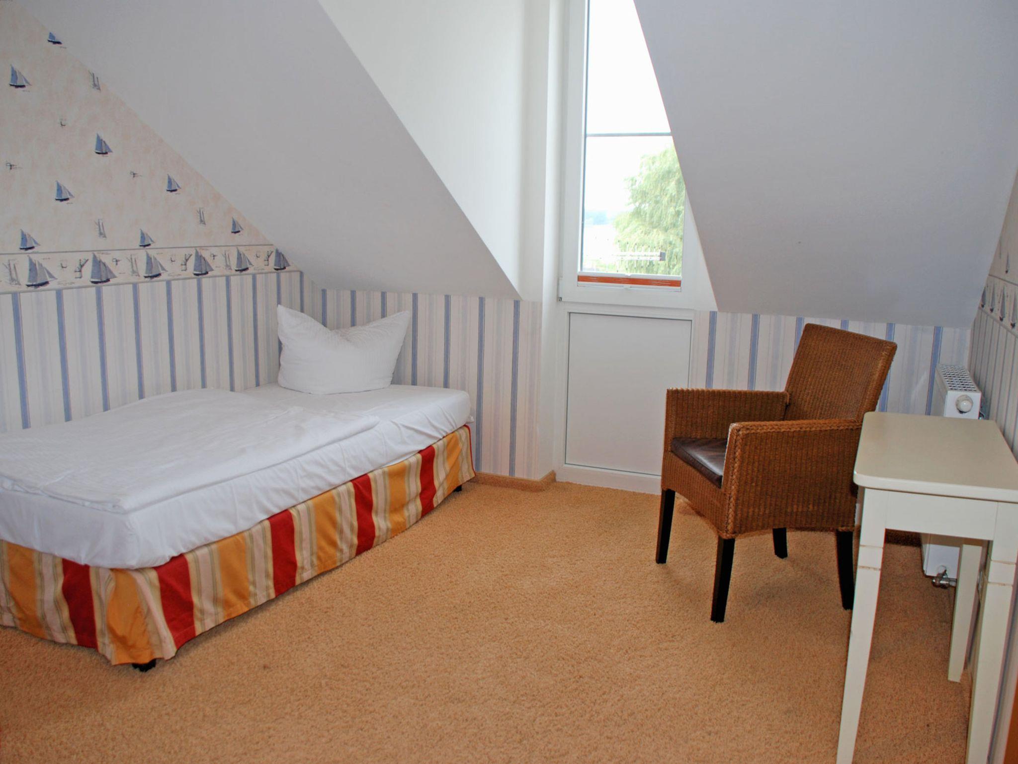 Genießen Sie entspannte Tage in der maritimen Kapitänssuite mit Terrasse und Seeblick auf Rügen.