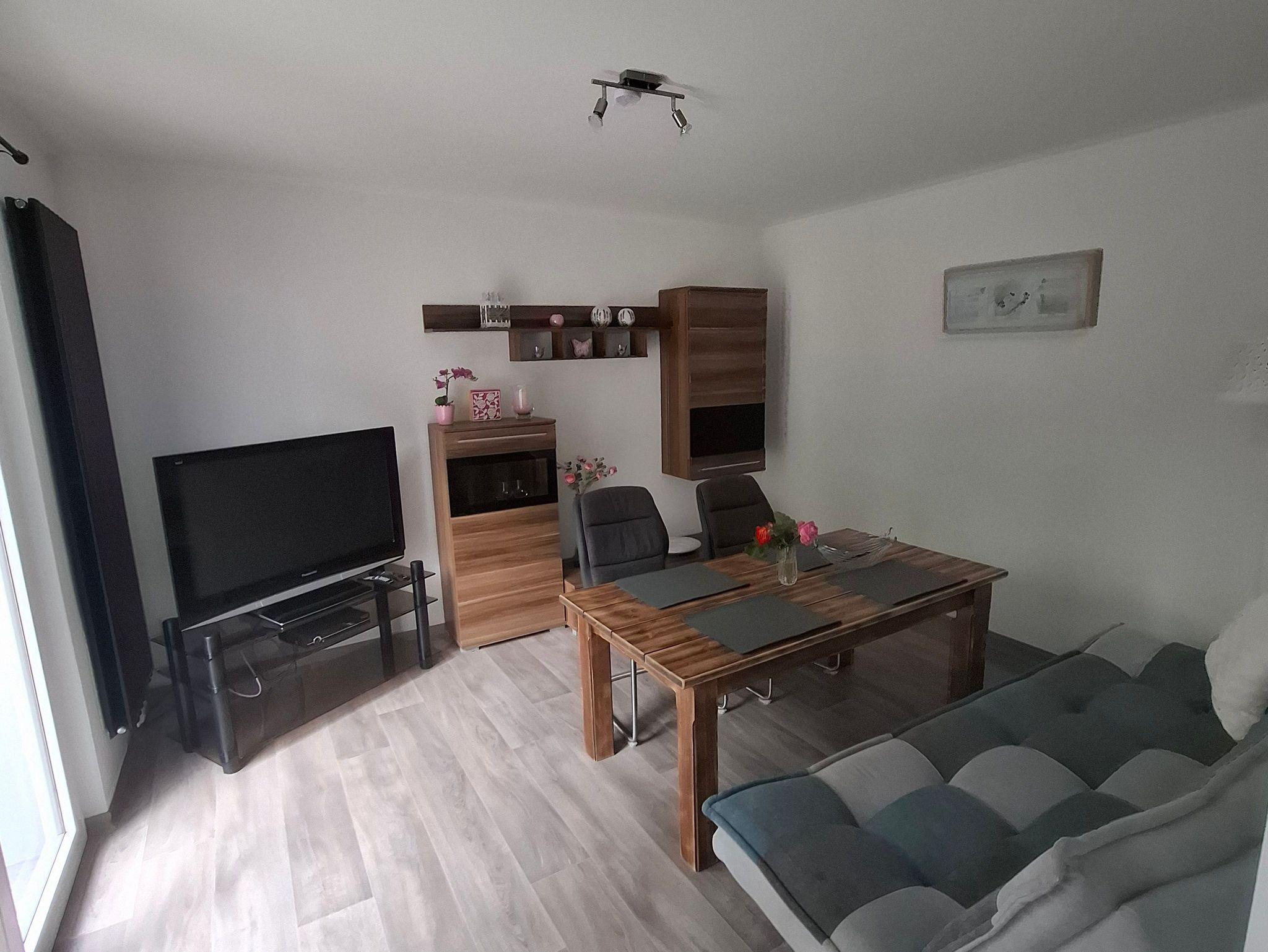 * Wohnzimmer mit gemütlicher Sitzecke, TV, Schrankwand