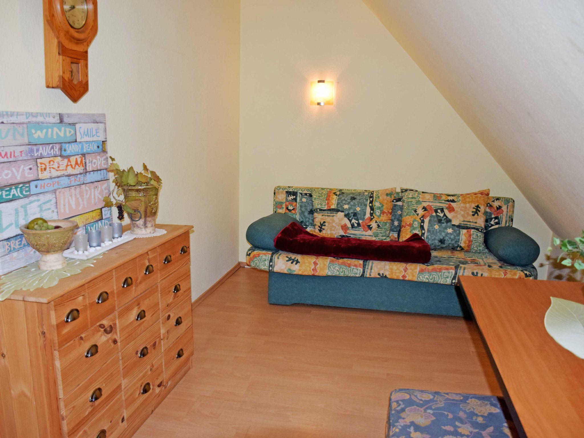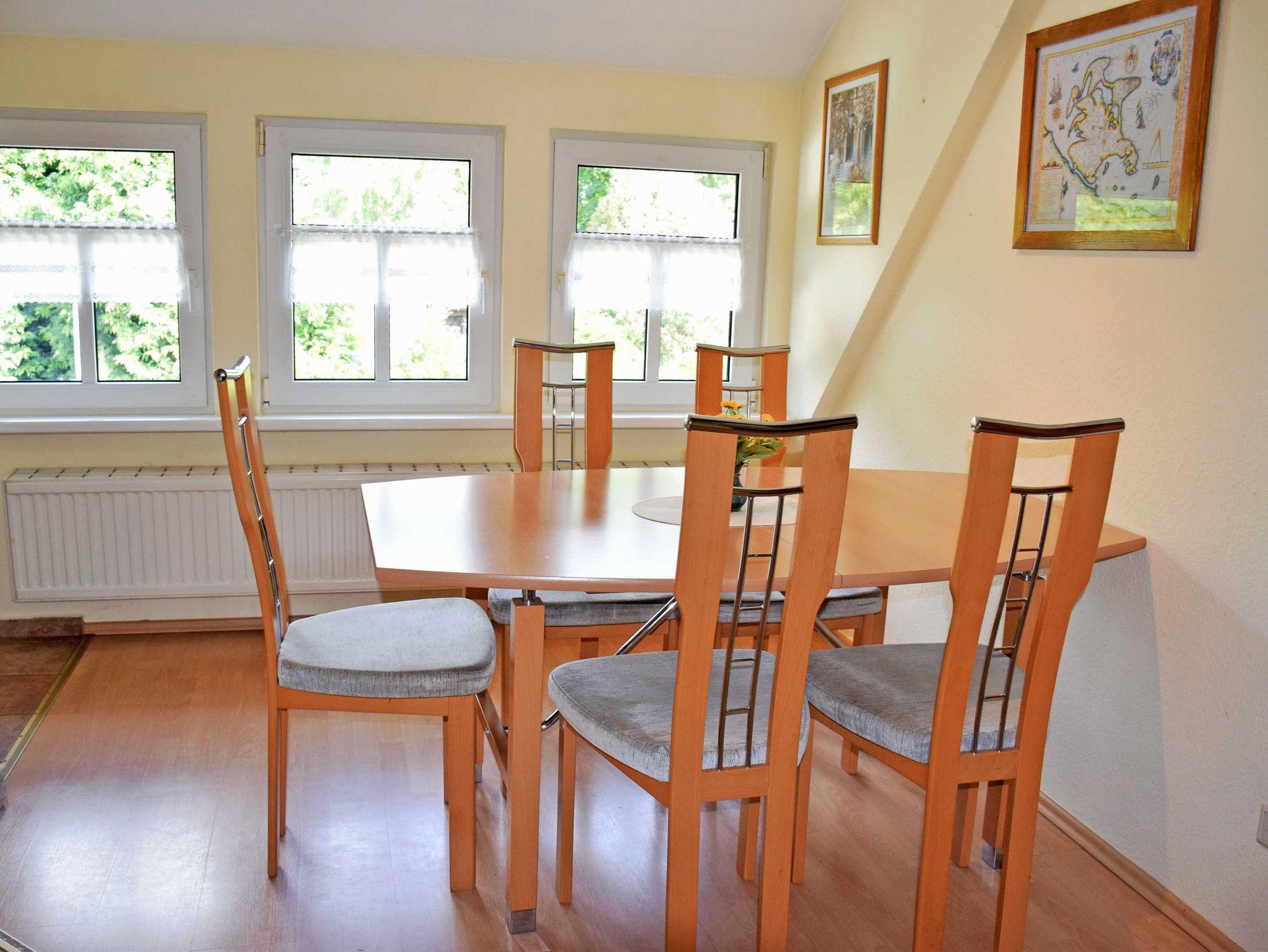 Wir vermieten hier in ruhiger Lage zwei modern und komfortabel eingerichtete Ferienwohnungen (78 qm, max. 4 Gäste und ein Kind im Kinderreisebett, 2 Schlafzimmer, Wohnzimmer, Küchenzeile, Terrasse, WLAN) in einem Doppelhaus. Bitte beachten Sie, dass es sich hierbei um ein reines Urlaubsdomizil handelt, daher nicht als Unterkunft für Monteure sowie Handwerker möglich.