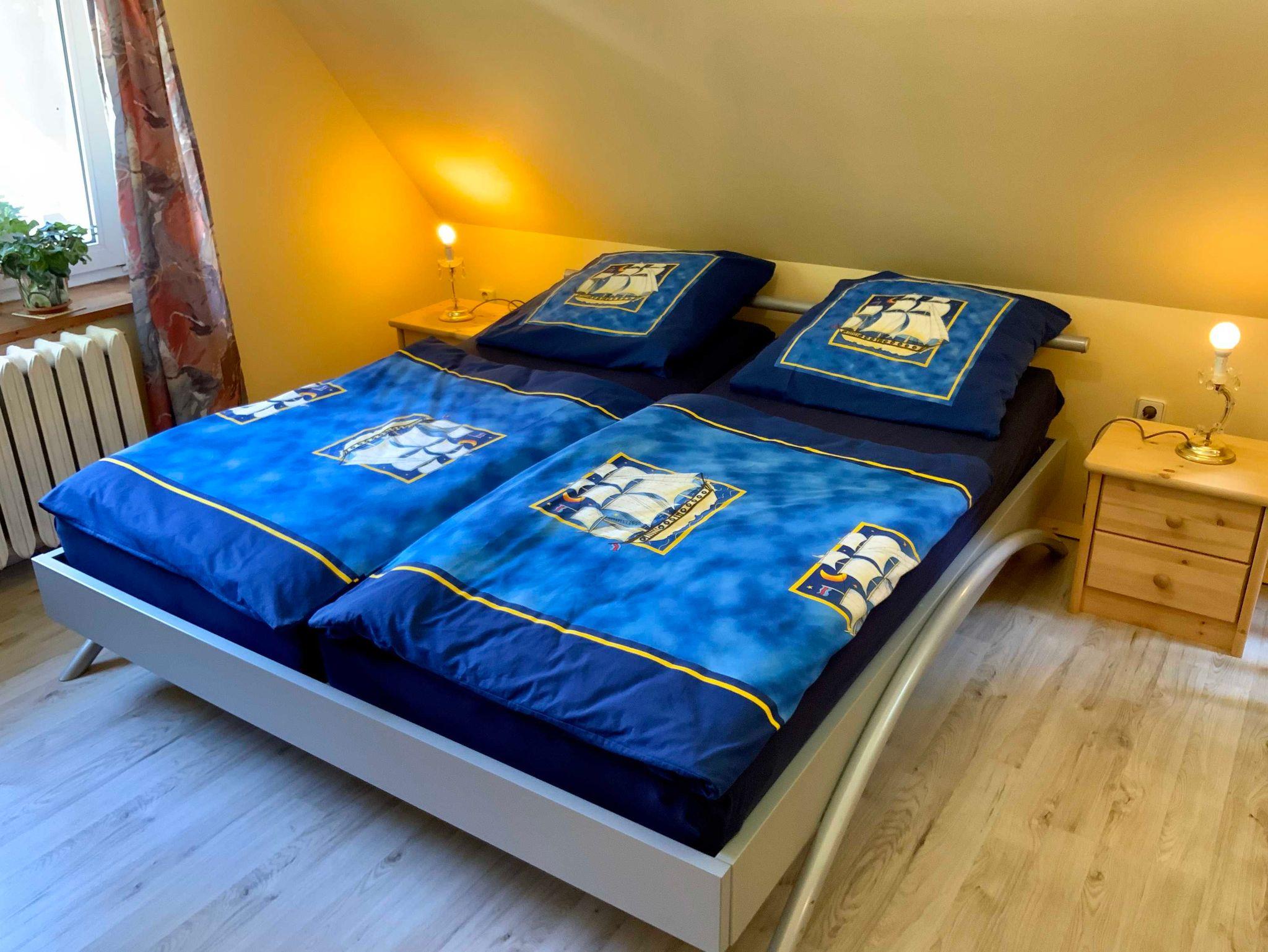 Dort stehen Ihnen 2 Einzelbetten sowie ein weiteres Doppelbett und ein Kleiderschrank zur Verfügung.