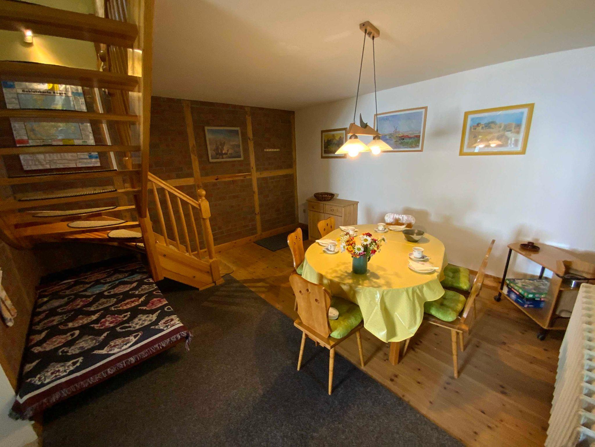 Im Erdgeschoss befinden sich die Küche und der Essbereich mit Tisch und 6 Stühlen, sowie das Bad mit Dusche und Toilette.
