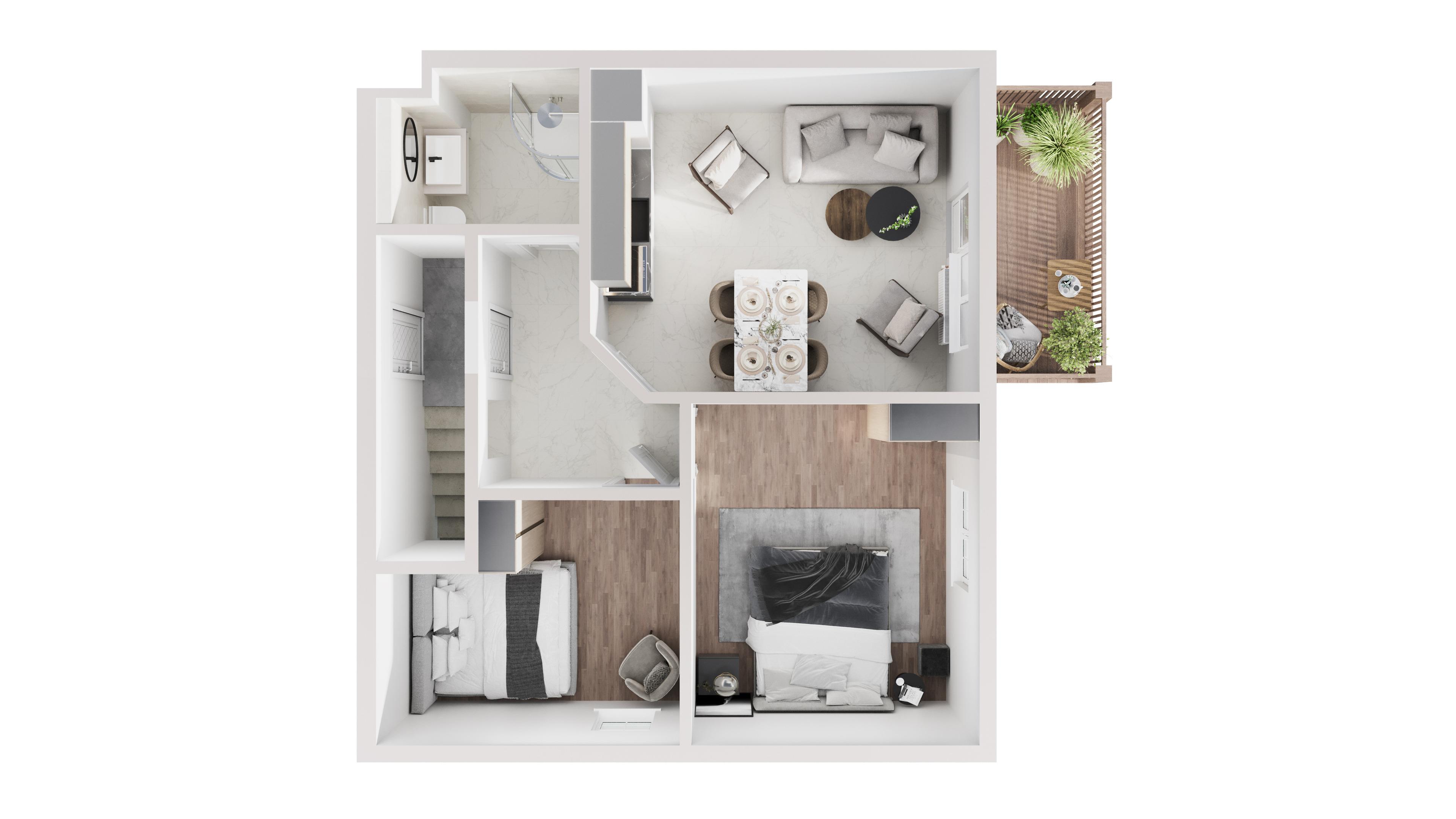 Die neu modernisierte und möblierte Ferienwohnung befindet sich im Erdgeschoss. Sie besteht aus einen Wohnzimmer mit Küche und Esstisch, mit ausklappbarer Schlafcouch, einem Schlafzimmer und einem Duschbad.